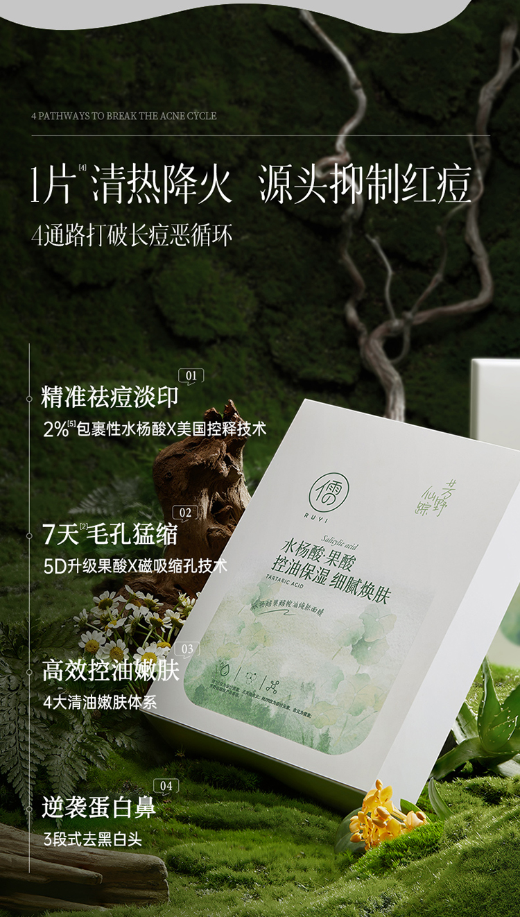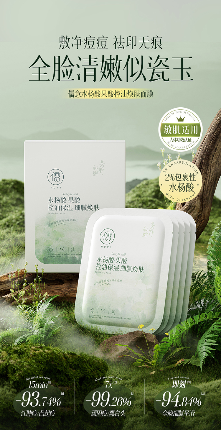 【星品体验💖39元任选3件】儒意水杨酸果酸控油焕肤面膜3片 水杨酸面膜控油祛痘淡化痘印舒缓泛红补水保湿收缩毛孔|儒意官方商城