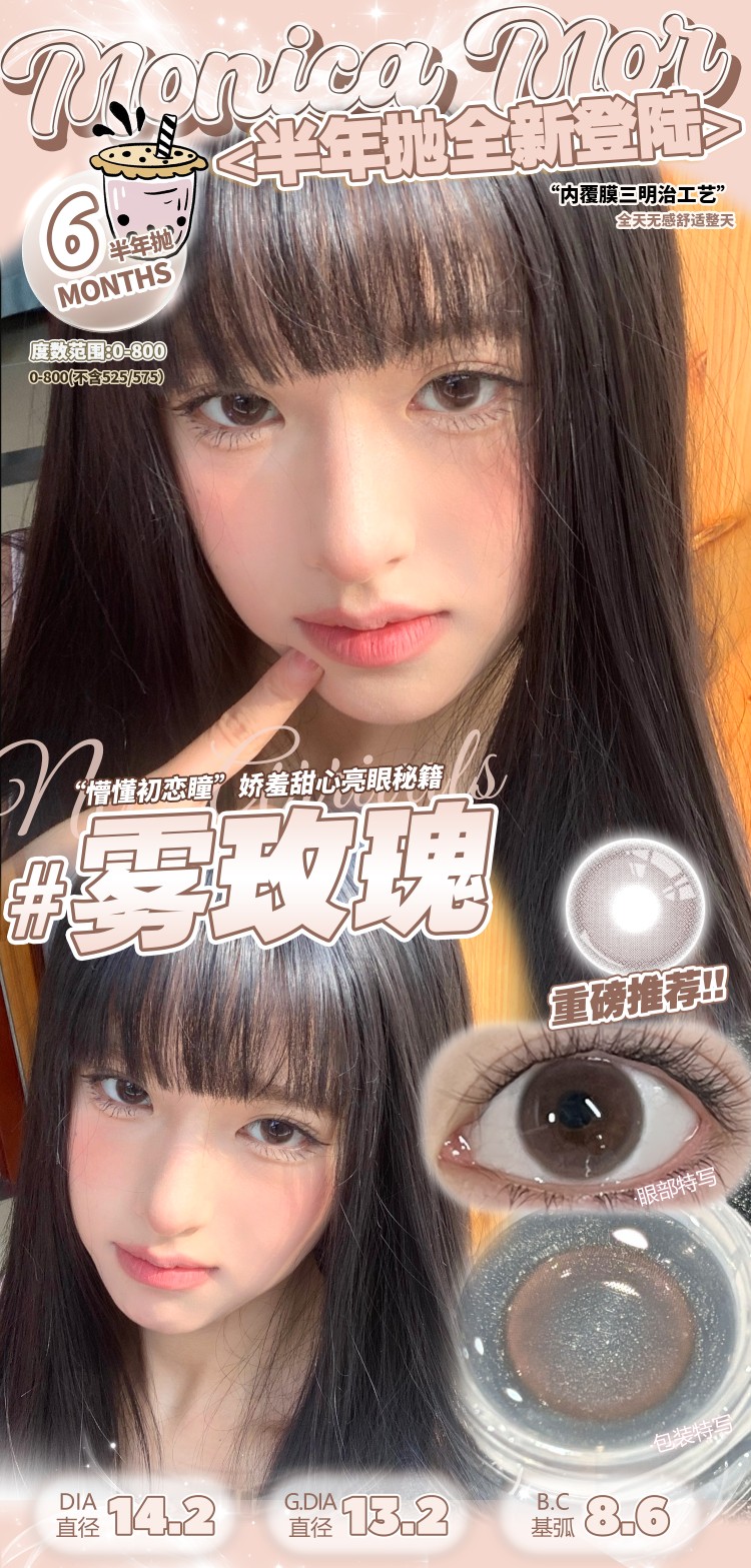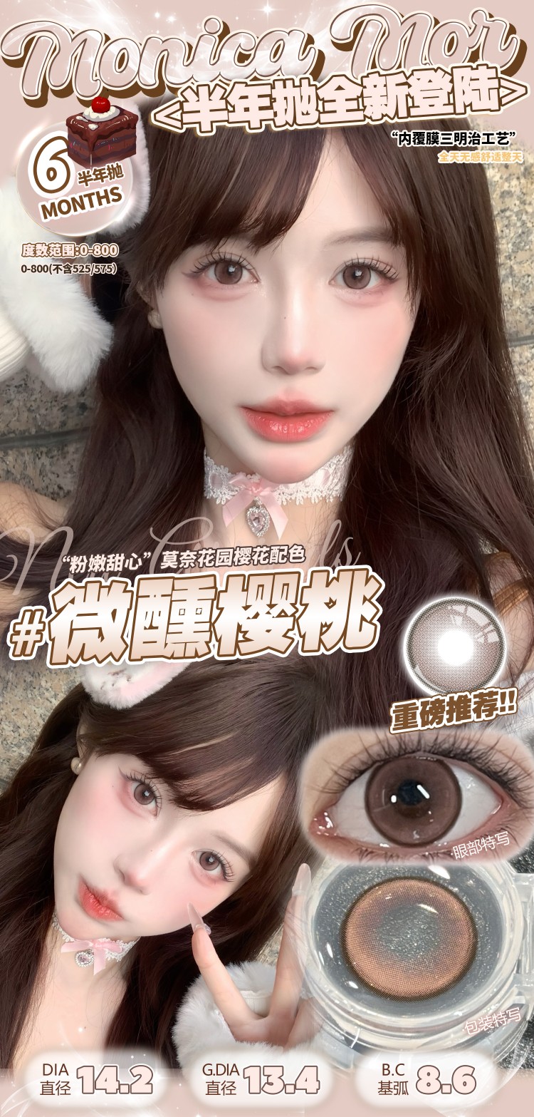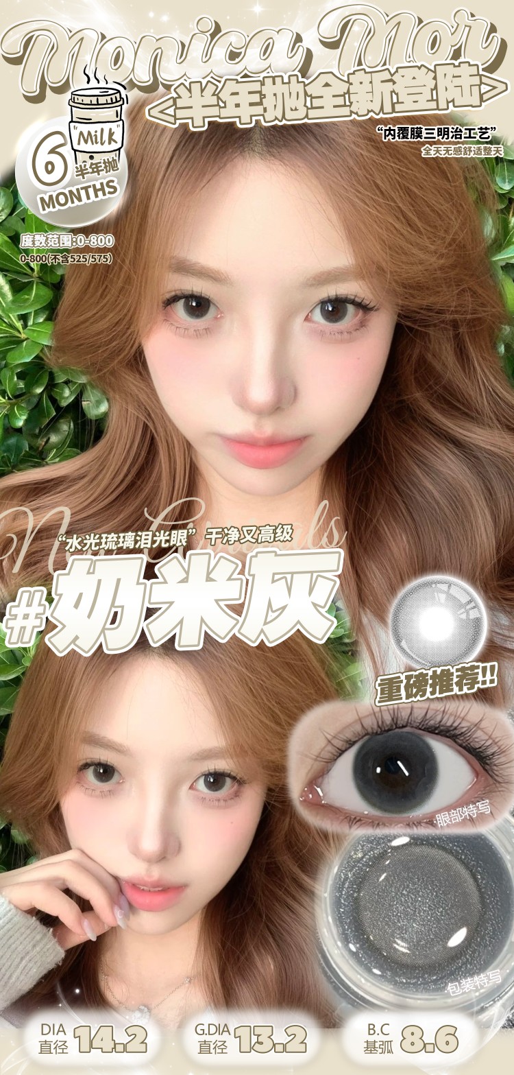 Monica mor半年抛 雾玫瑰/奶米灰/微醺樱桃/甜橙乌龙/小黑茶/小甜茶 14.2mm 非离子
