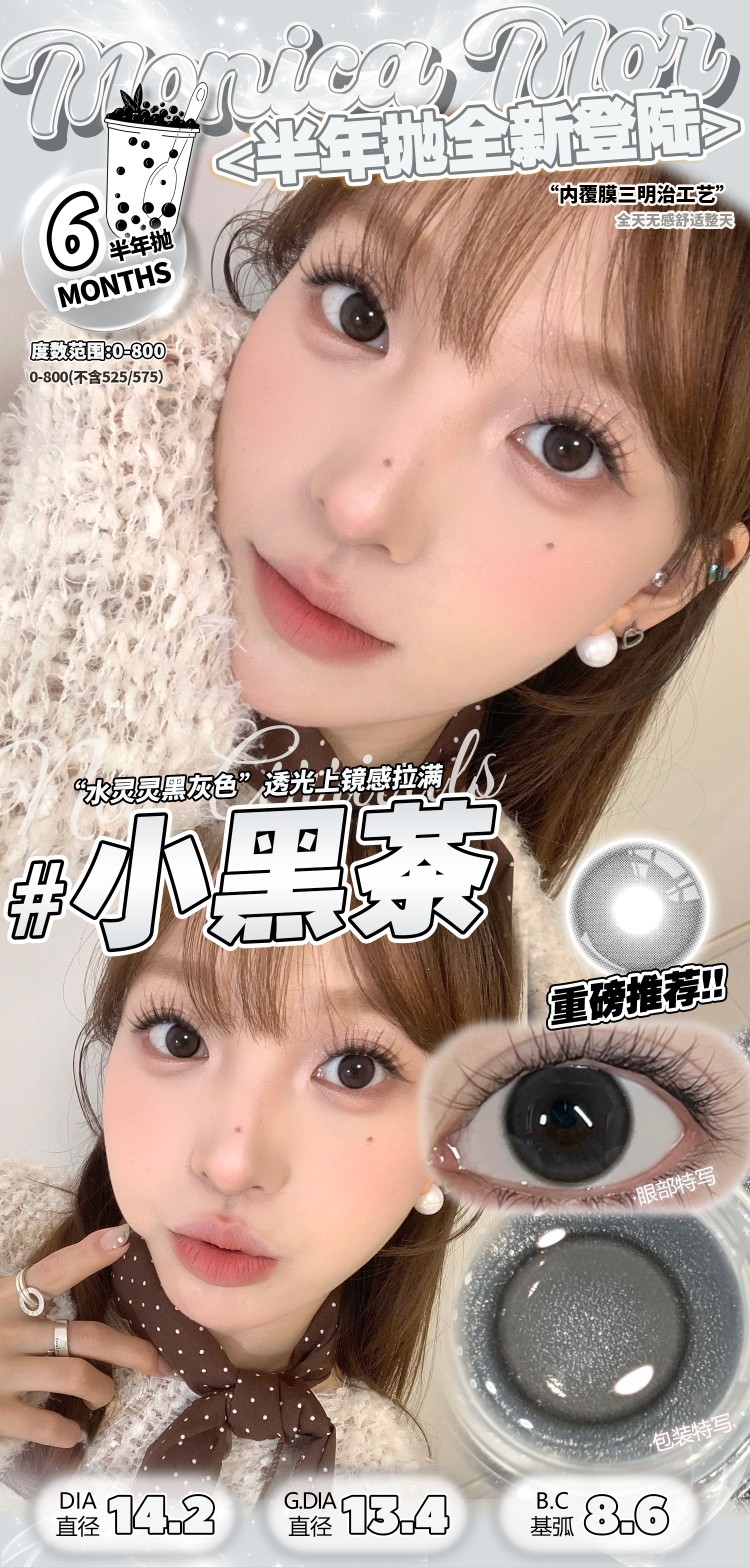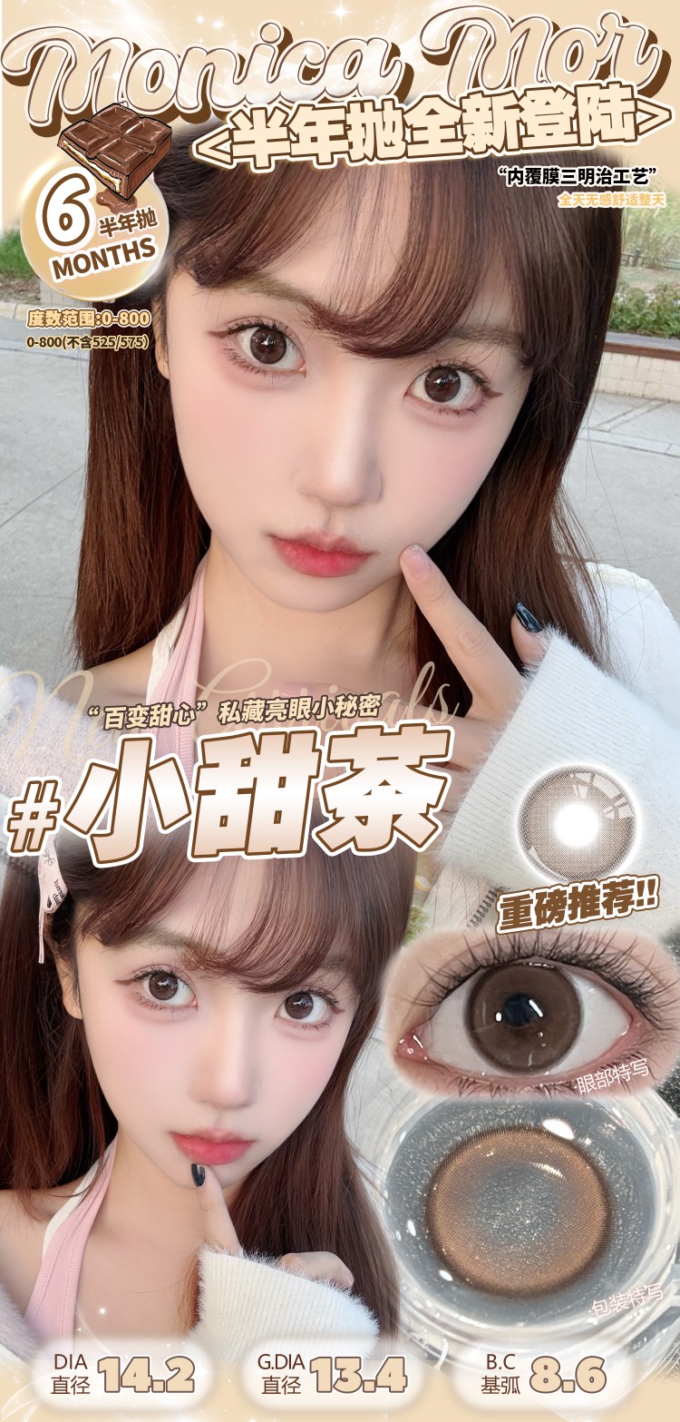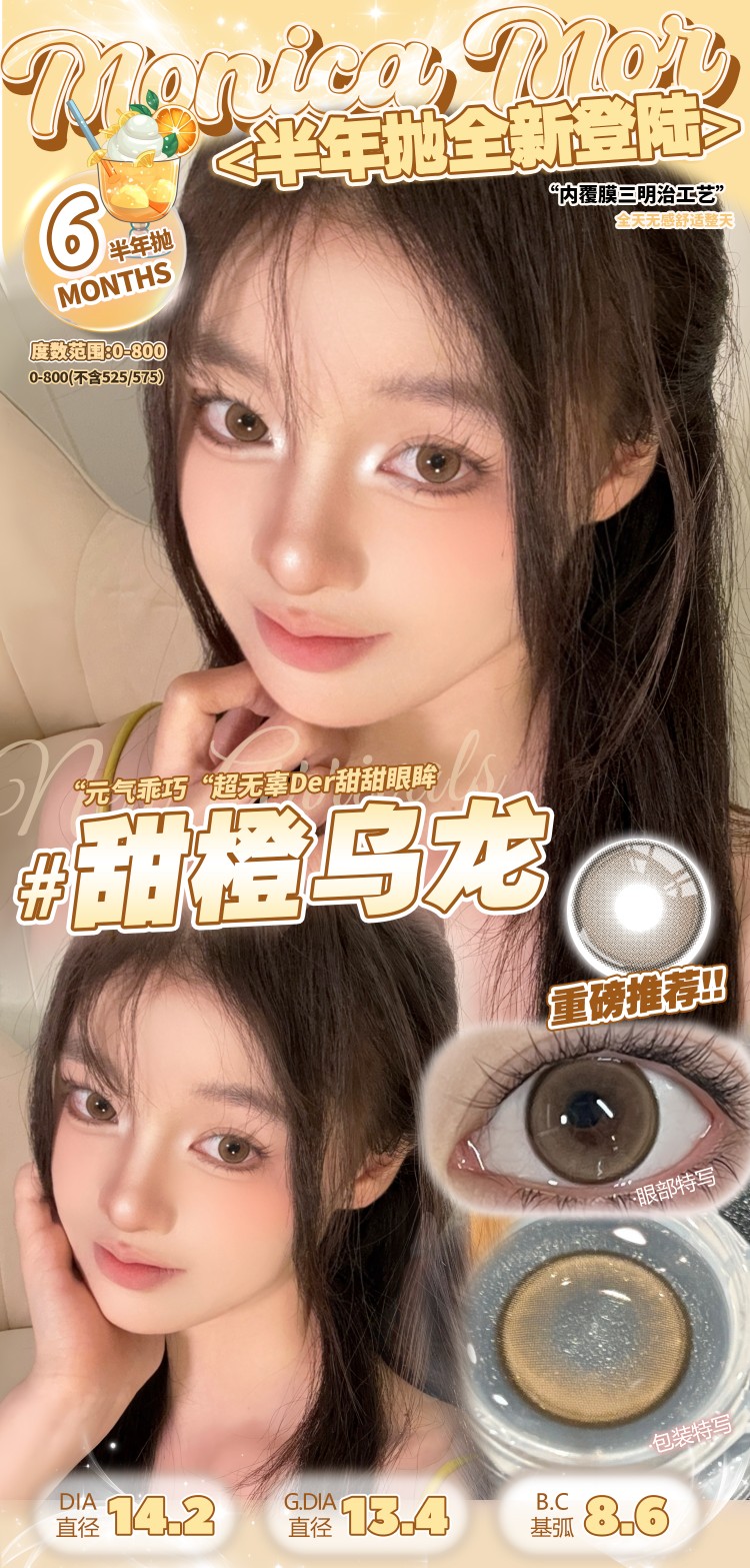 Monica mor半年抛 雾玫瑰/奶米灰/微醺樱桃/甜橙乌龙/小黑茶/小甜茶 14.2mm 非离子