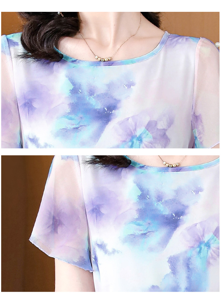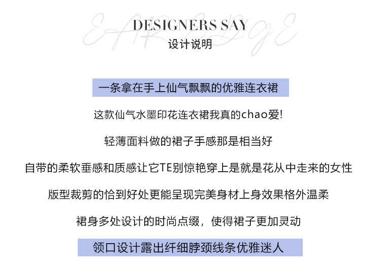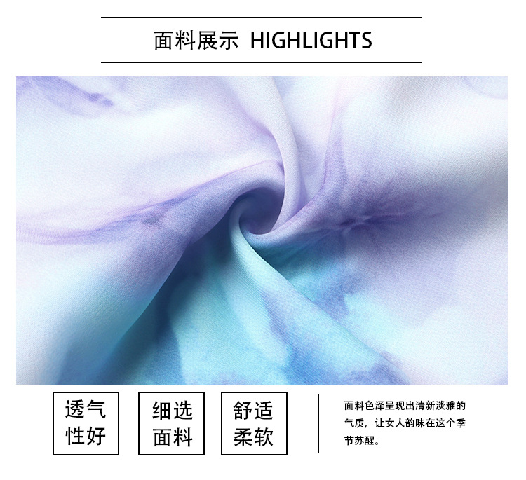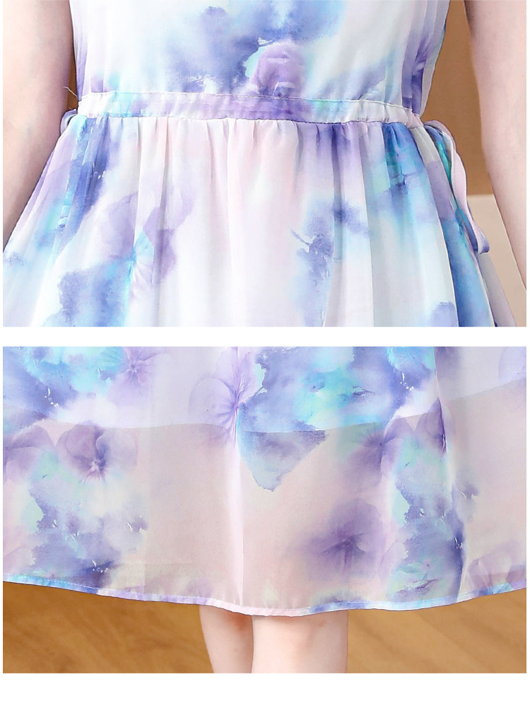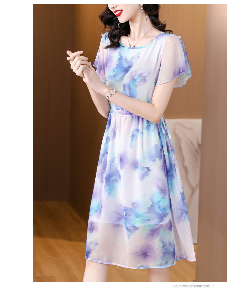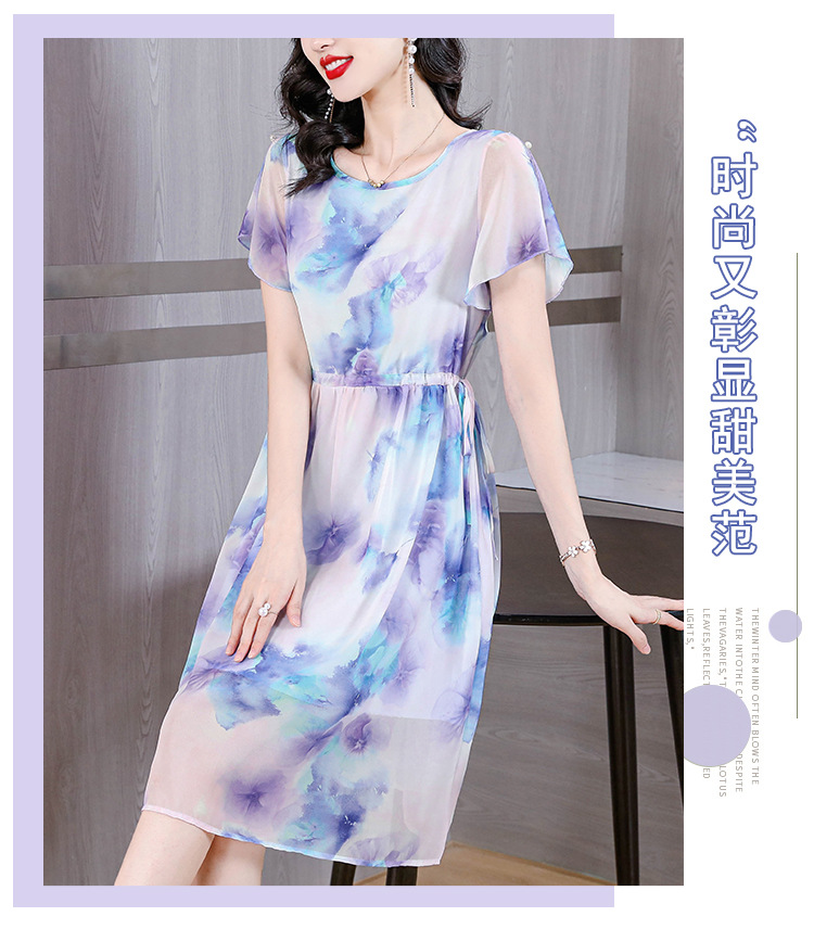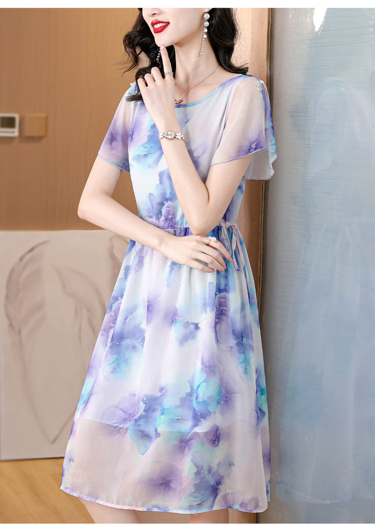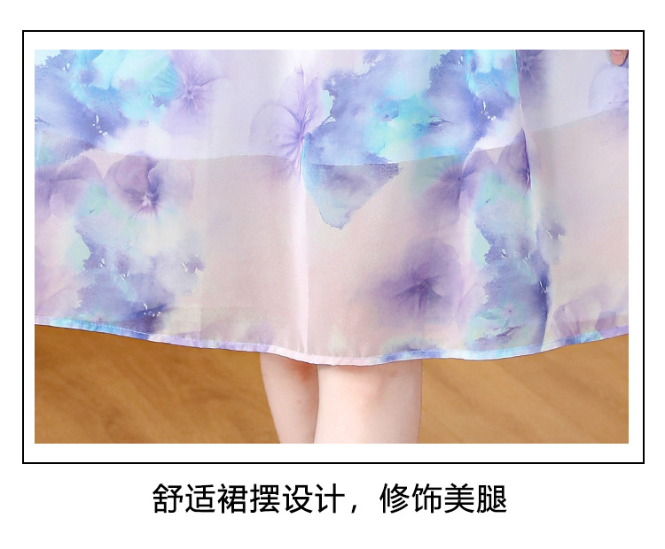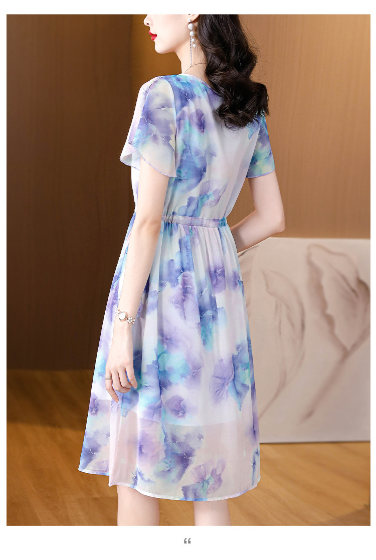 时尚优雅,夏季新款短袖气质收腰水墨印花法式雪纺连衣裙AHM-ybb5059