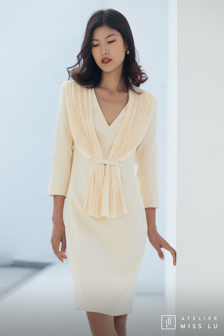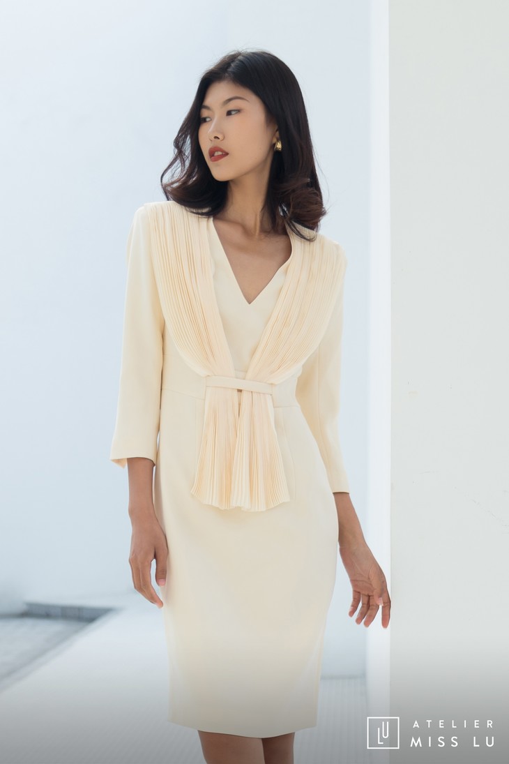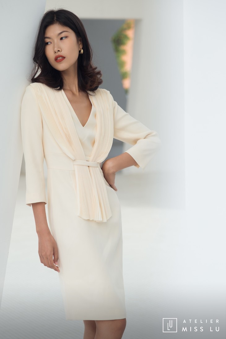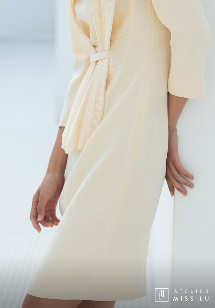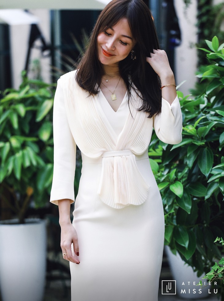 AtelierMissLu / Cicely-白色两侧风琴褶装饰连身裙