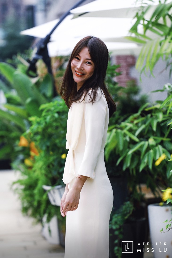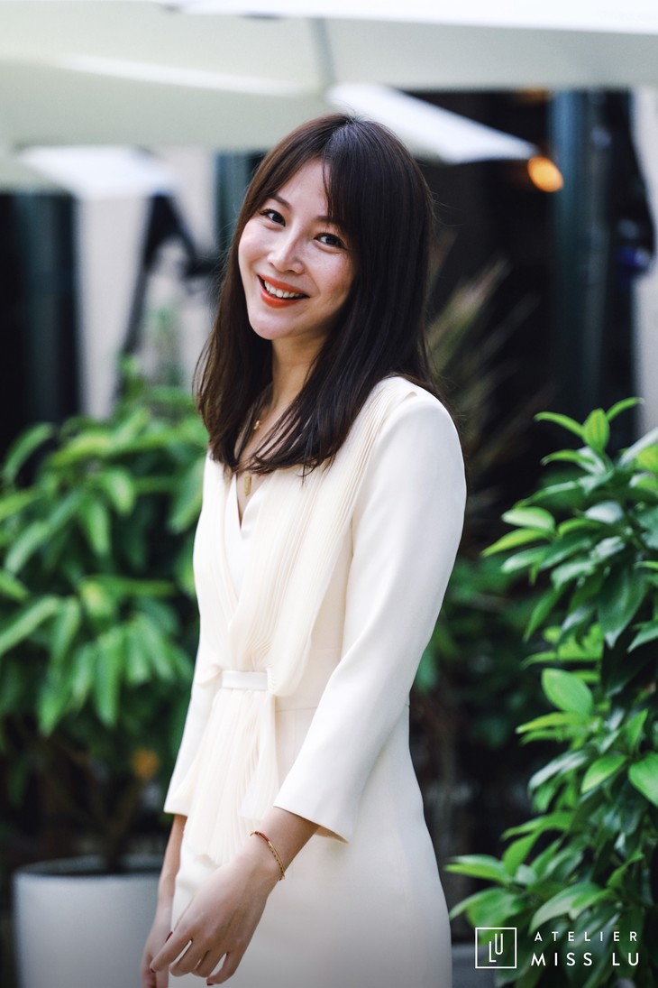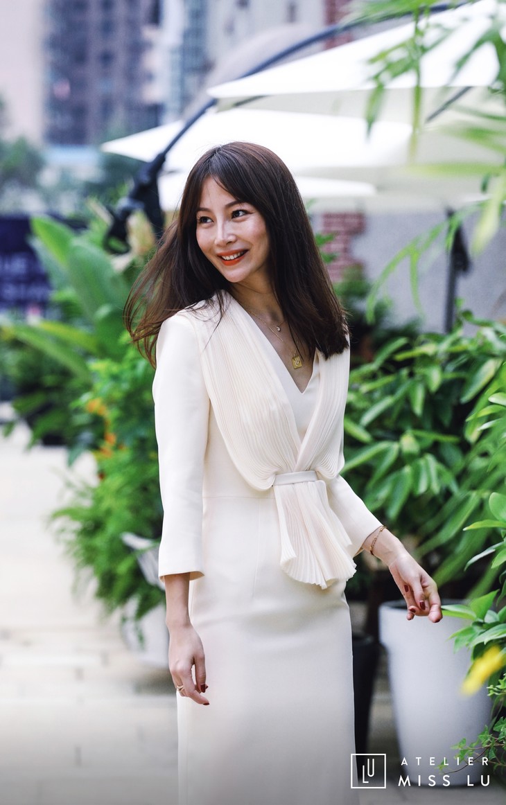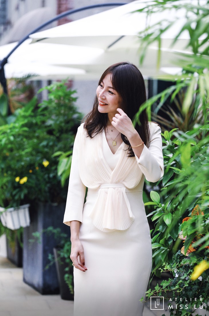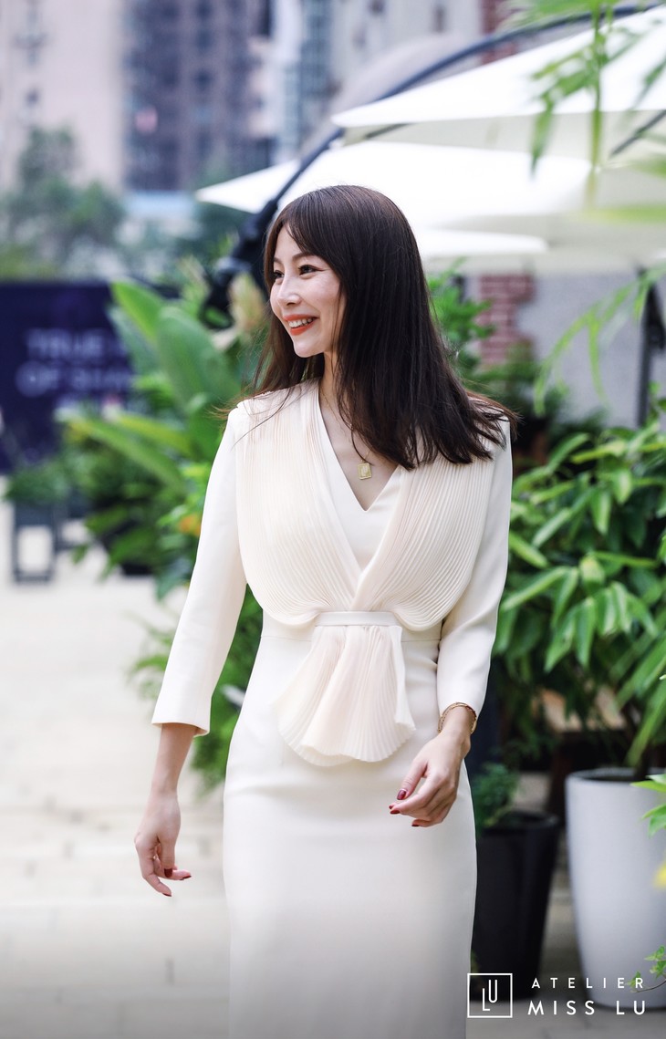 AtelierMissLu / Cicely-白色两侧风琴褶装饰连身裙