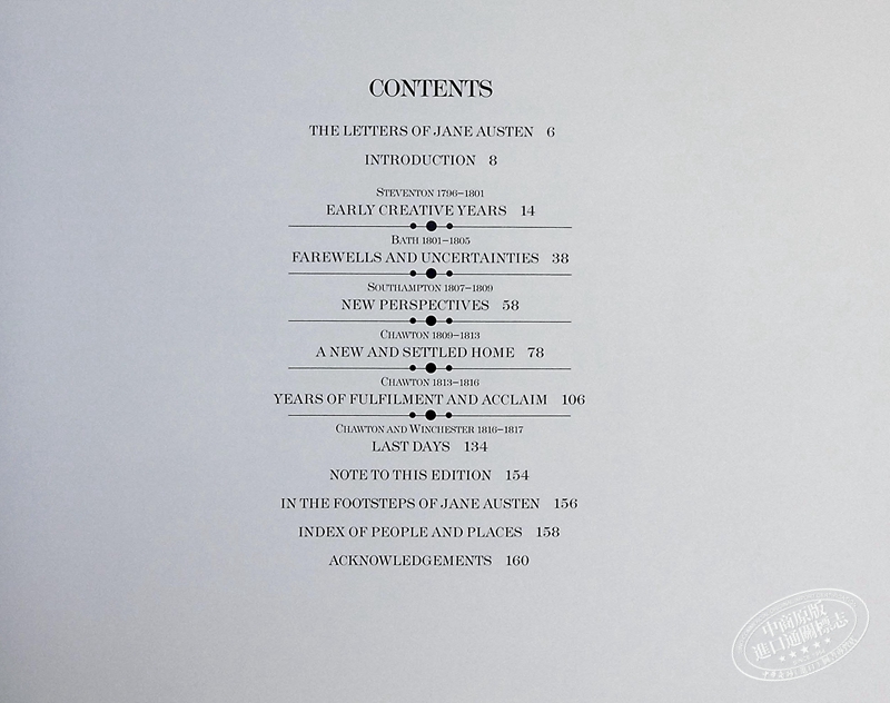 这些信件连同佩内洛普·休斯-哈利特的评论,分为简·奥斯汀人生的六个时期,从 1796 年(她二十岁)到 1817 年(她去世的那一年)。它们赞美了简·奥斯汀准确表达自己所见所闻的才能,使这本书成为她小说的启迪伴侣。尽管本书大致按时间顺序排列,但这些信件是围绕视觉主题排列的,包括汉普郡的乡村、巴斯和伦敦的社交生活、家庭活动、拜访和乘马车旅行。