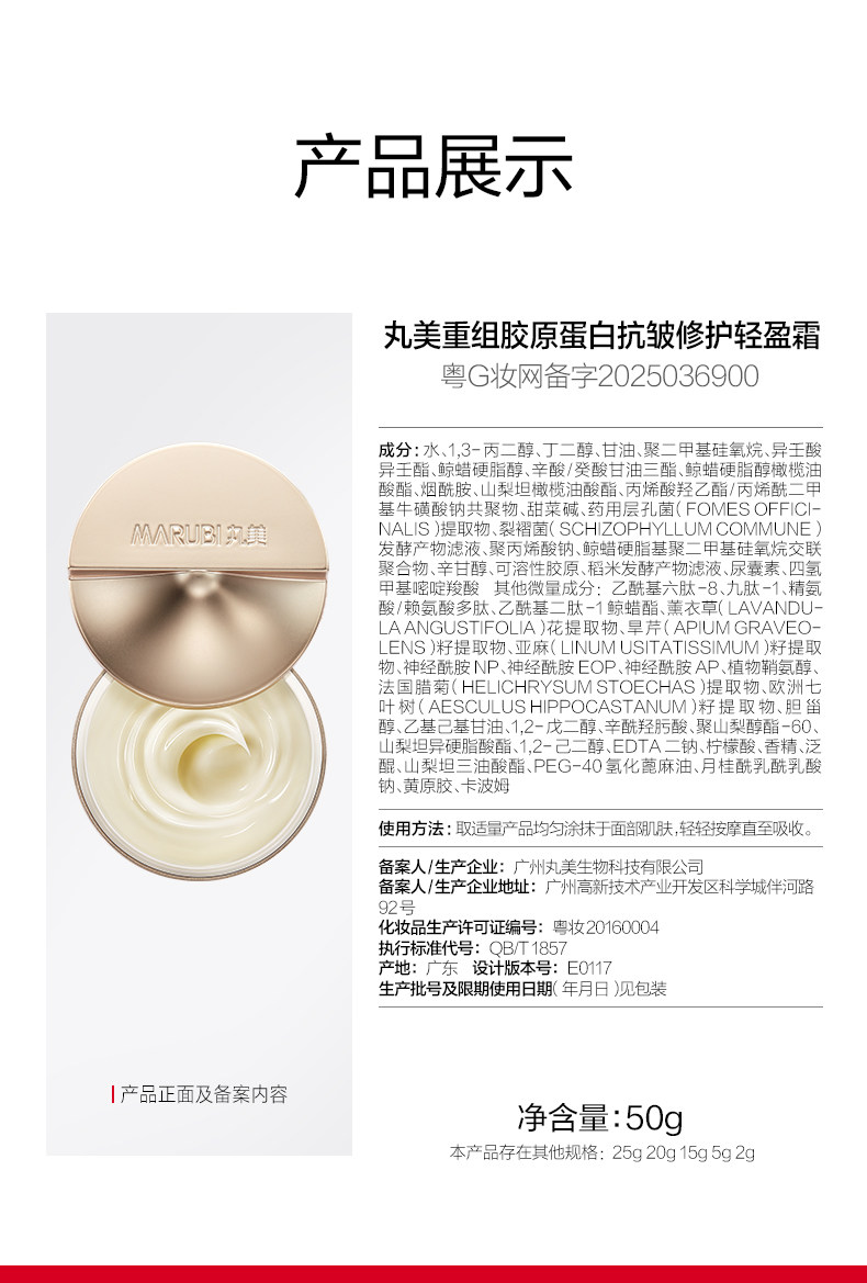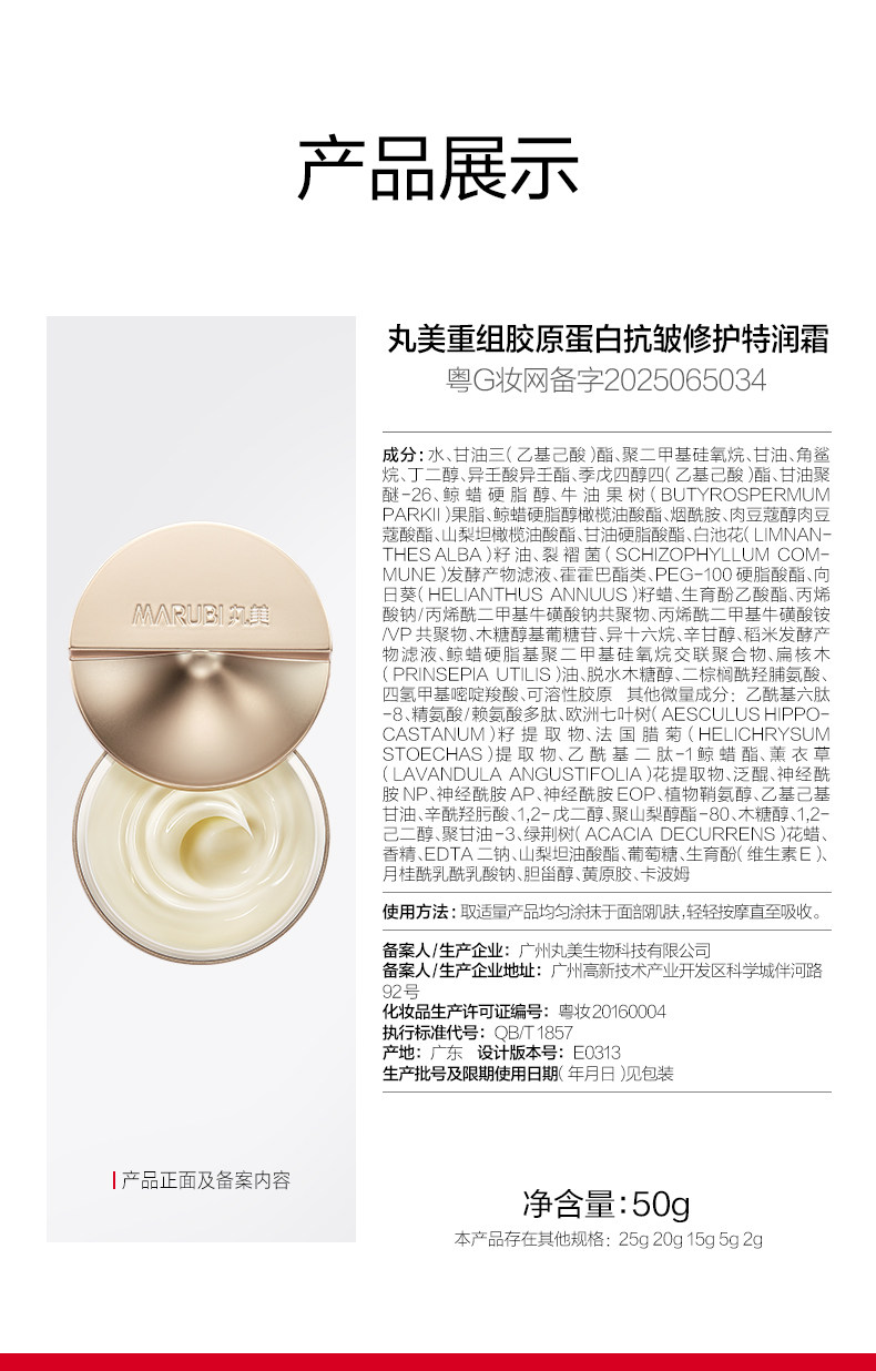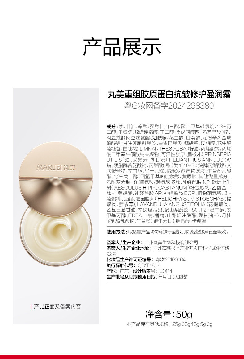 丸美胶原小金针面霜 胶原蛋白保湿霜紧致KAN皱修护DAN纹