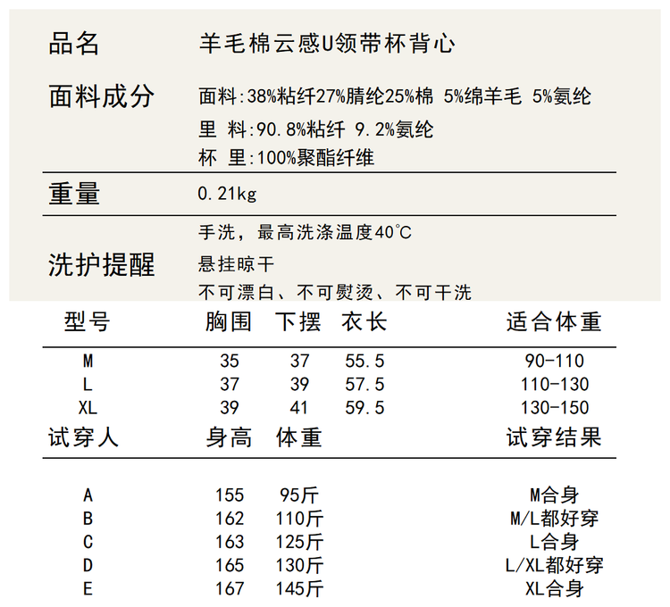 ³ 【日本代工厂男姐同款带胸垫的背心】含羊毛棉云感U领背心 可内搭也可外穿XN03-CRMM-BSPK