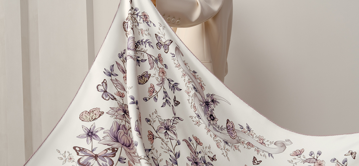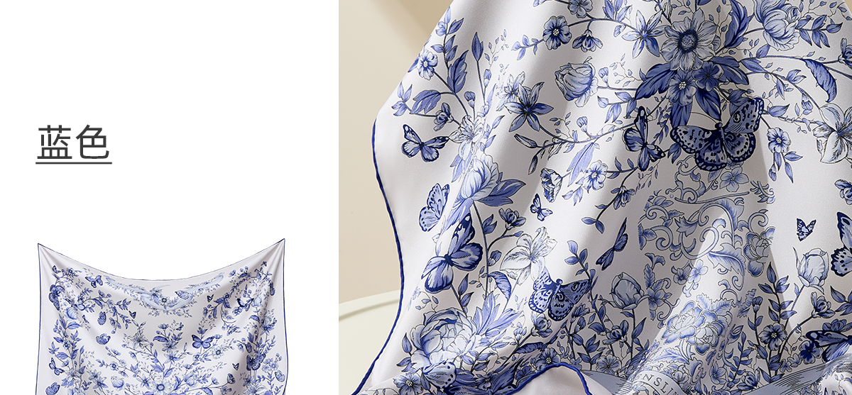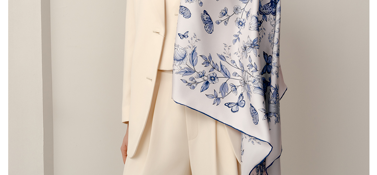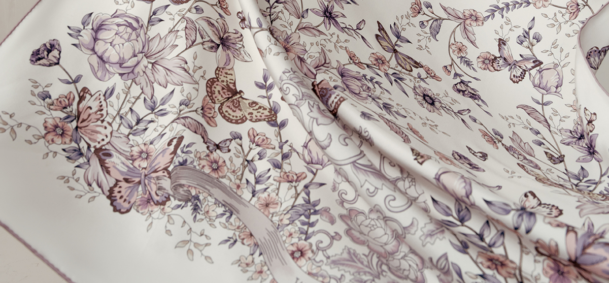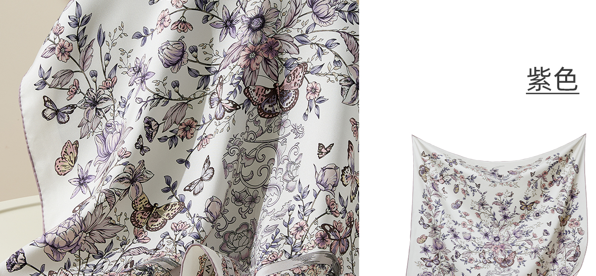 凤凰之家“画蝶入梦”88厘米双面印花大方巾