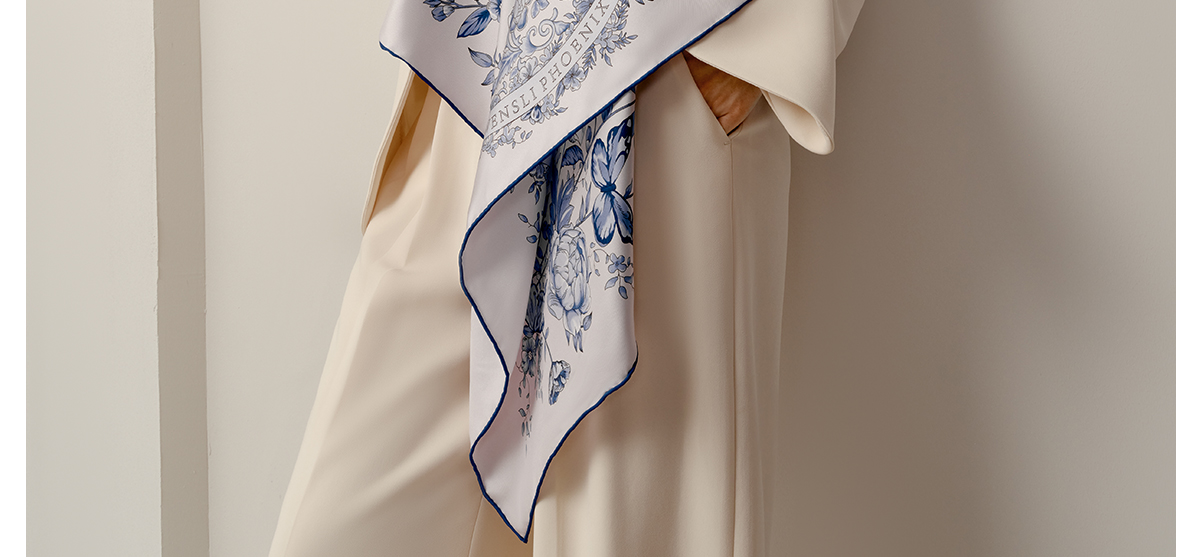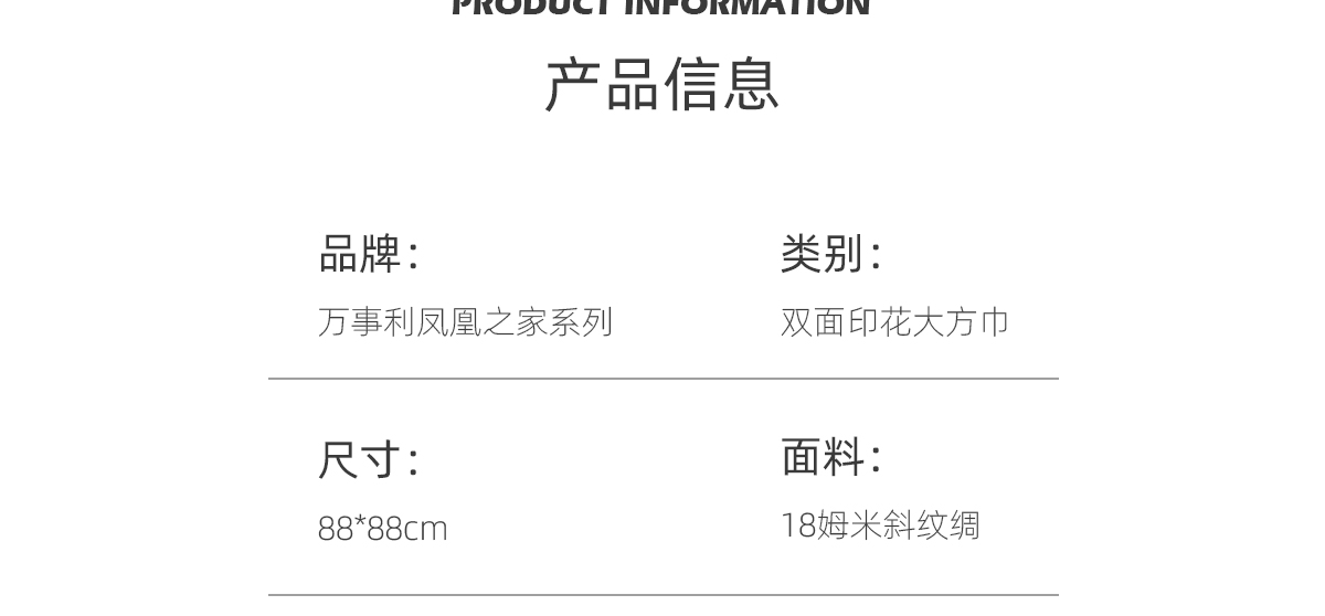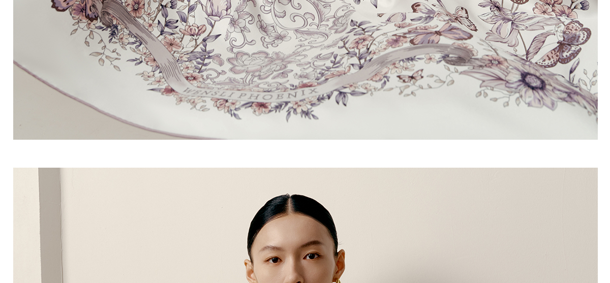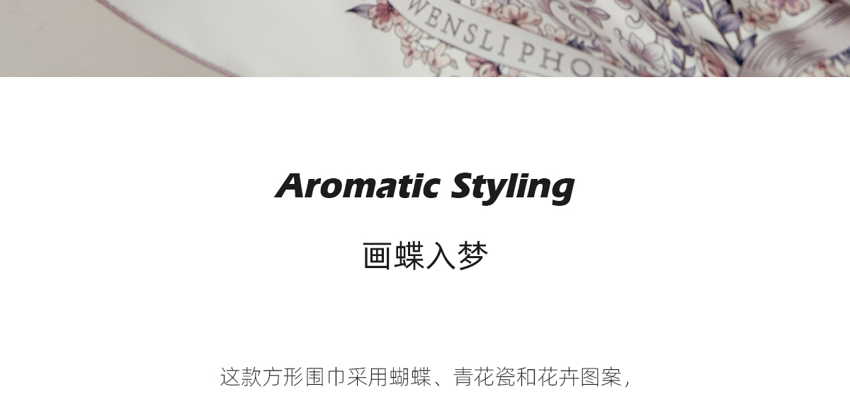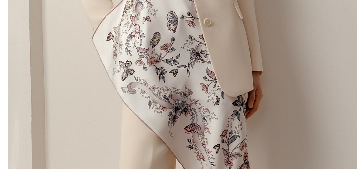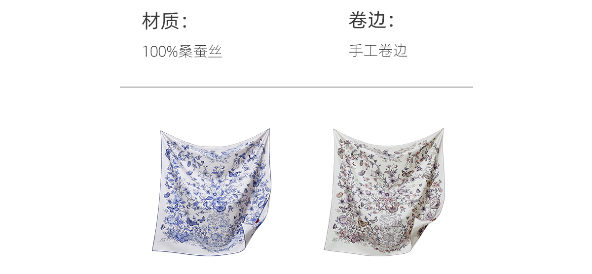 凤凰之家“画蝶入梦”88厘米双面印花大方巾