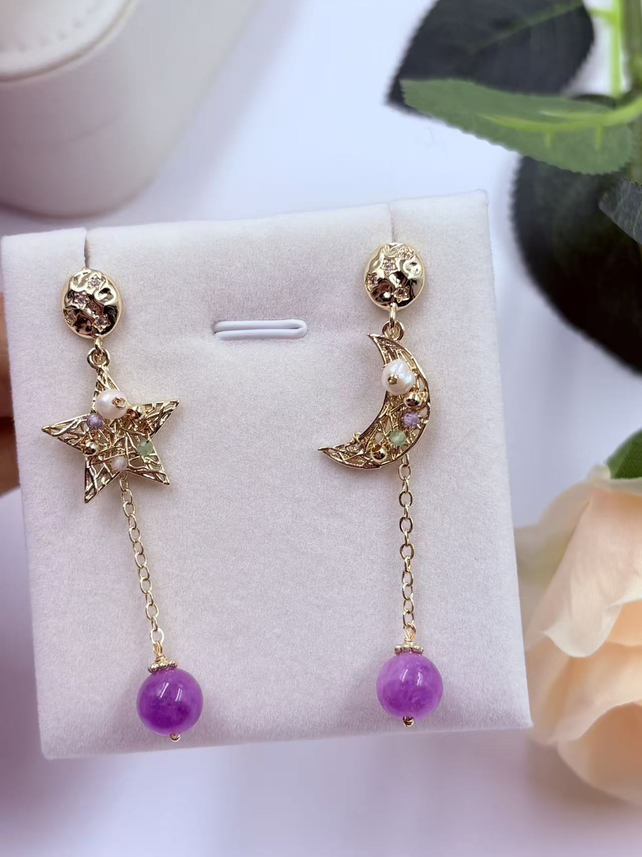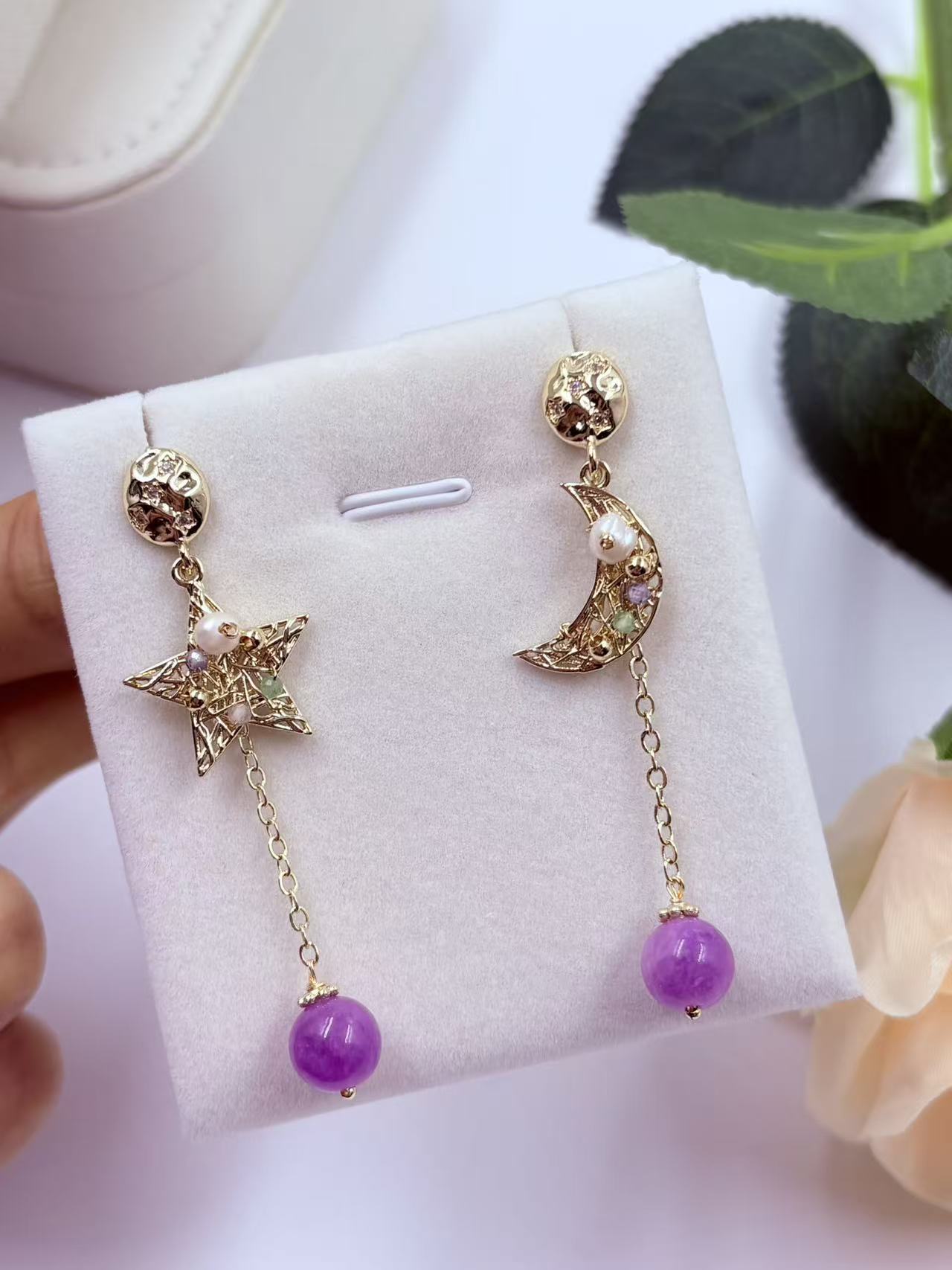 名称:紫水晶星月耳饰