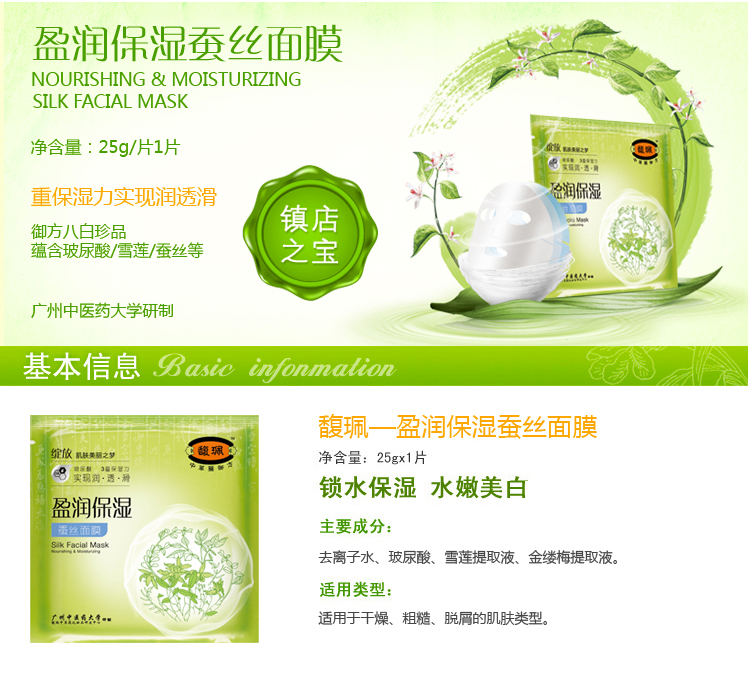 【YZ】馥佩盈润保湿蚕丝面膜20片提亮肤色补水去黄气暗沉淡斑保湿