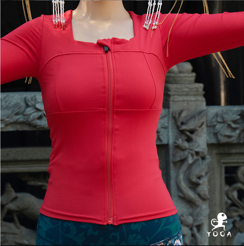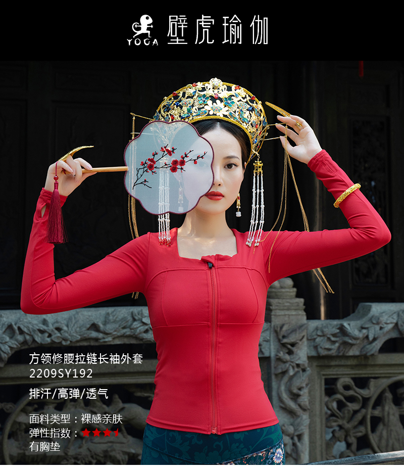 壁虎瑜伽【2209SY192】方领修腰拉链长袖外套(有胸垫)【5天发货】