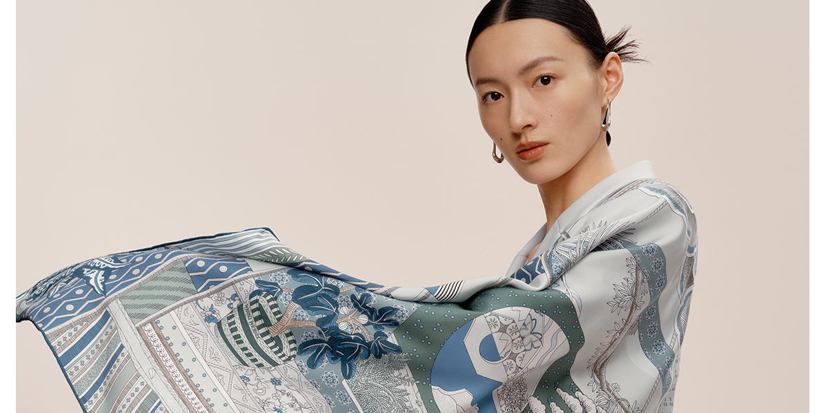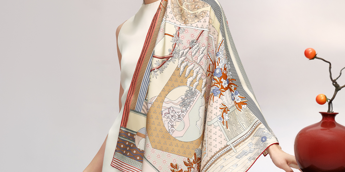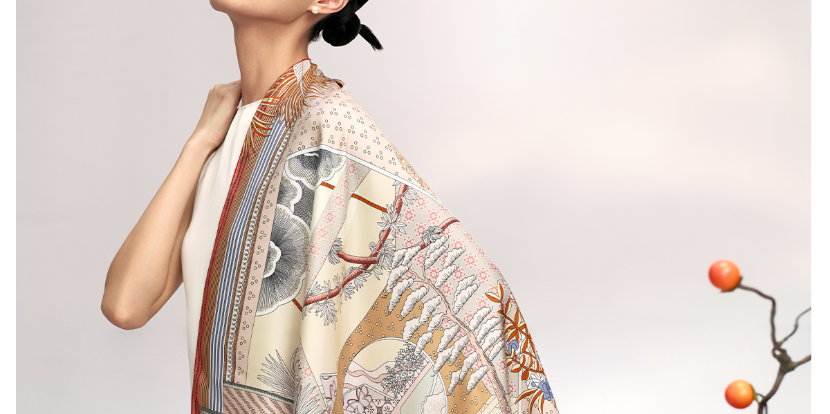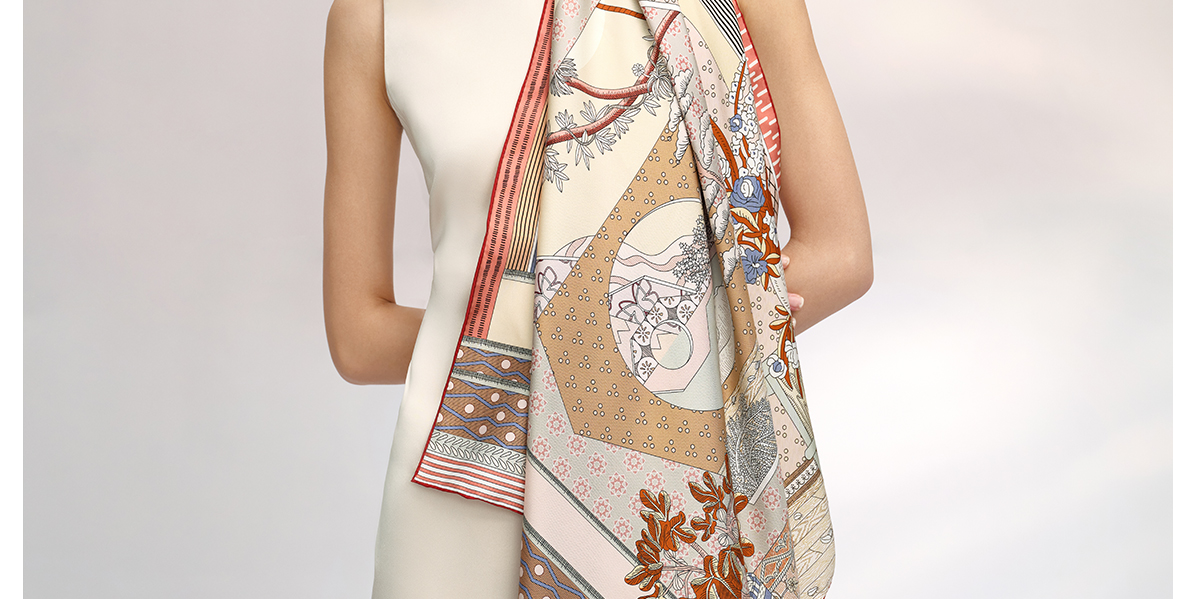 万事利“繁花颂歌”75厘米双面印花中方巾