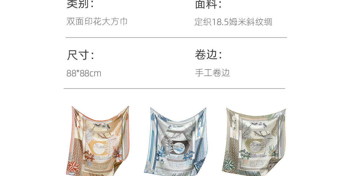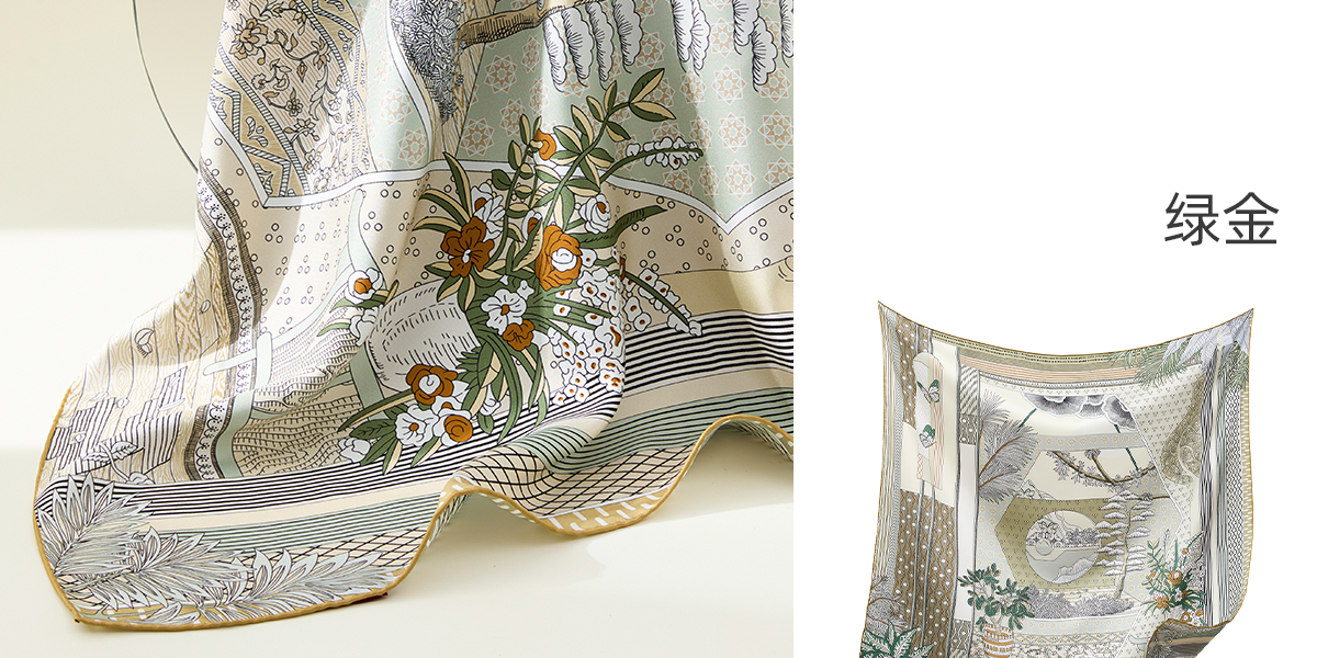 凤凰之家双面印花大方巾-庭院深几许(88厘米)