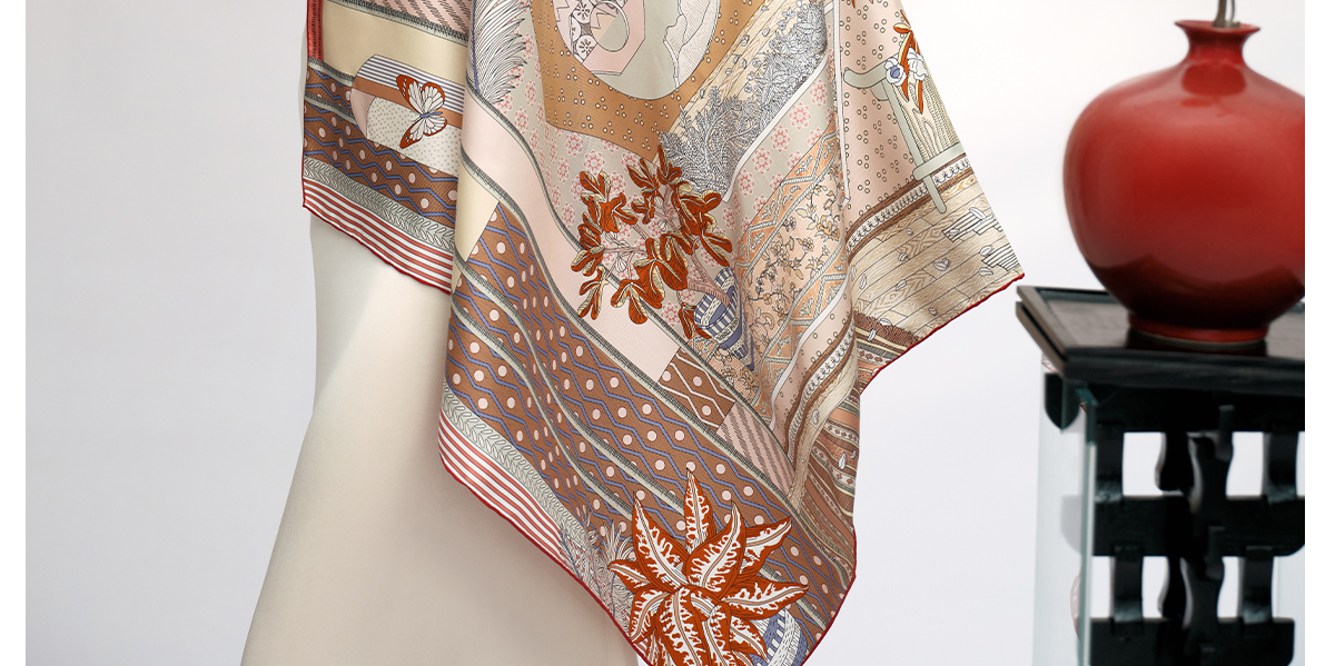 万事利75厘米双面印花中方巾