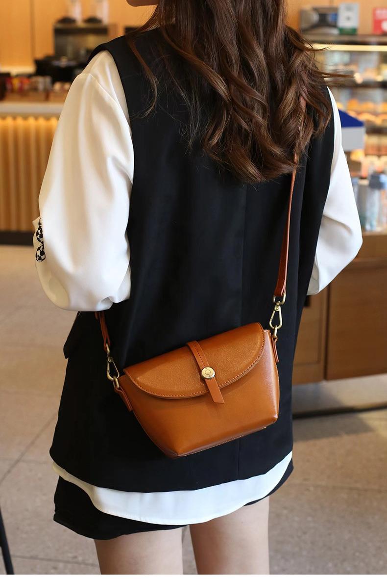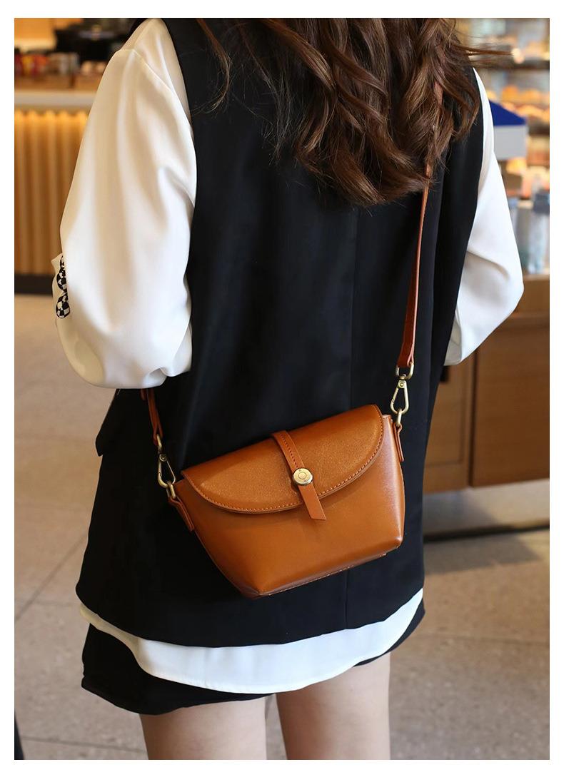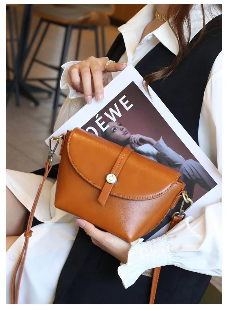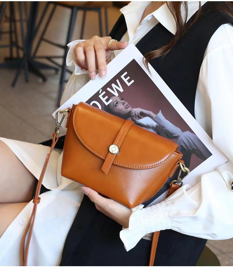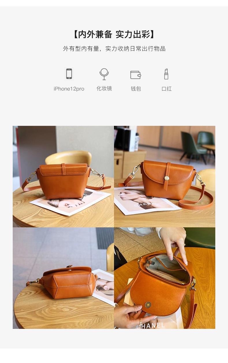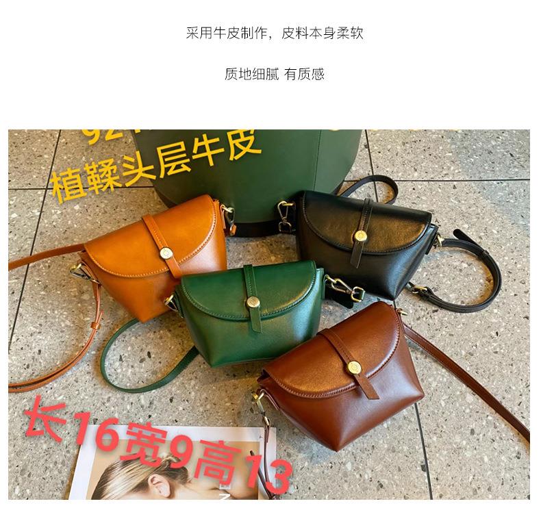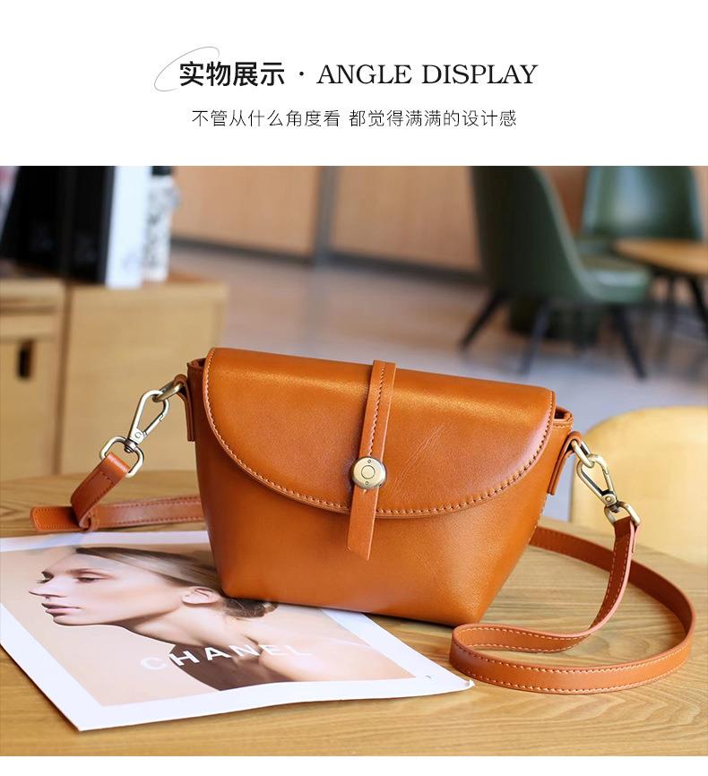 春夏新品头层牛皮真皮女包时尚植鞣斜跨小包韩版休闲简约饺子包
