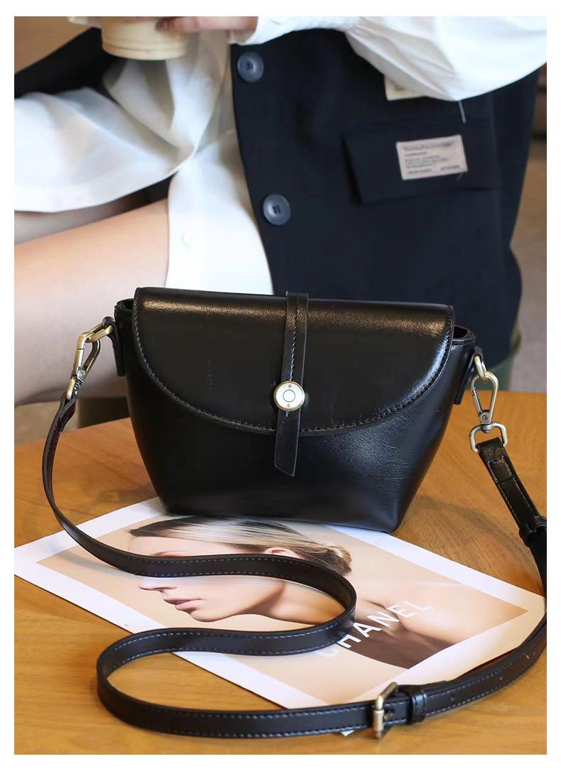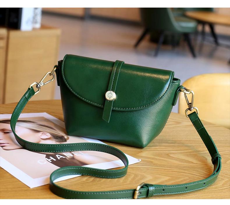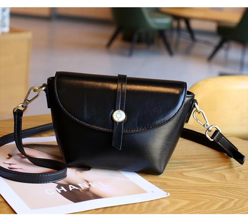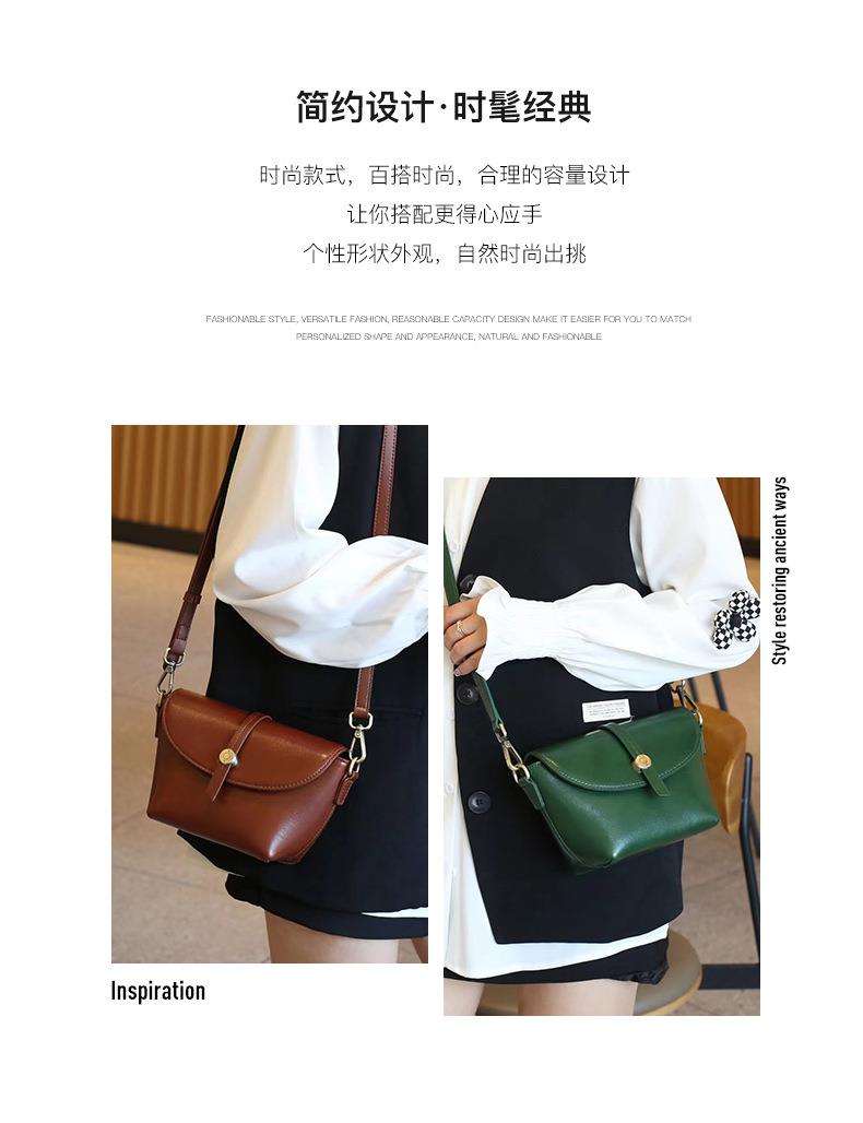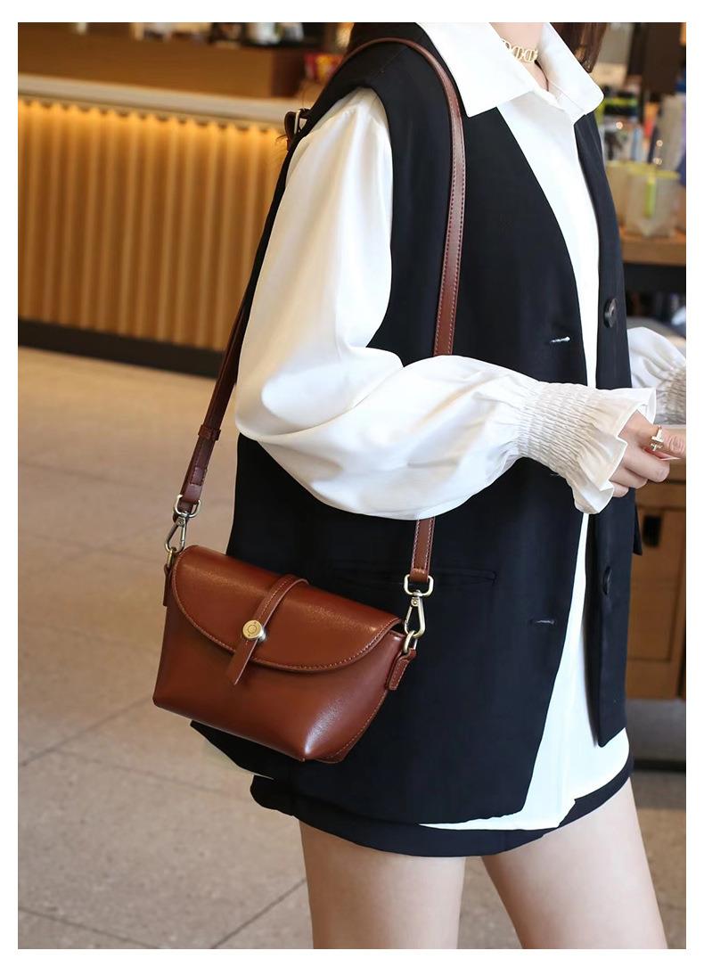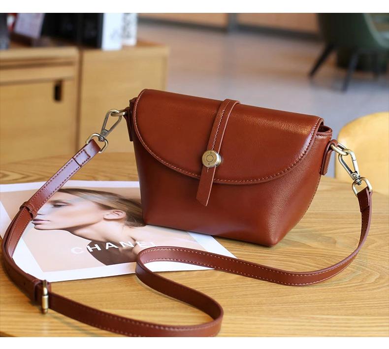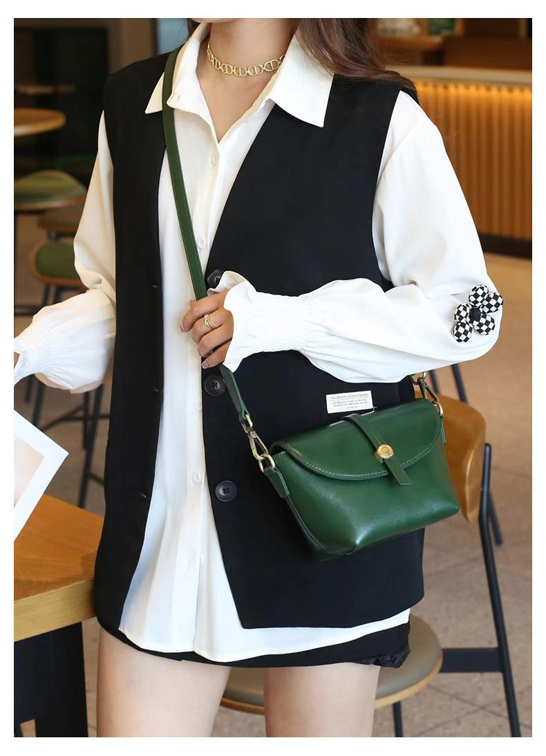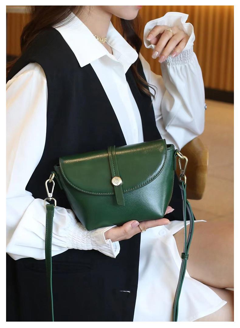 春夏新品头层牛皮真皮女包时尚植鞣斜跨小包韩版休闲简约饺子包