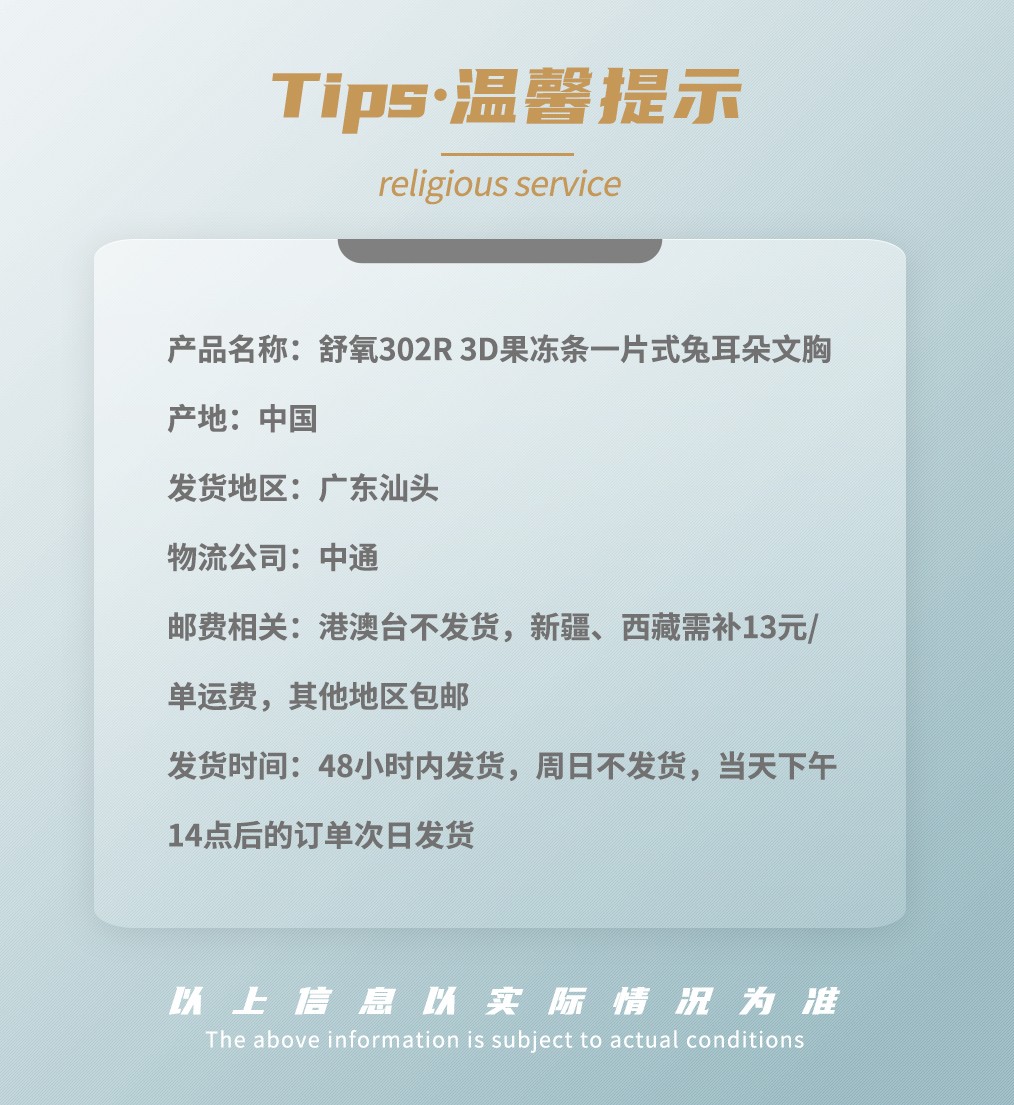 【轻薄无感】舒氧3D果冻条一片式兔耳朵文胸302R 不跑杯不空杯 享受自由呼吸 超薄款无痕内衣女夏 大胸显小无钢圈软支撑