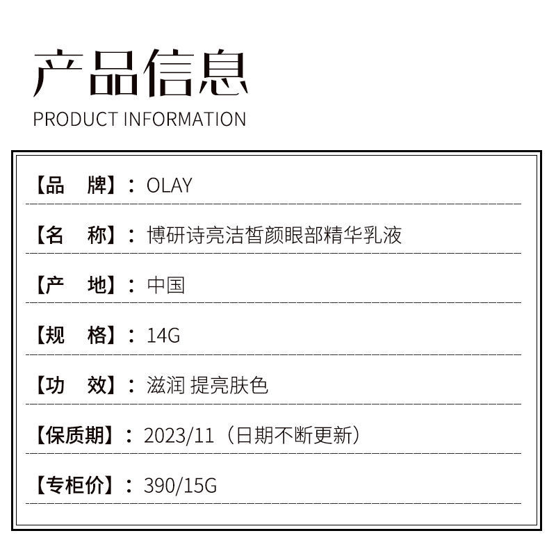 【爆款超低价预售 急单慎拍】专柜玉兰油Olay博研诗亮洁皙颜眼部精华乳15g淡黑眼圈提亮眼霜