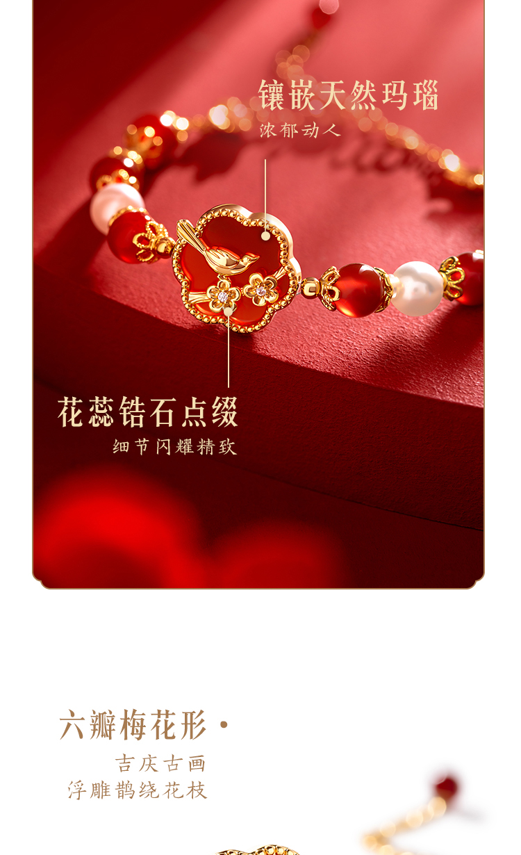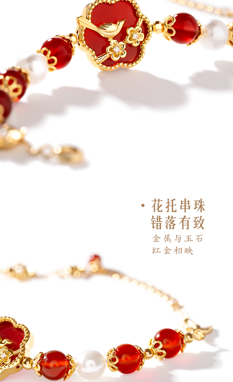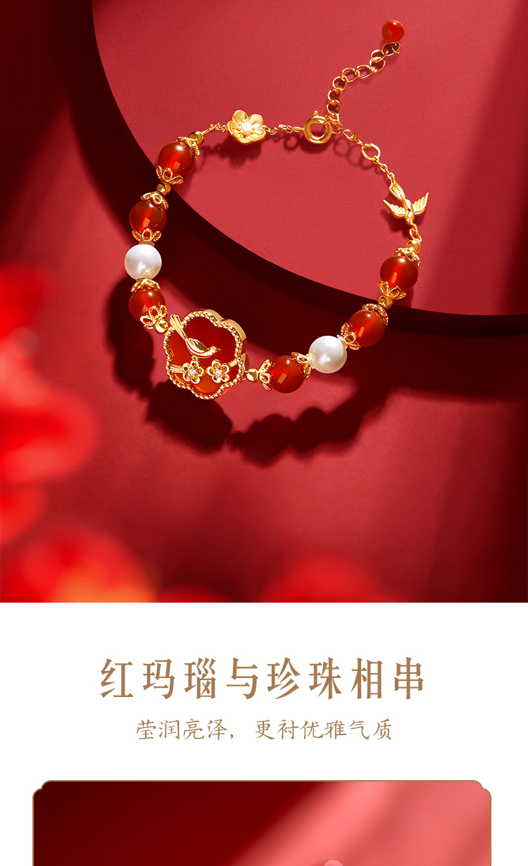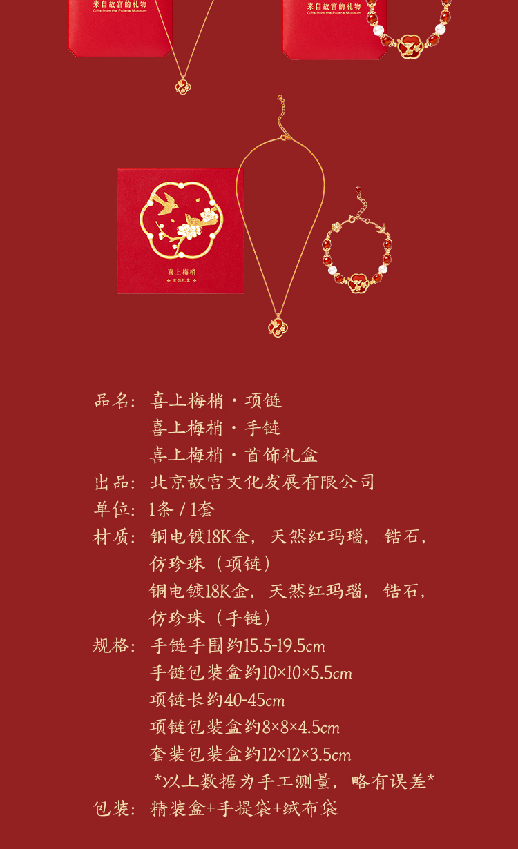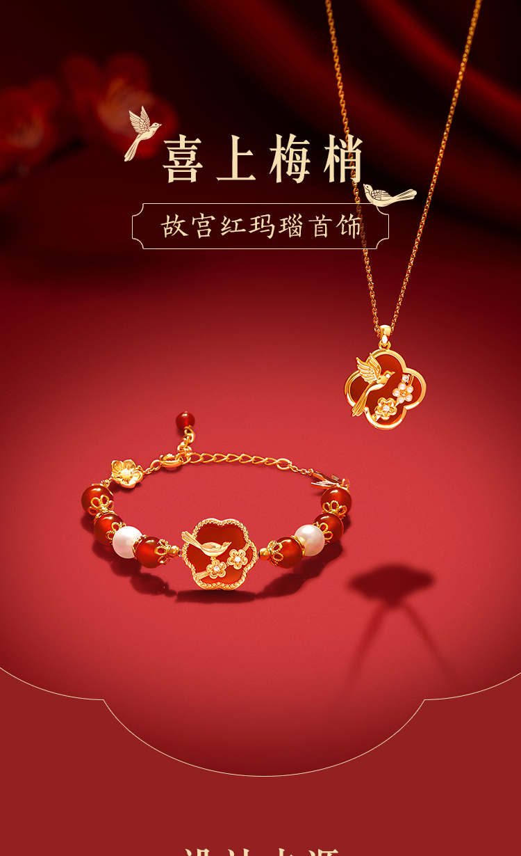 【故宫饰品】喜上梅梢红玛瑙手链项链礼盒文创新婚结婚七夕生日礼物