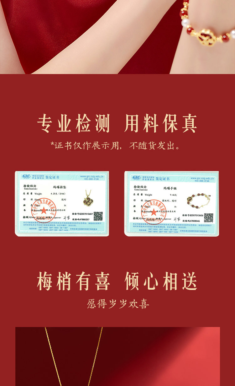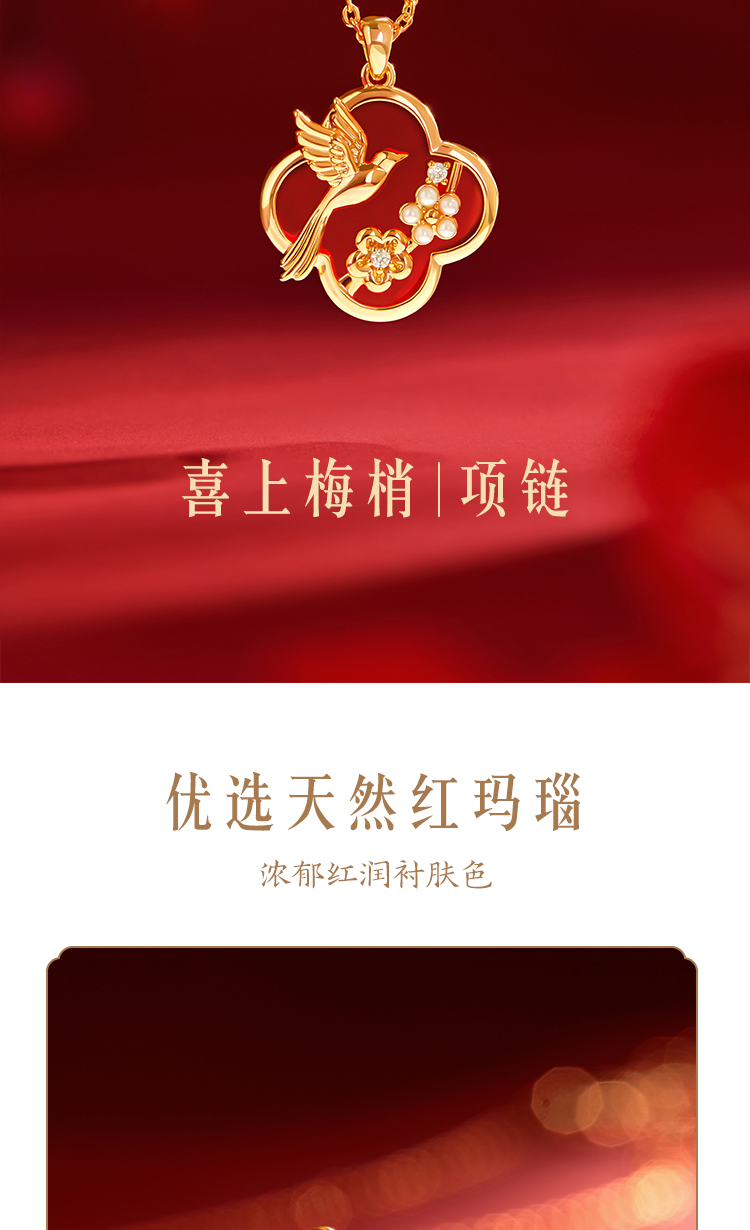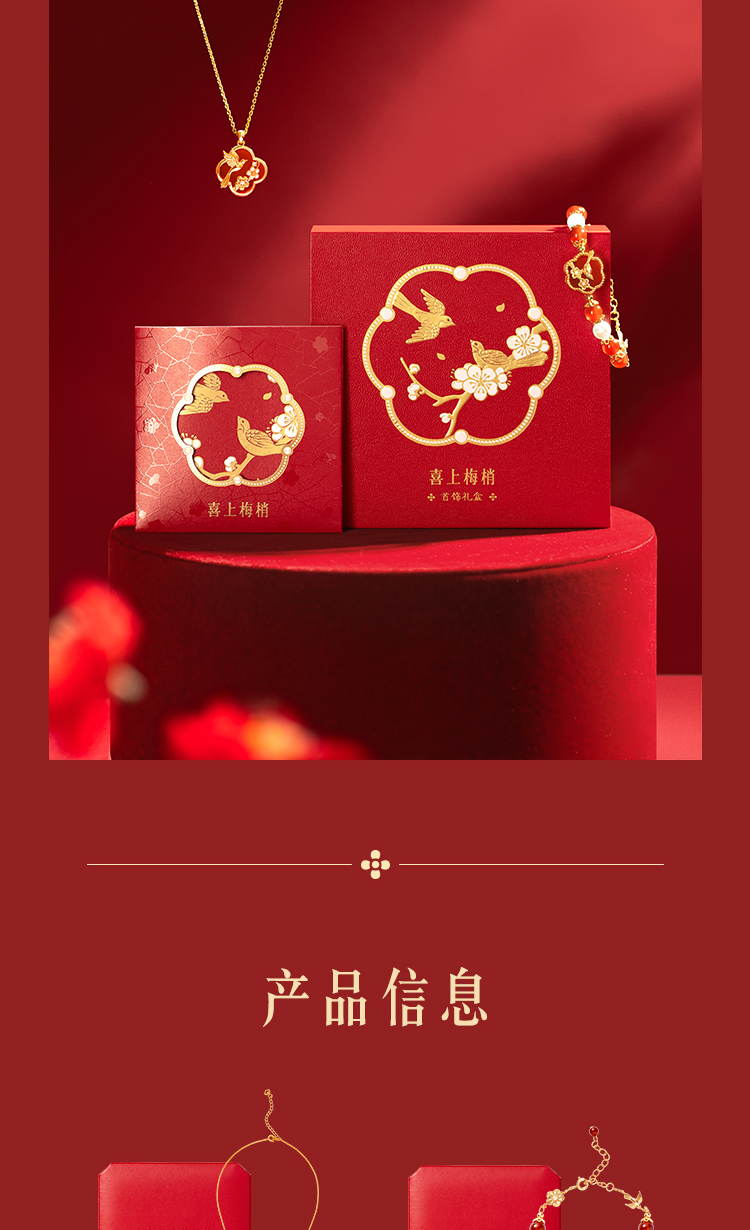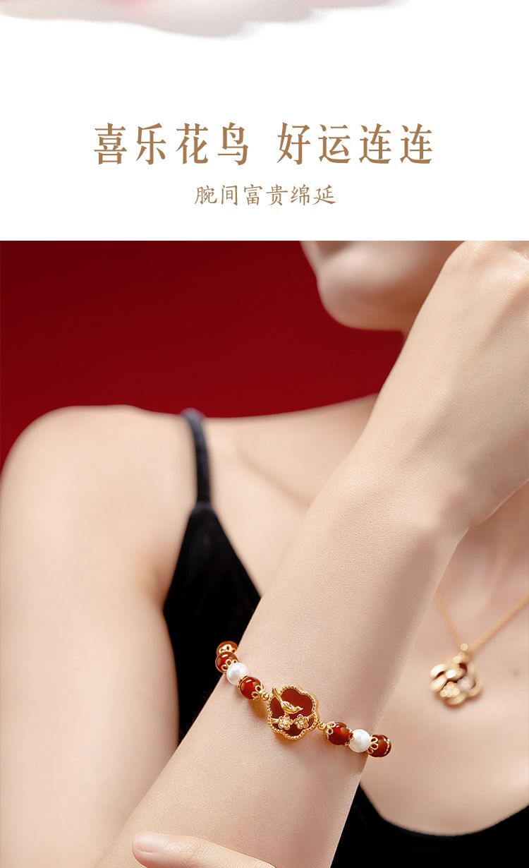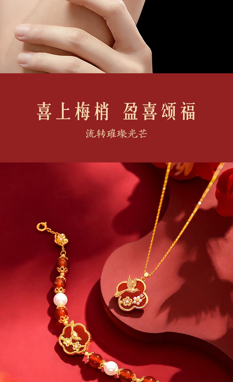 【故宫饰品】喜上梅梢红玛瑙手链项链礼盒文创新婚结婚七夕生日礼物