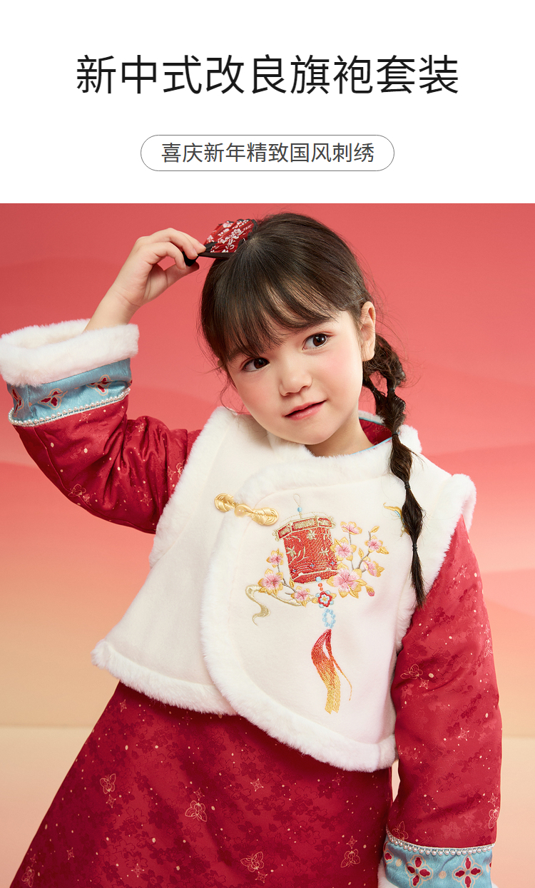 巴拉巴拉童装女童旗袍儿童套装新中式2025春装新款小童拜年服刺绣