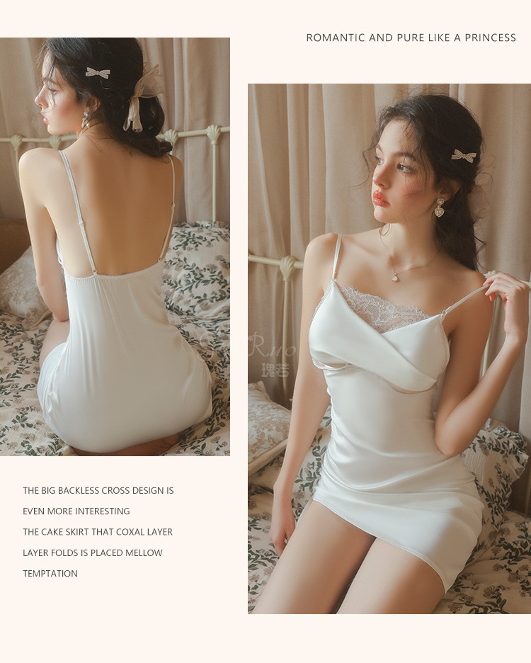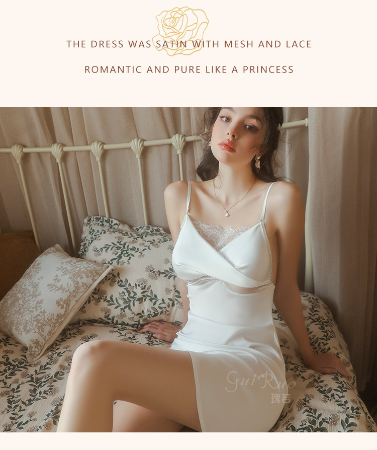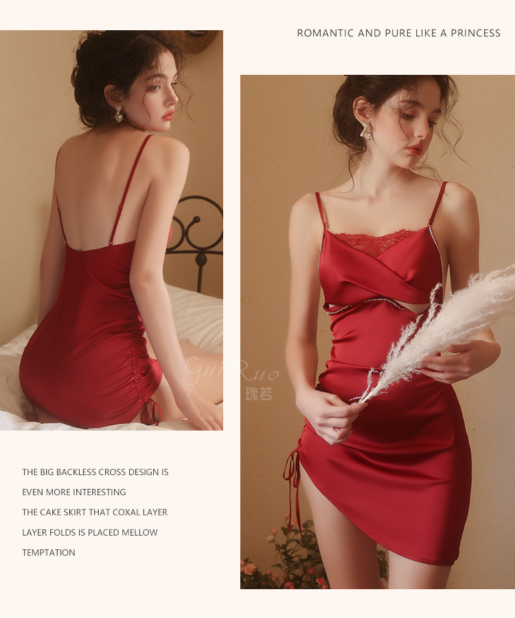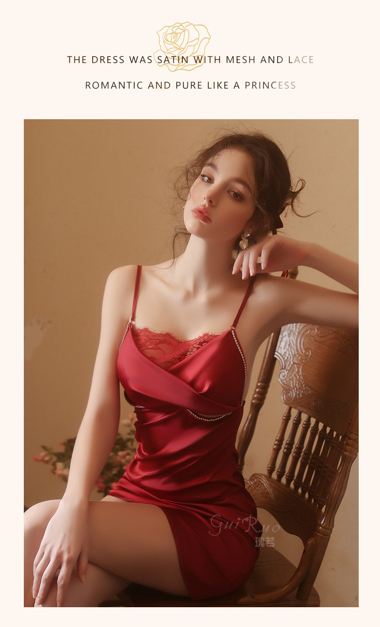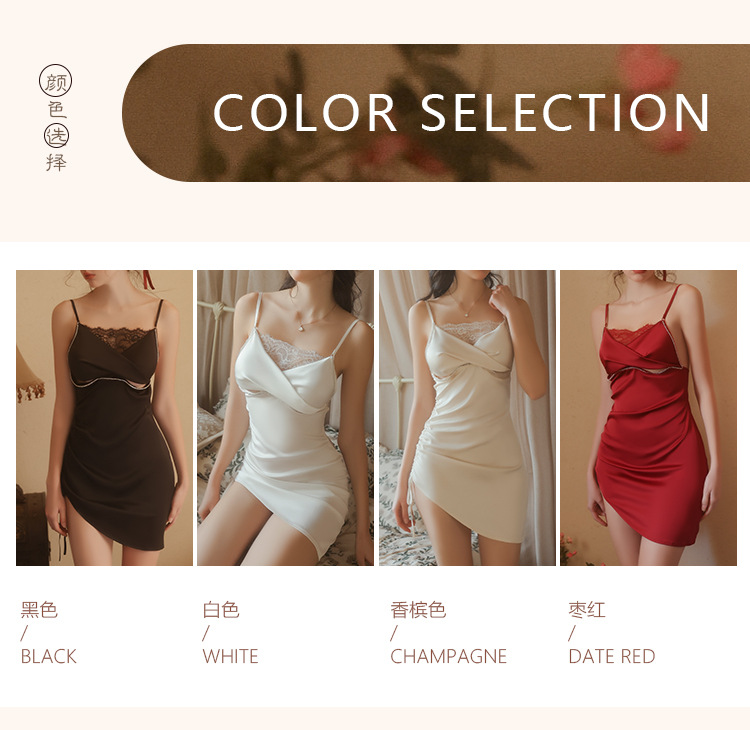 【YW】无忧购纯欲冰丝睡衣性感深V蕾丝激情火辣不规则吊带裙家居服4989(截单后3-5天发货)