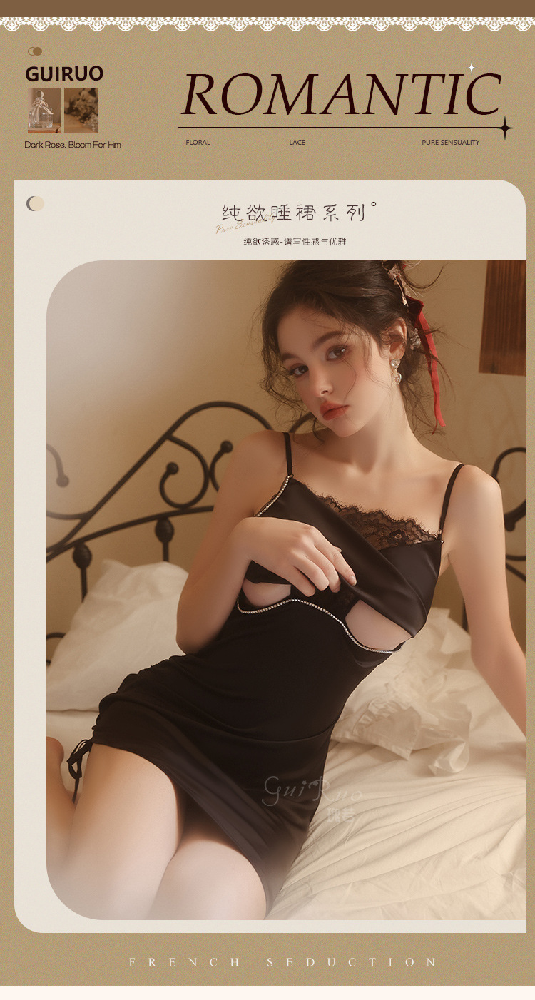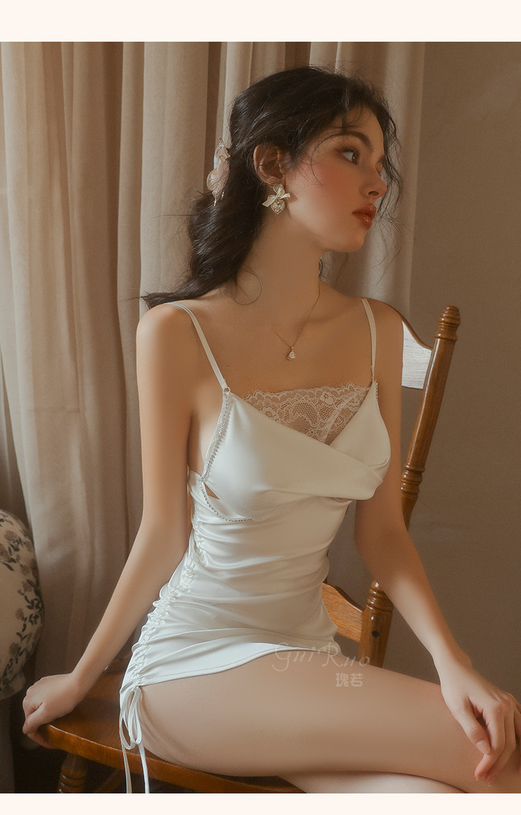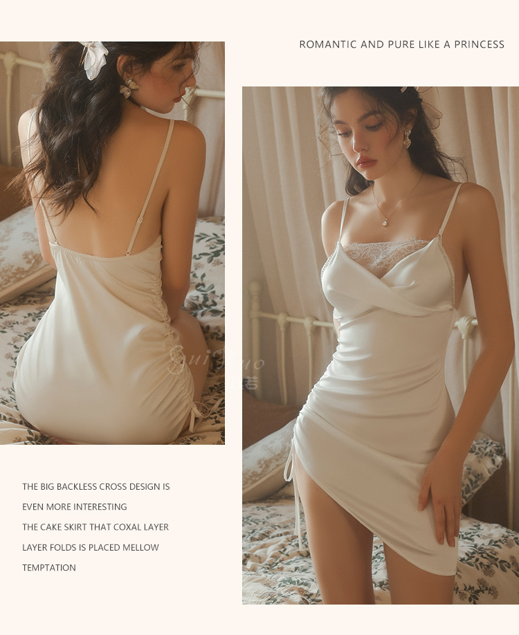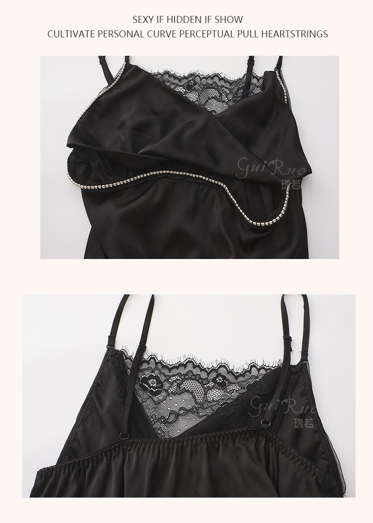 【YW】无忧购纯欲冰丝睡衣性感深V蕾丝激情火辣不规则吊带裙家居服4989(截单后3-5天发货)