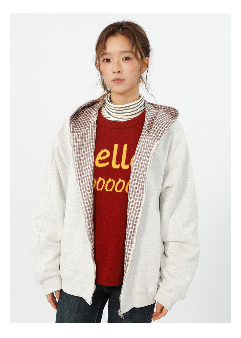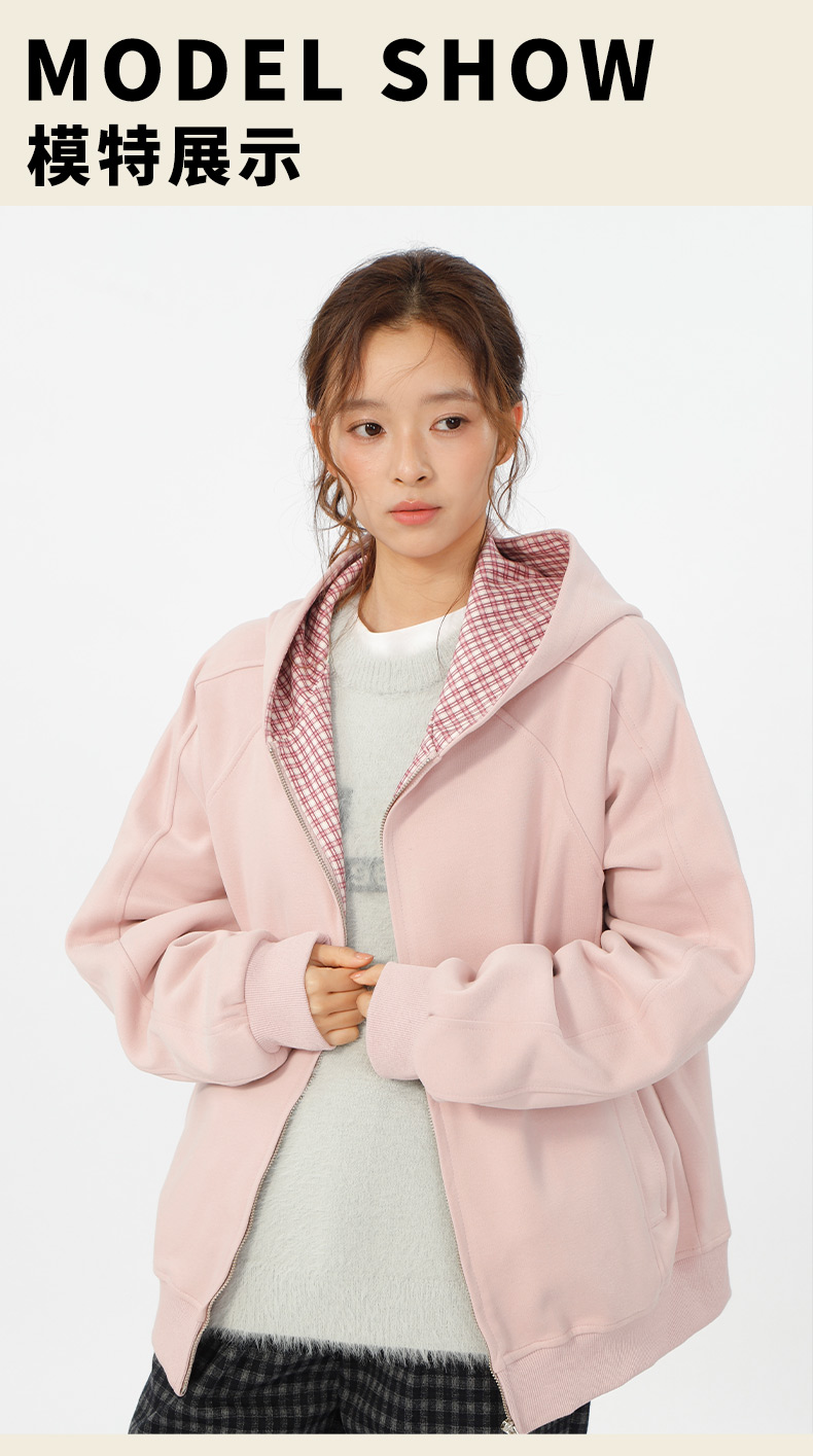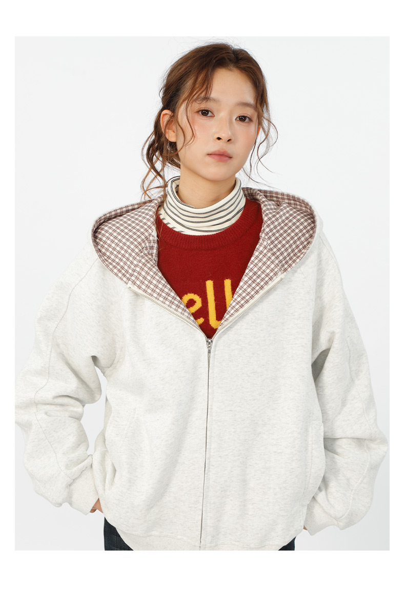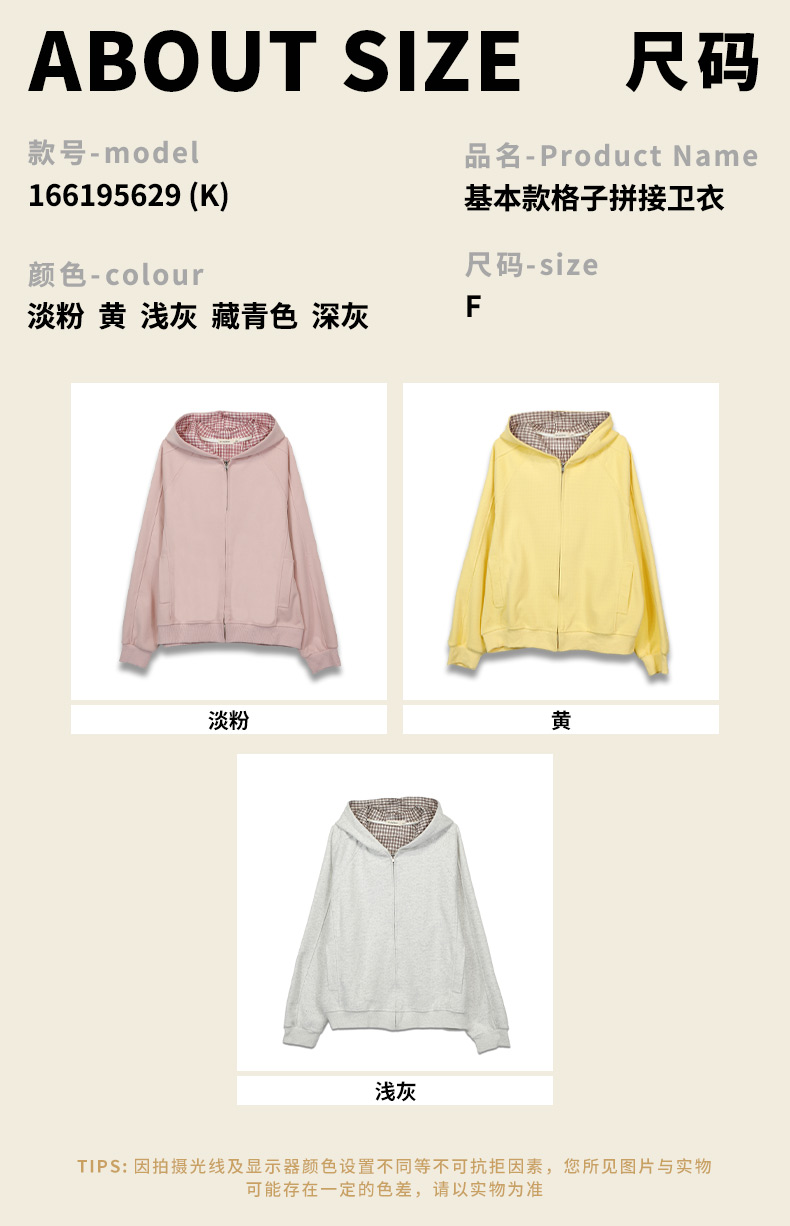 设计感连帽基本款格子拼接卫衣-纪念日百货门店同款166195629