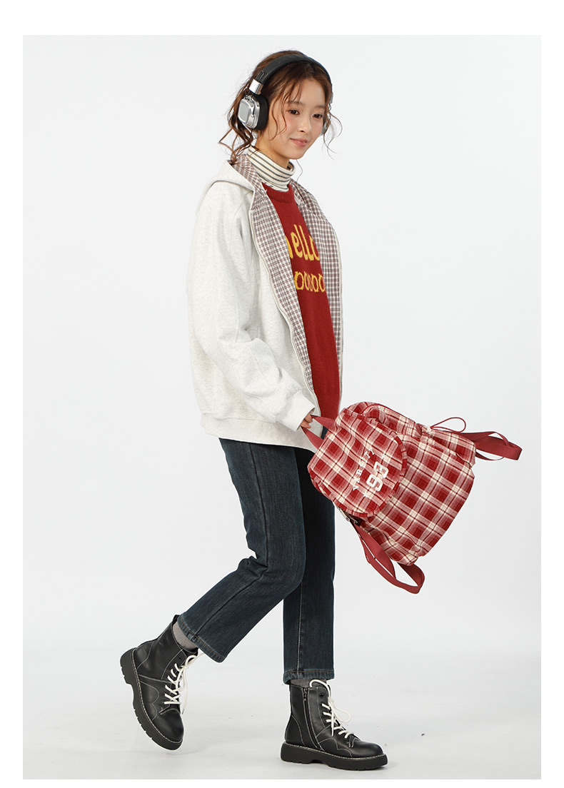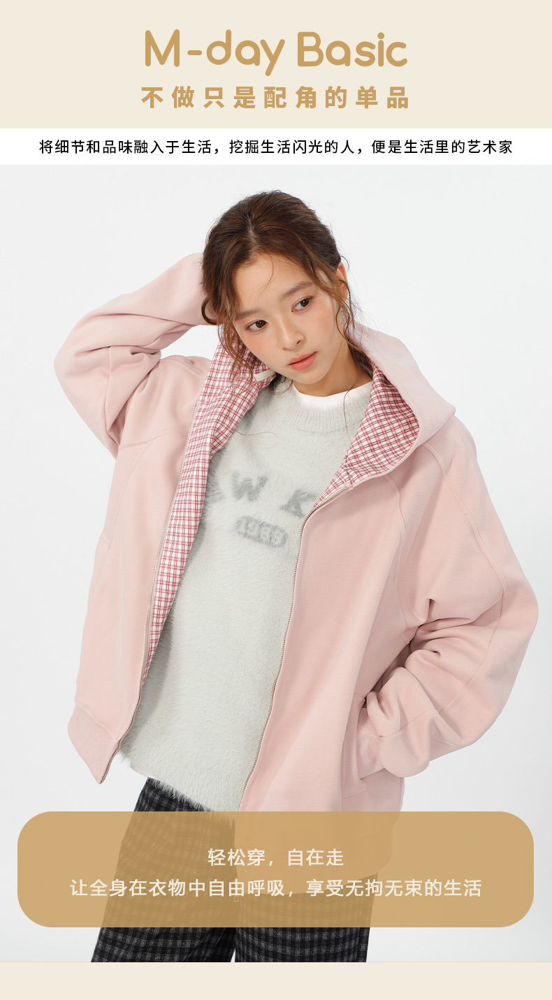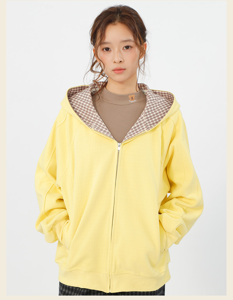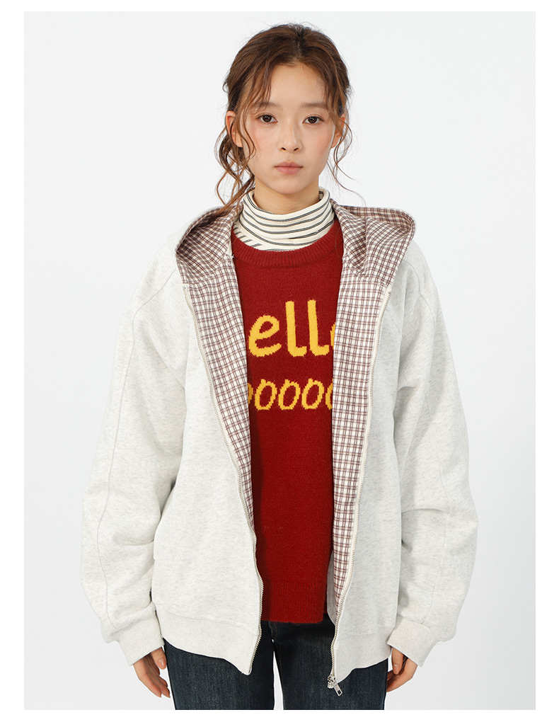 设计感连帽基本款格子拼接卫衣-纪念日百货门店同款166195629