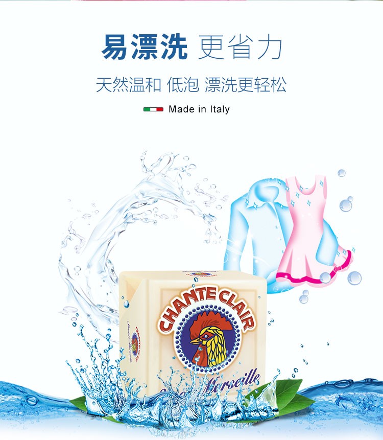 CHANTECLAIR 大公鸡管家马赛皂公鸡头洗衣皂进口手工皂内衣皂鸡头皂肥皂 马赛洗衣皂300g*4块