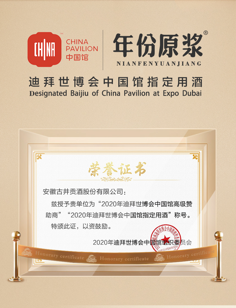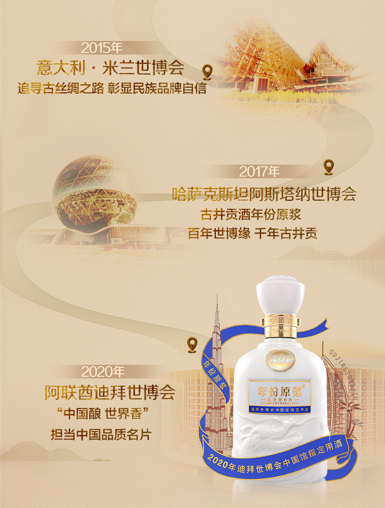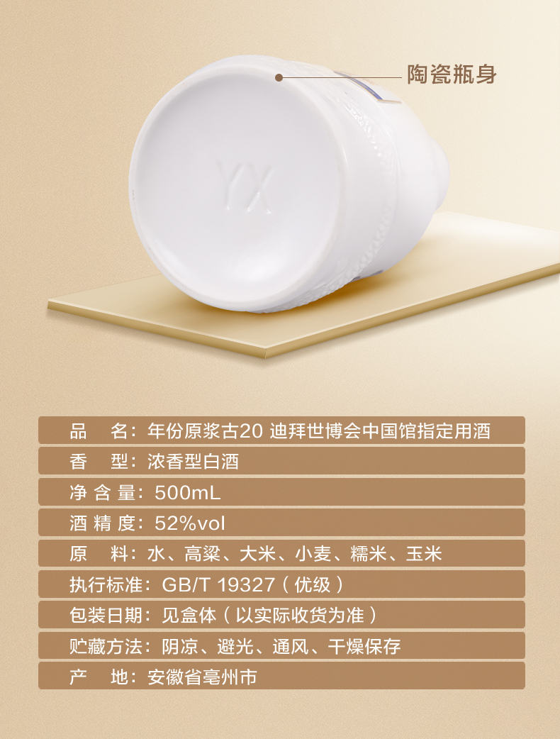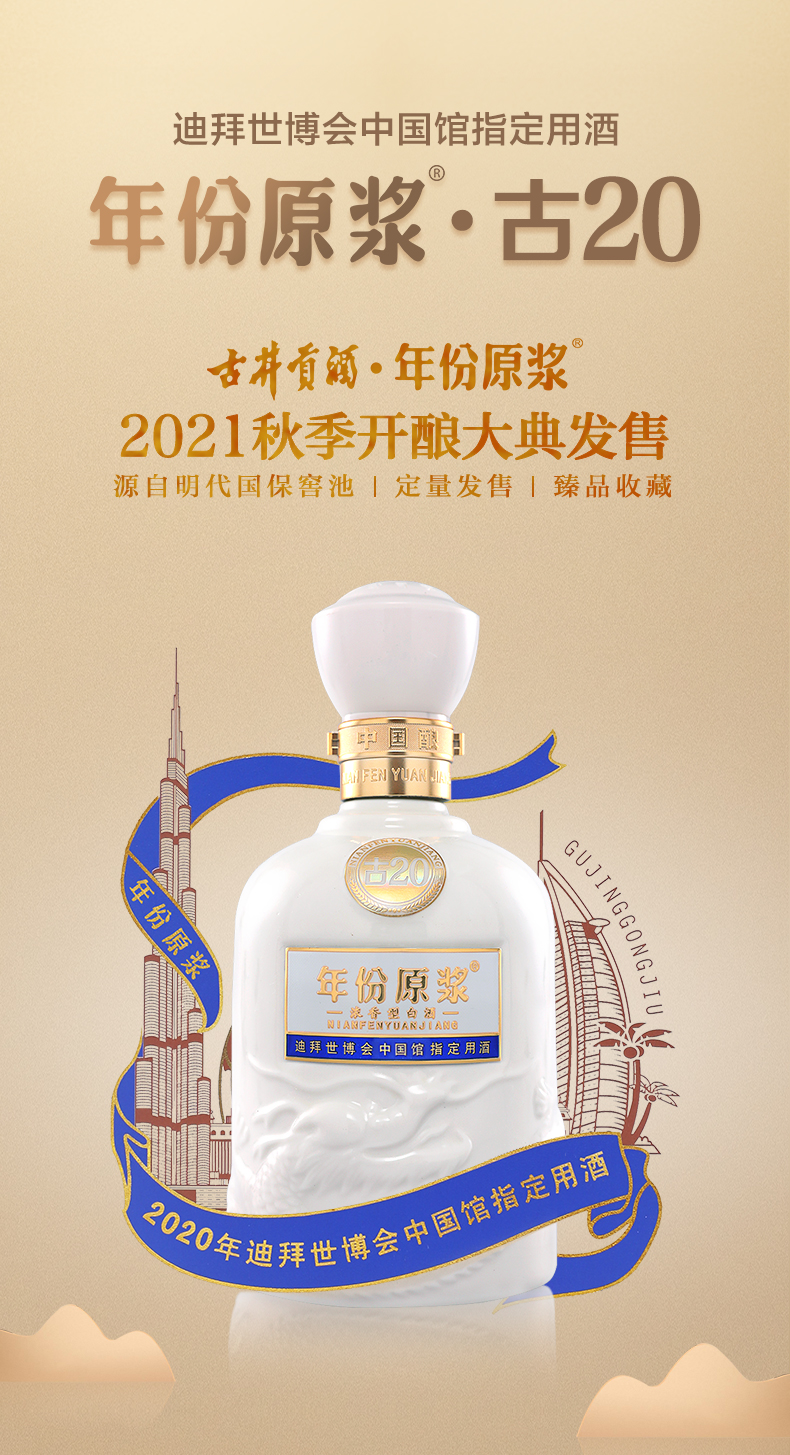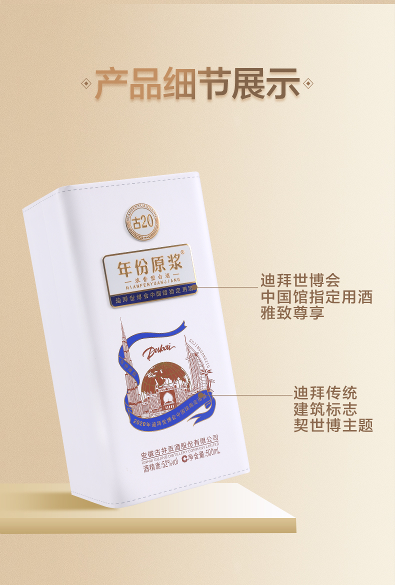 古井贡酒 年份原浆古20 迪拜世博纪念酒 52度500ml*1瓶