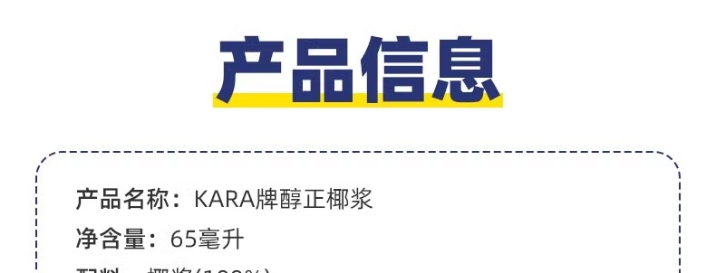 65ml Kara佳乐醇正椰浆 小包装椰浆 浓椰浆奶茶店咖啡烘焙咖喱原材料