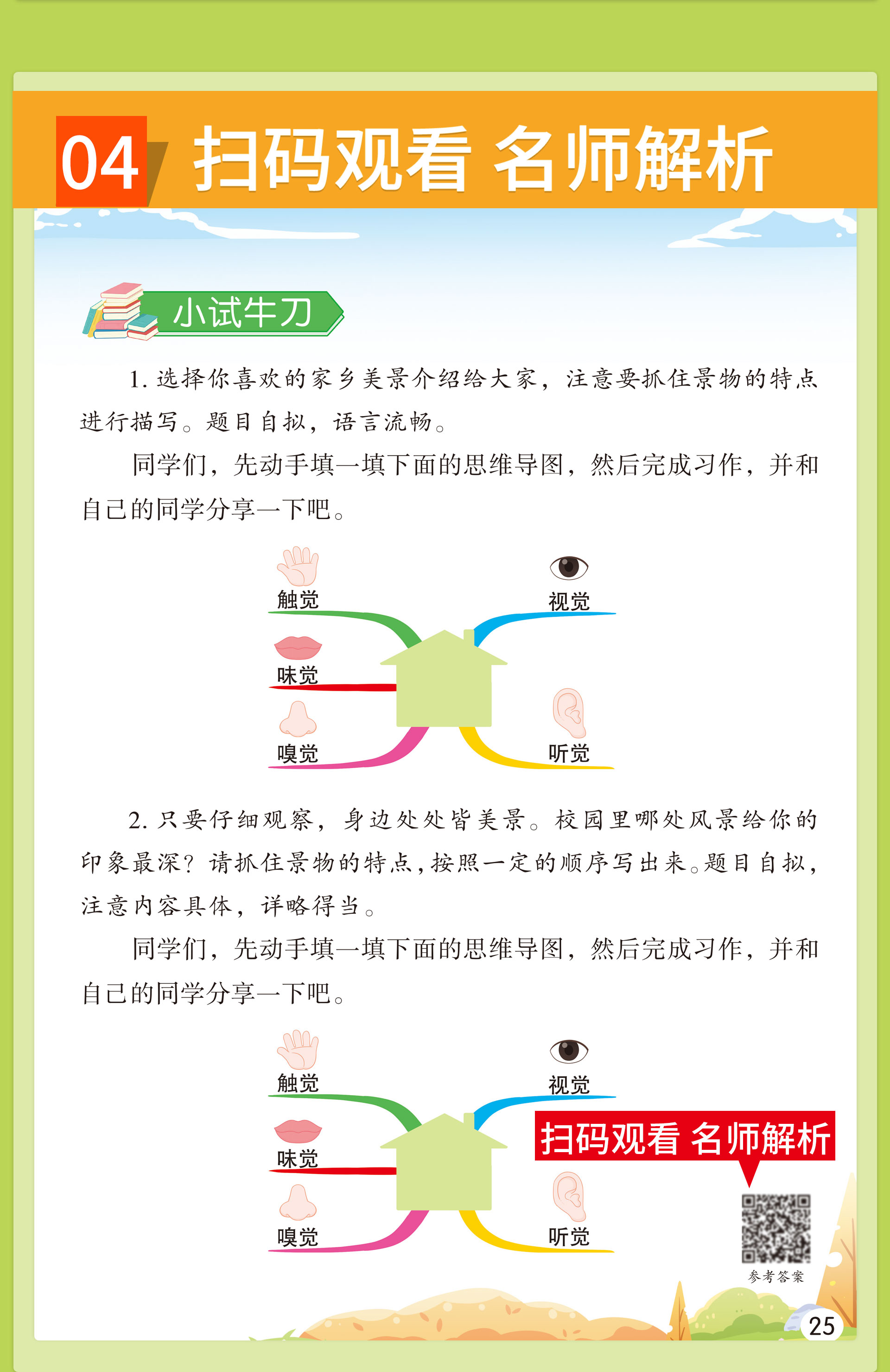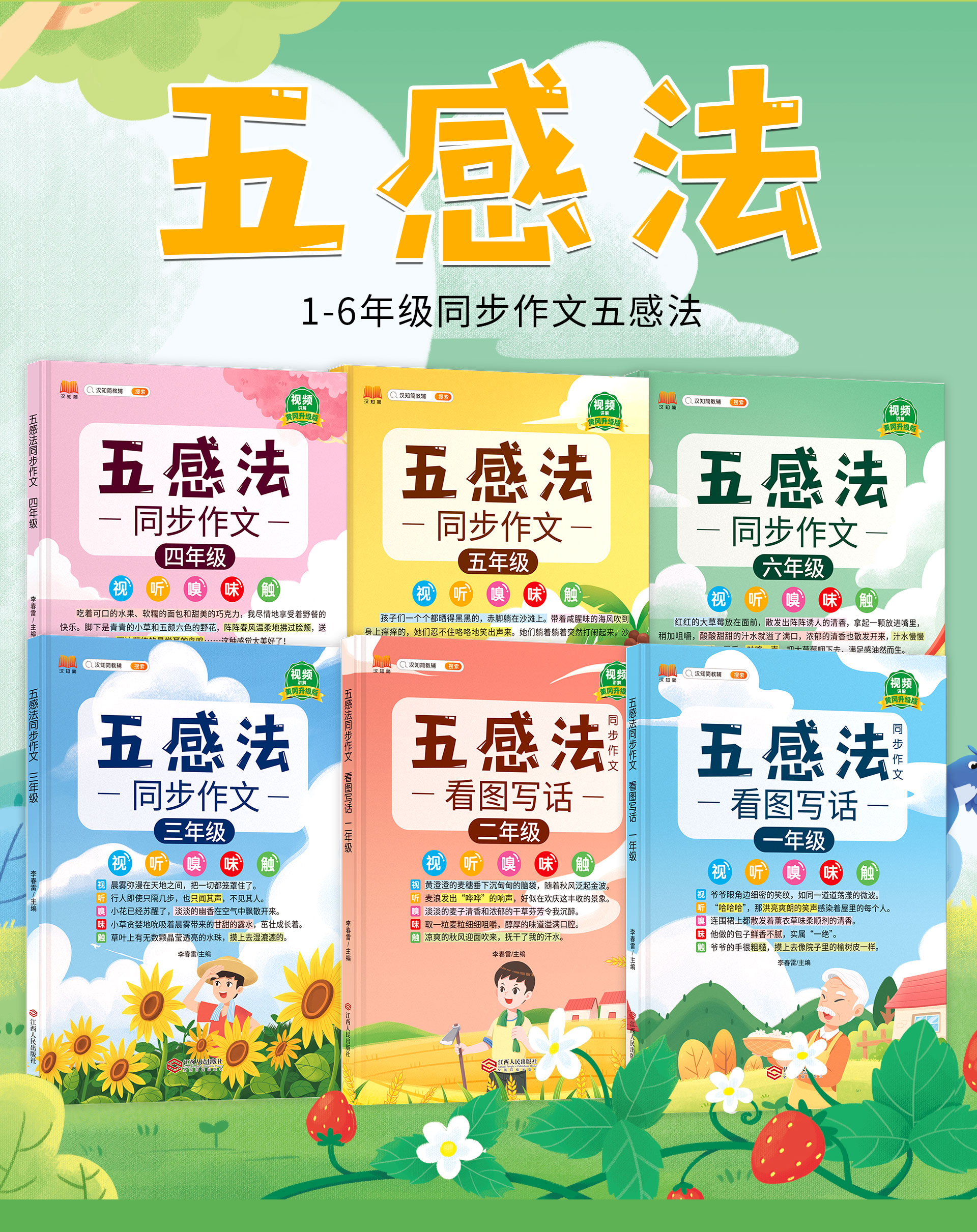 【25 新版】五感法同步作文小学生1-6年级(人教版)含视频讲解