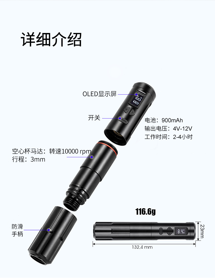 针鬼无线有线两用款细款细支纹身笔力度大刺入感强北京惊蛰刺青器材