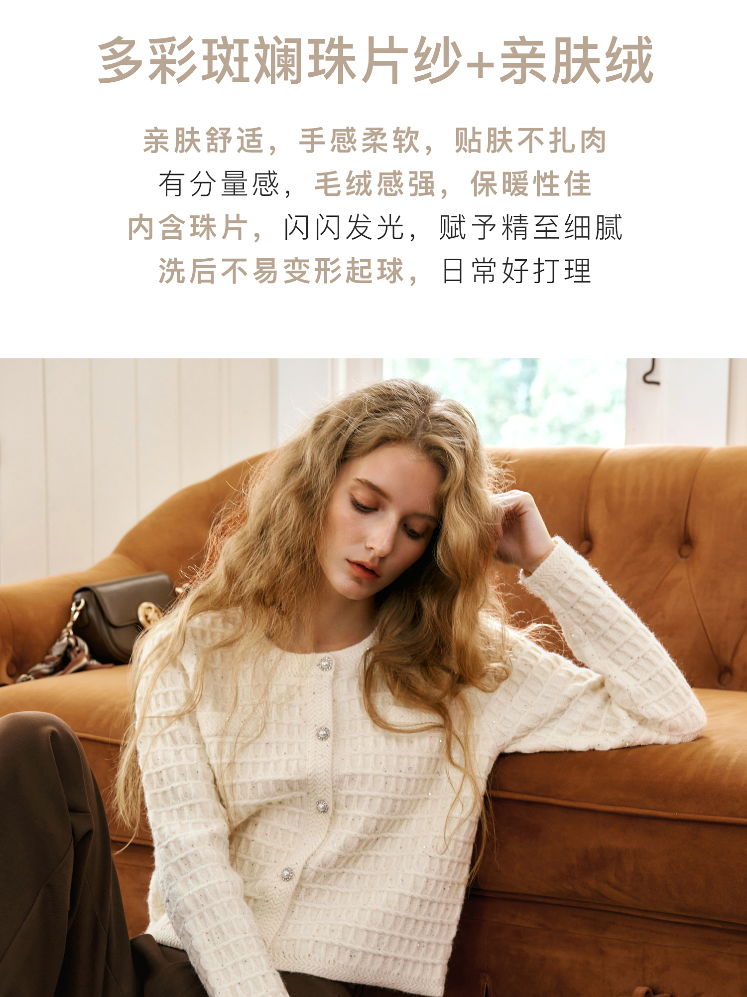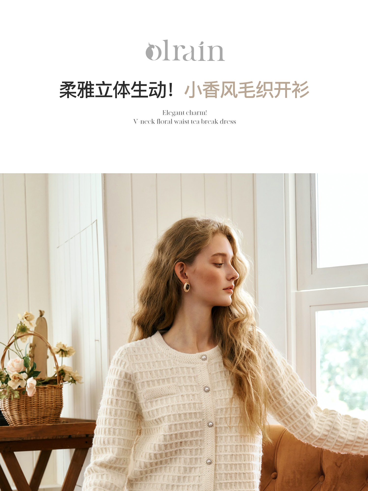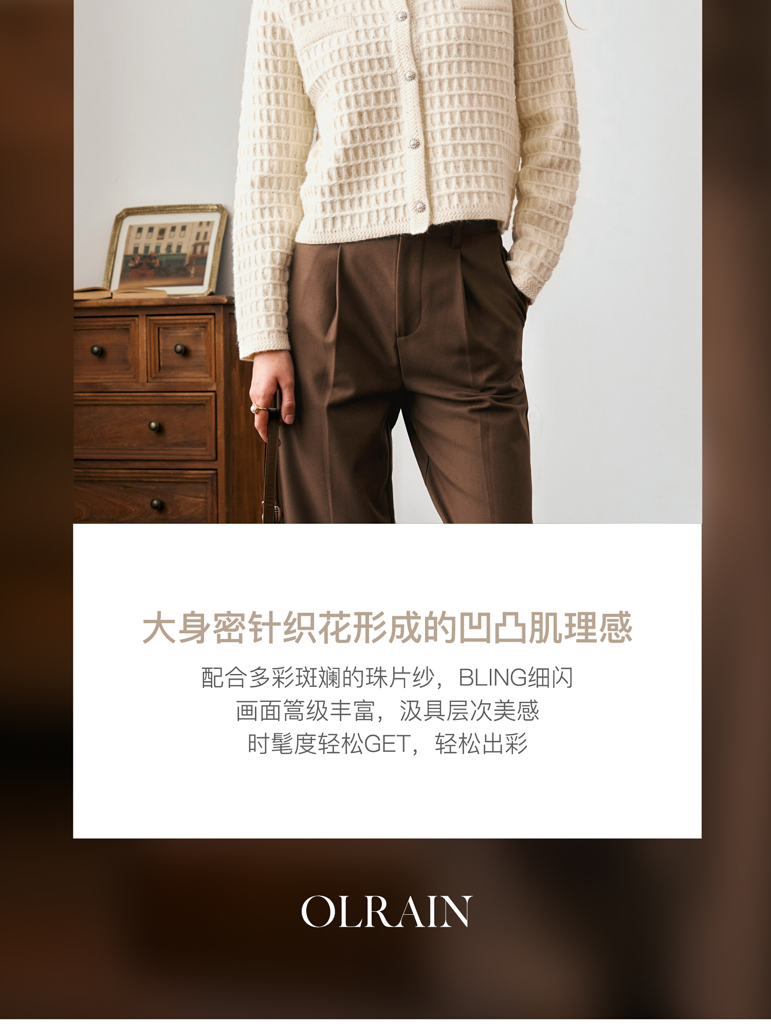 OLrain欧芮儿法式小香风针织开衫女秋季2024新款杏色气质通勤毛衣