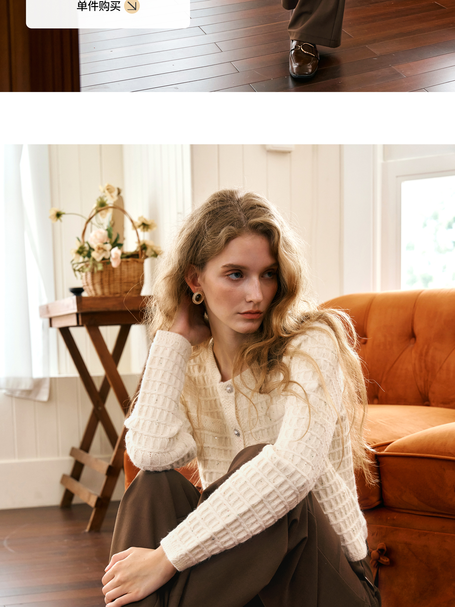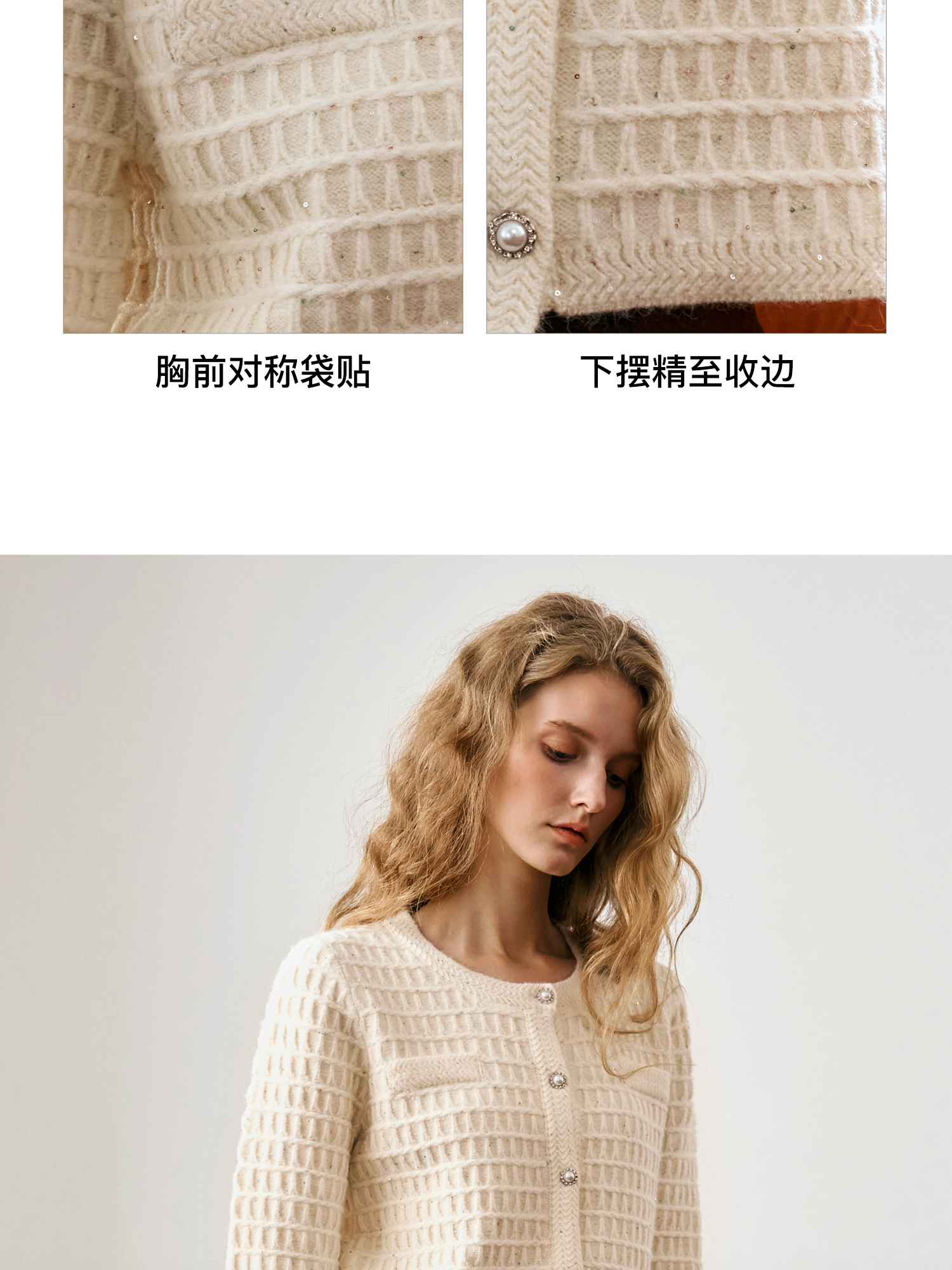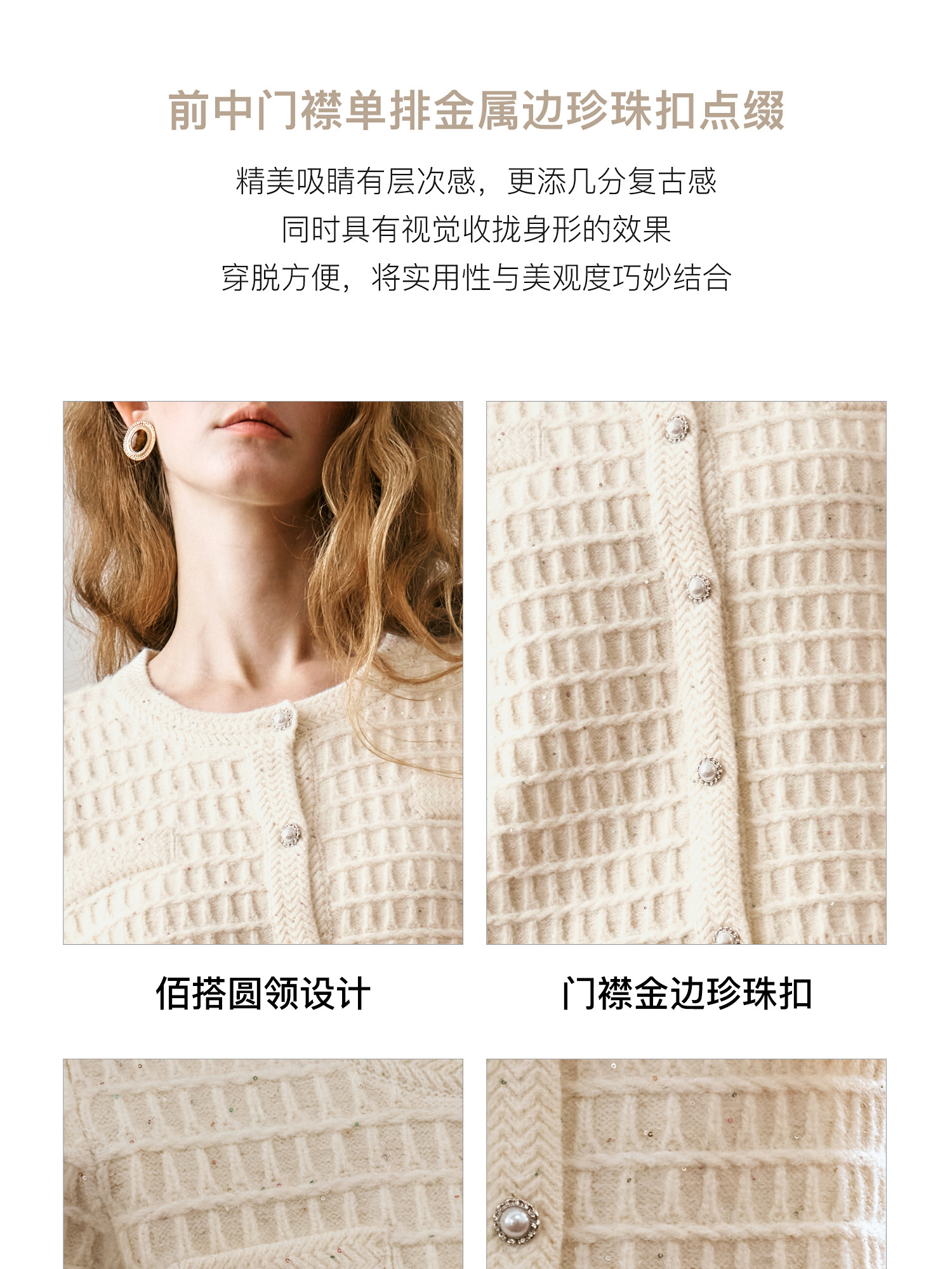 OLrain欧芮儿法式小香风针织开衫女秋季2024新款杏色气质通勤毛衣