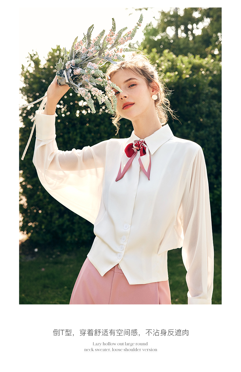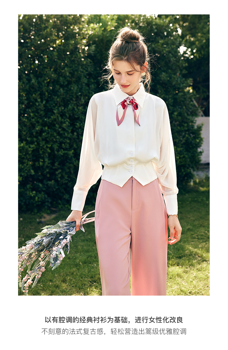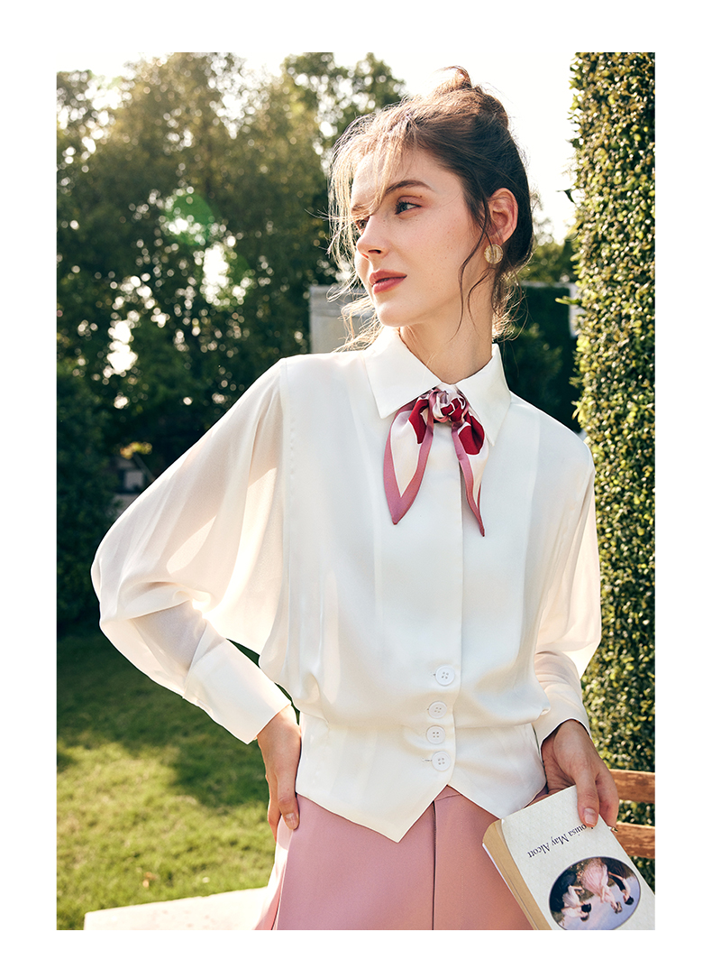 OLrain欧芮儿法式米白色长袖衬衫女春季2023新款宽松复古衬衣