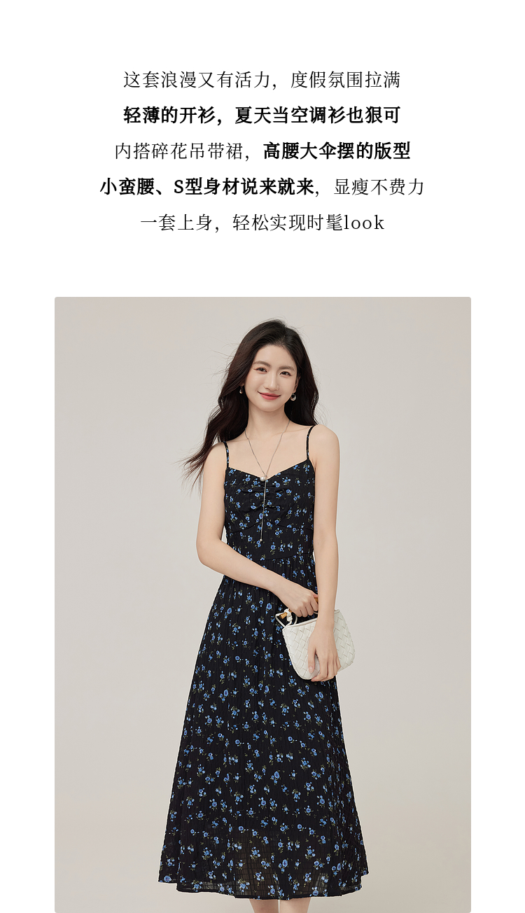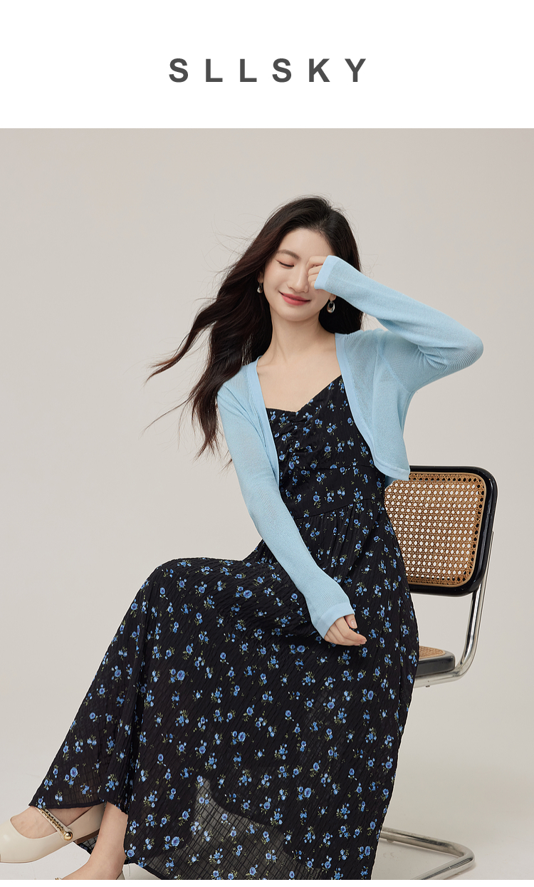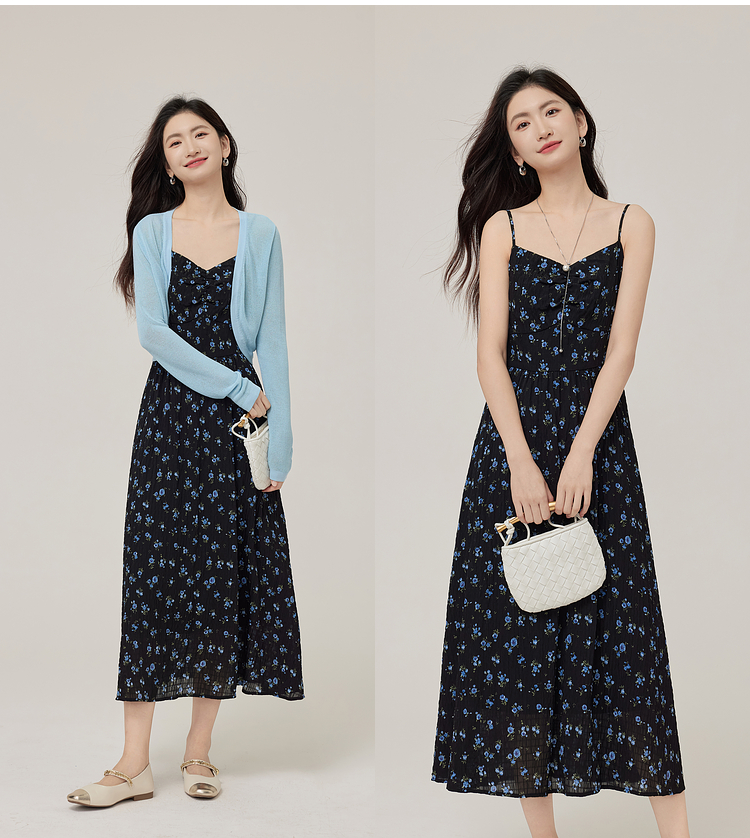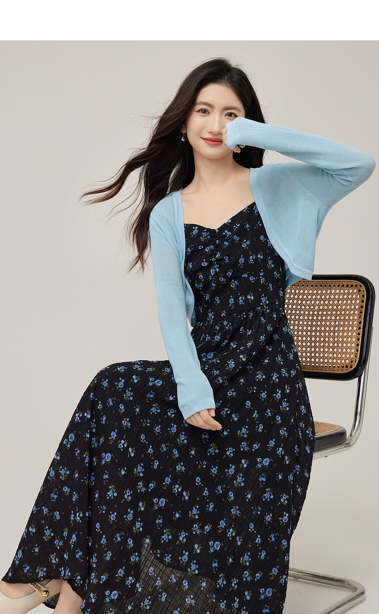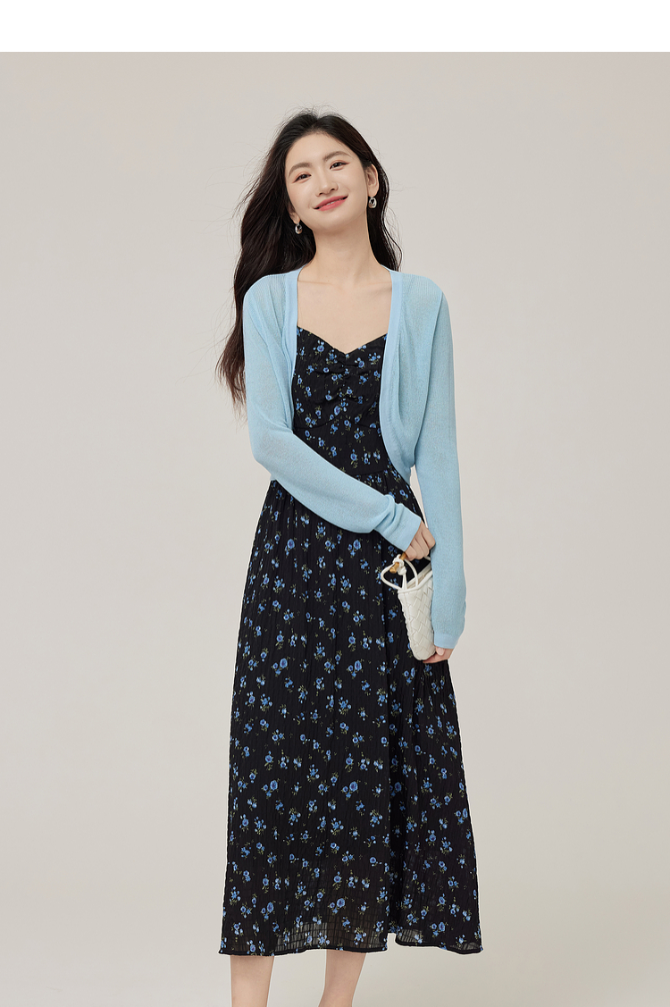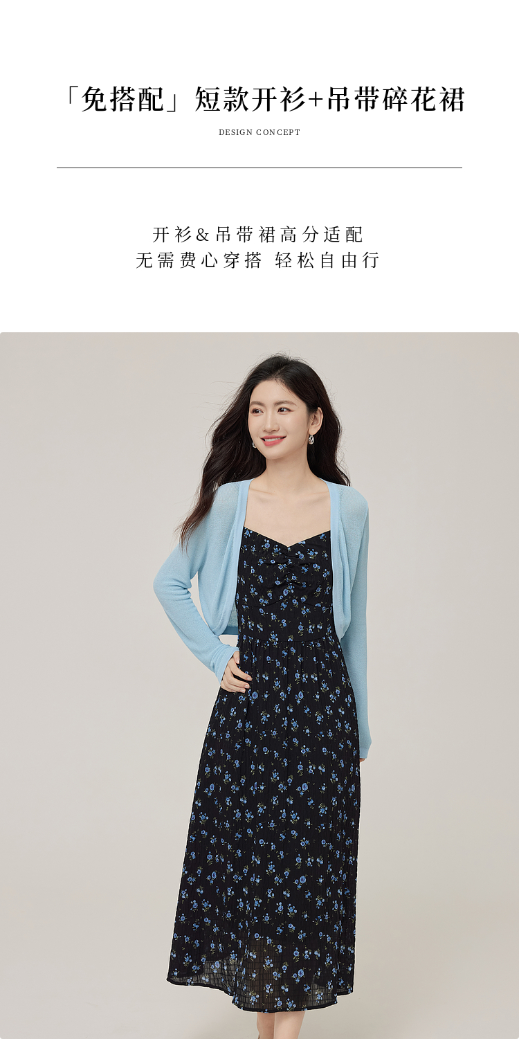 【08/12新品】熙世界法式气质针织开衫搭复古碎花吊带连衣裙套装女2025早秋新款