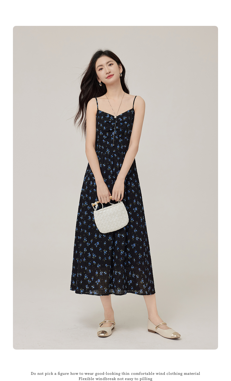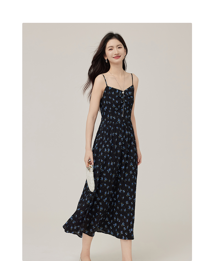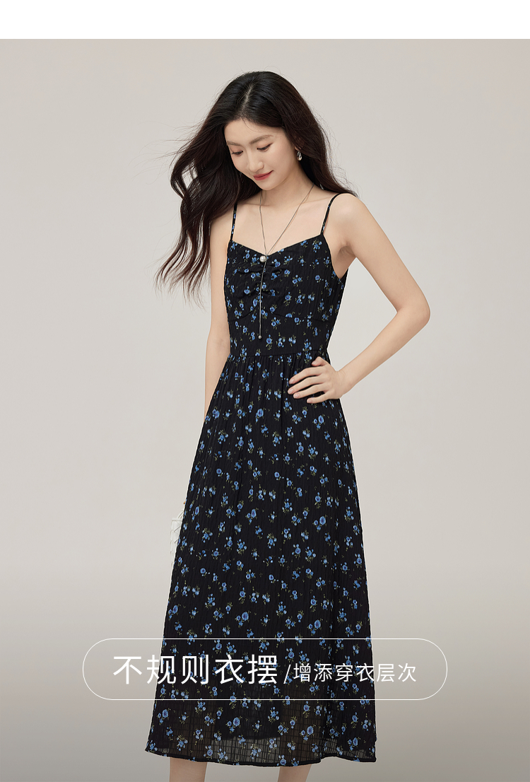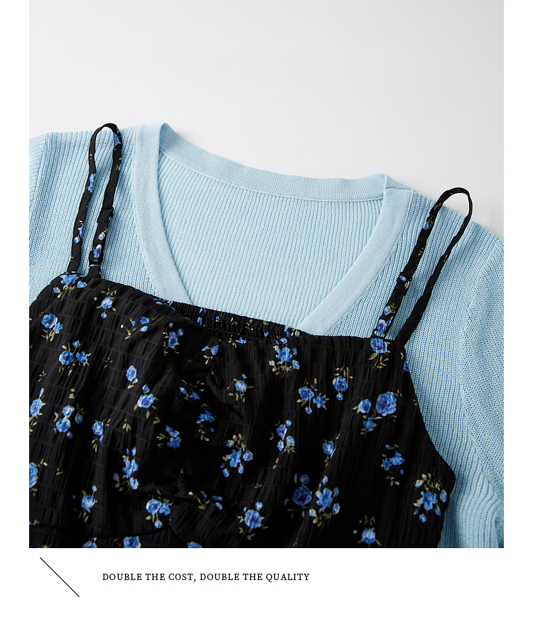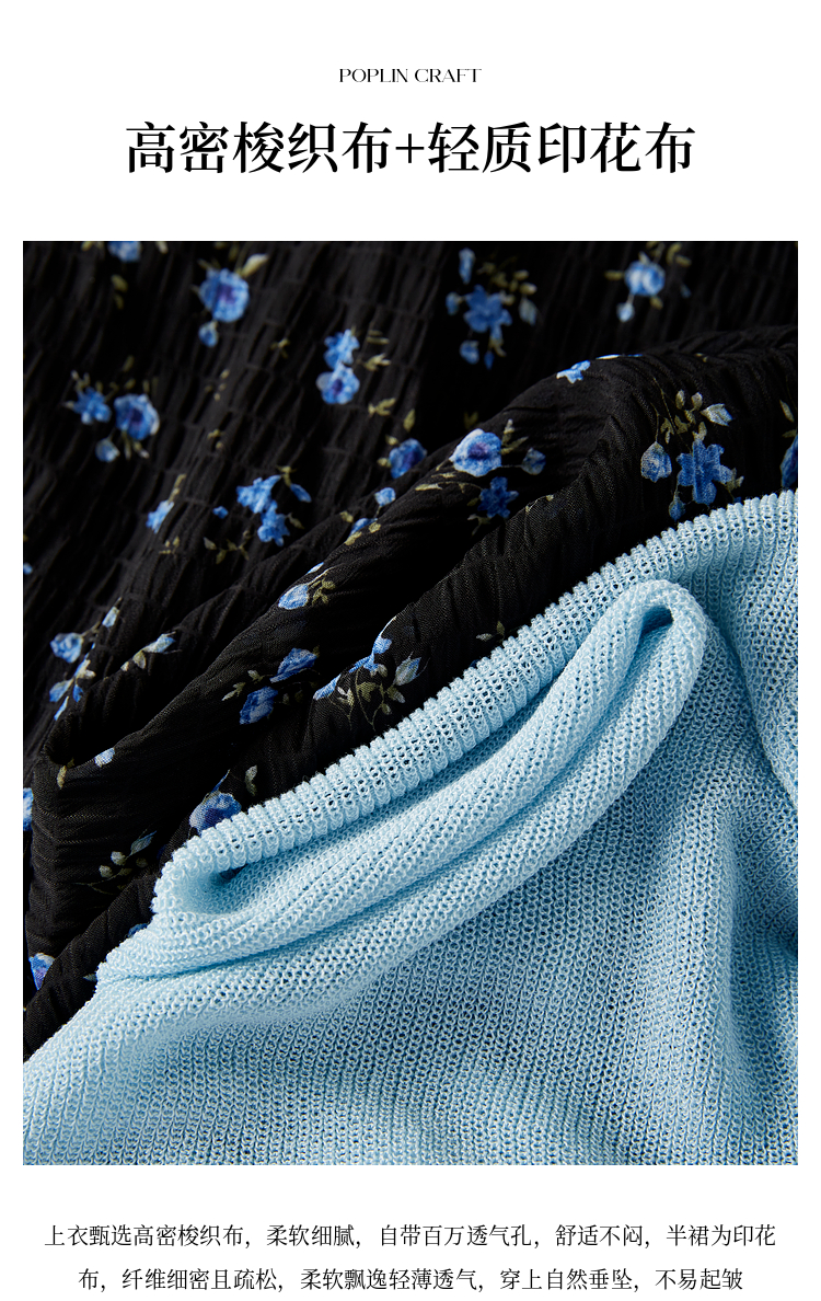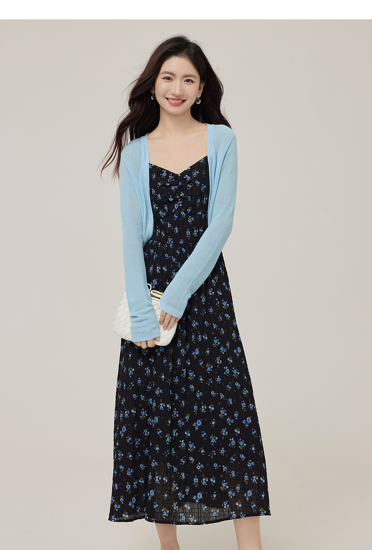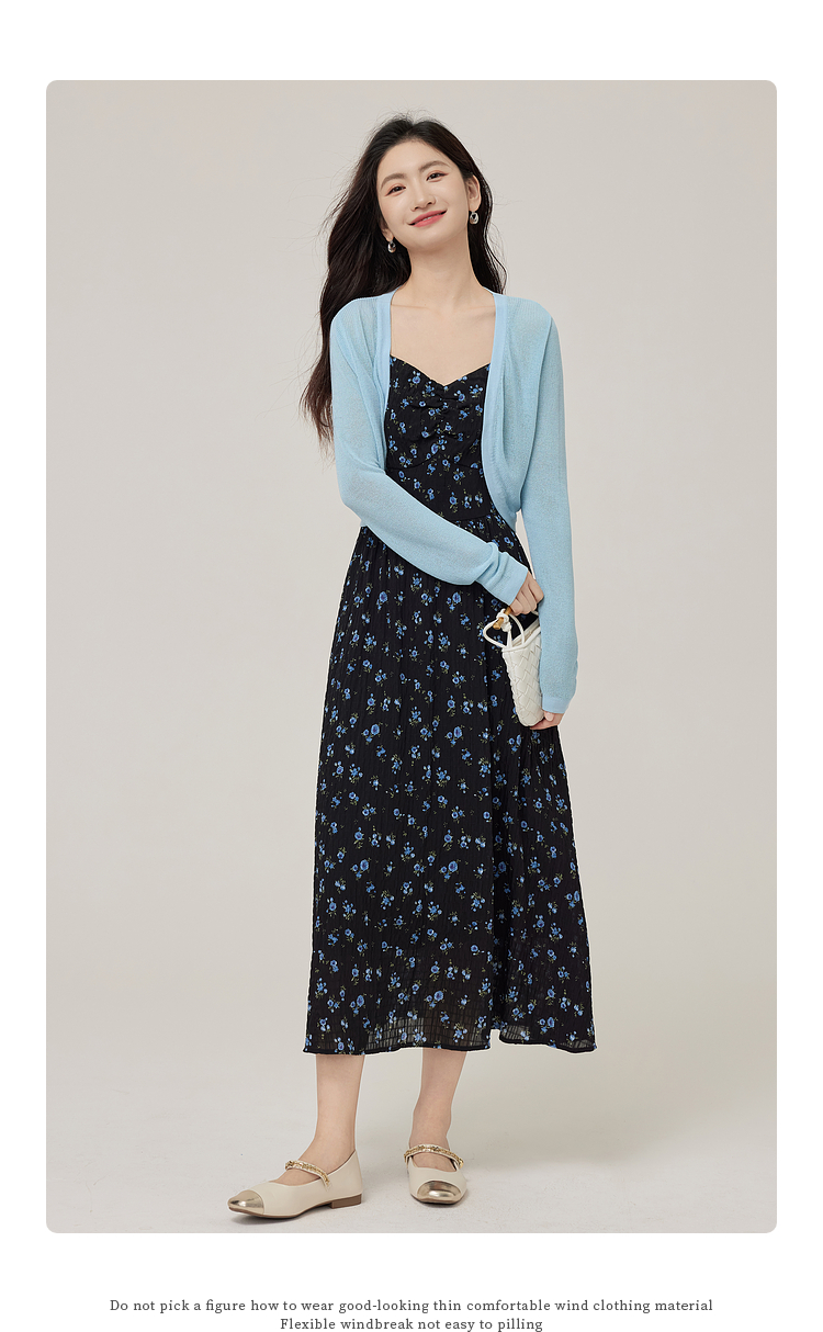 【08/12新品】熙世界法式气质针织开衫搭复古碎花吊带连衣裙套装女2025早秋新款