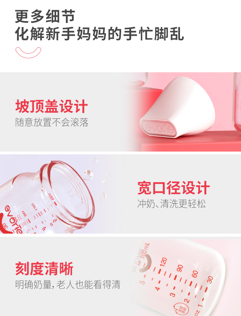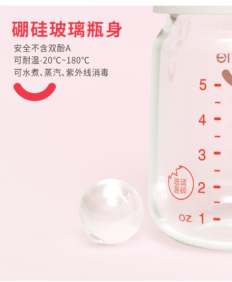 爱得利玻璃宽口径奶瓶160mL EA-301