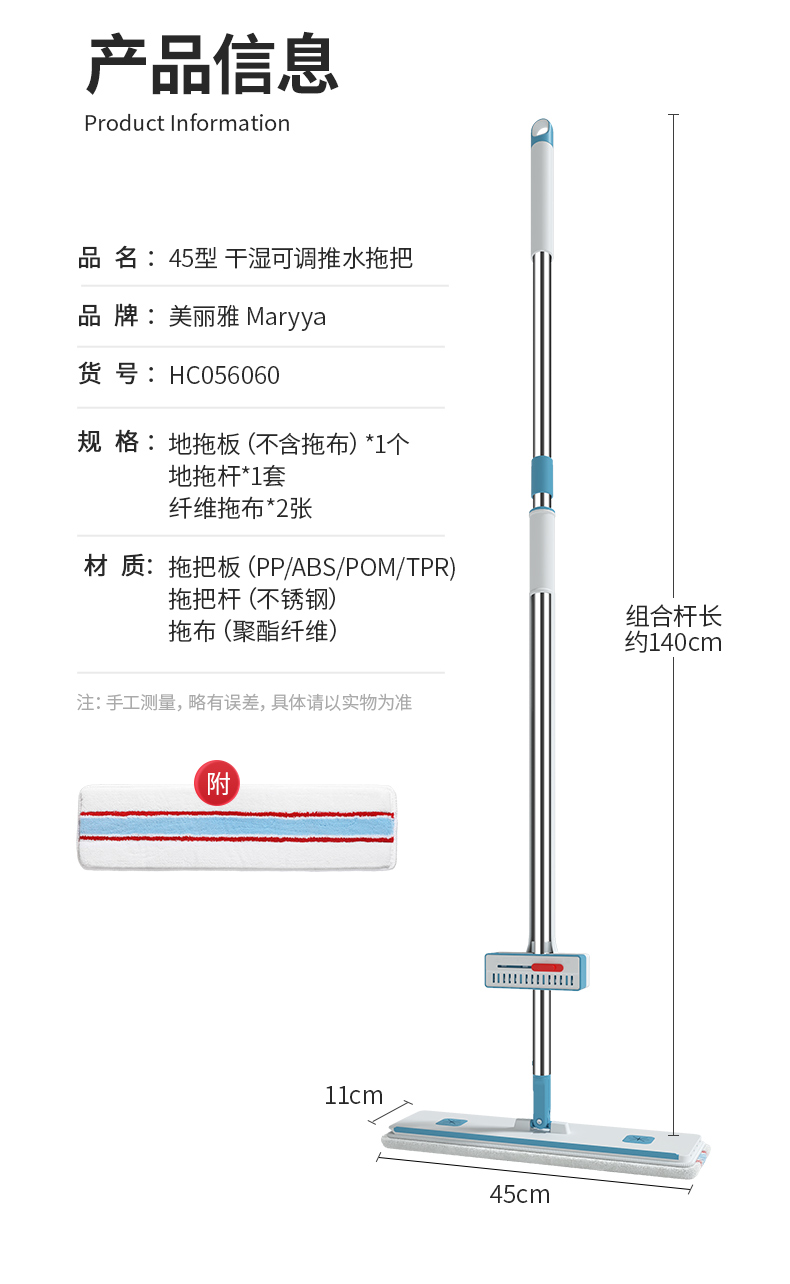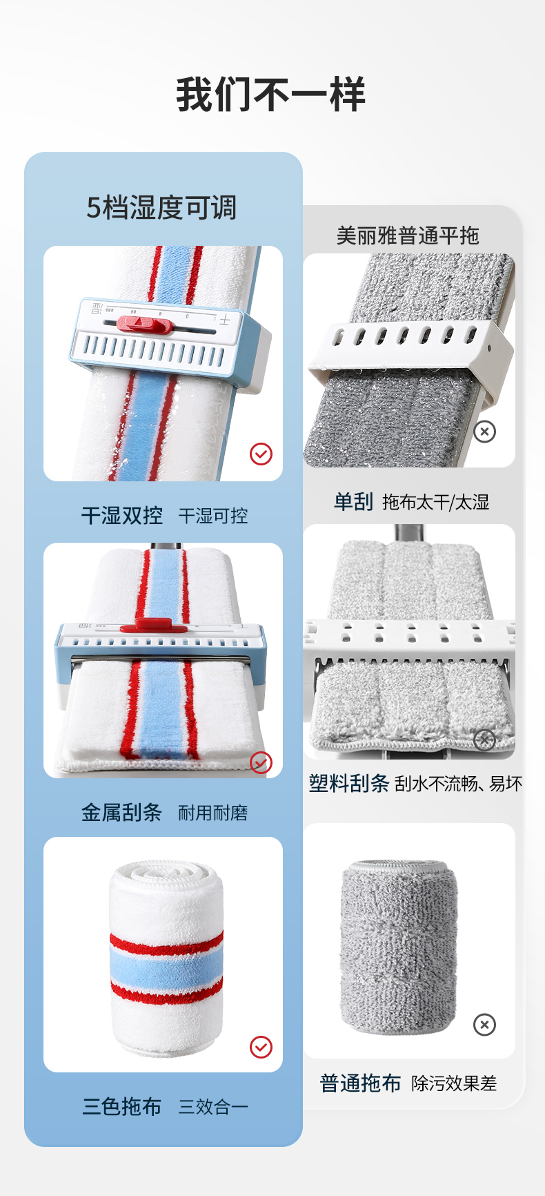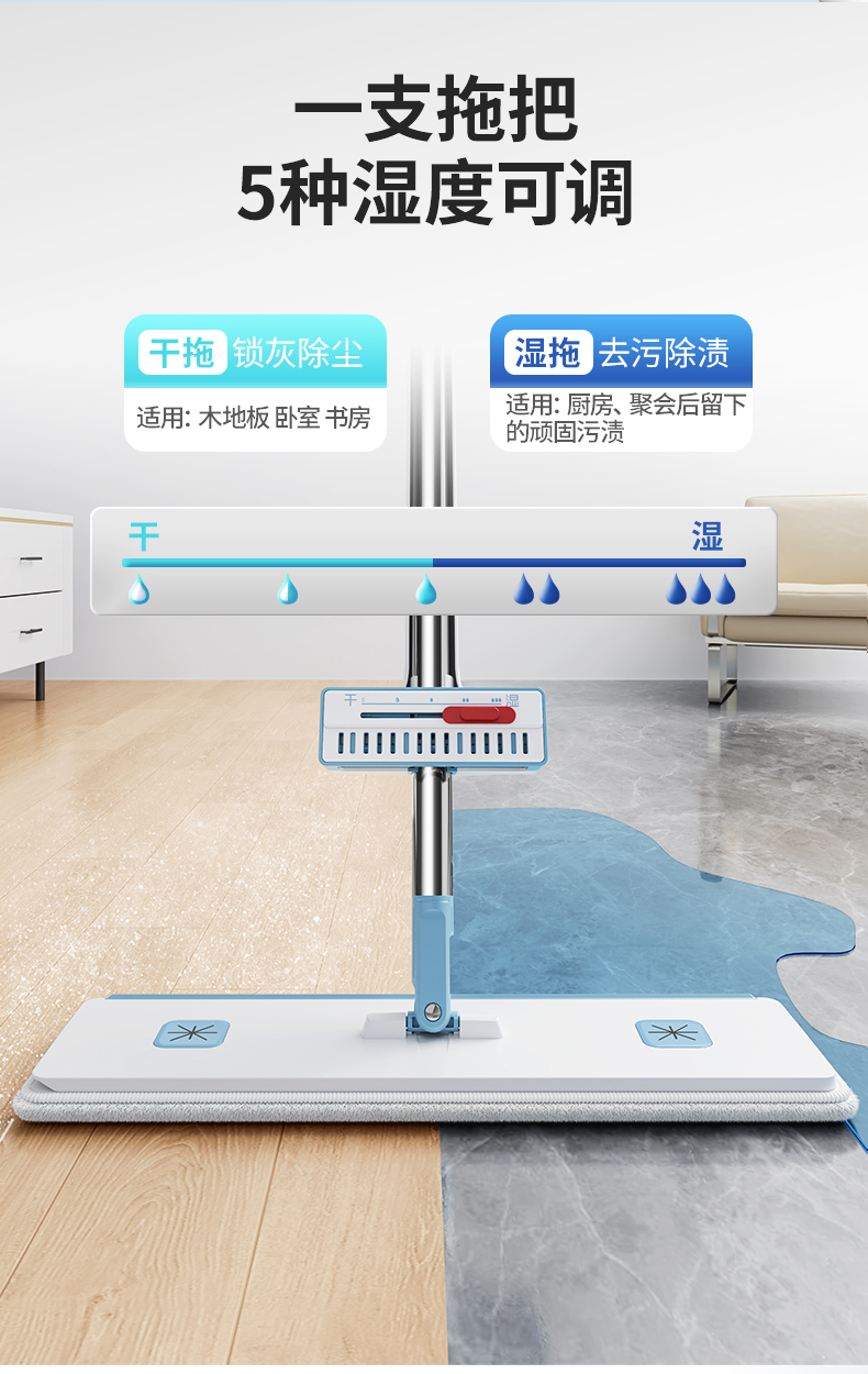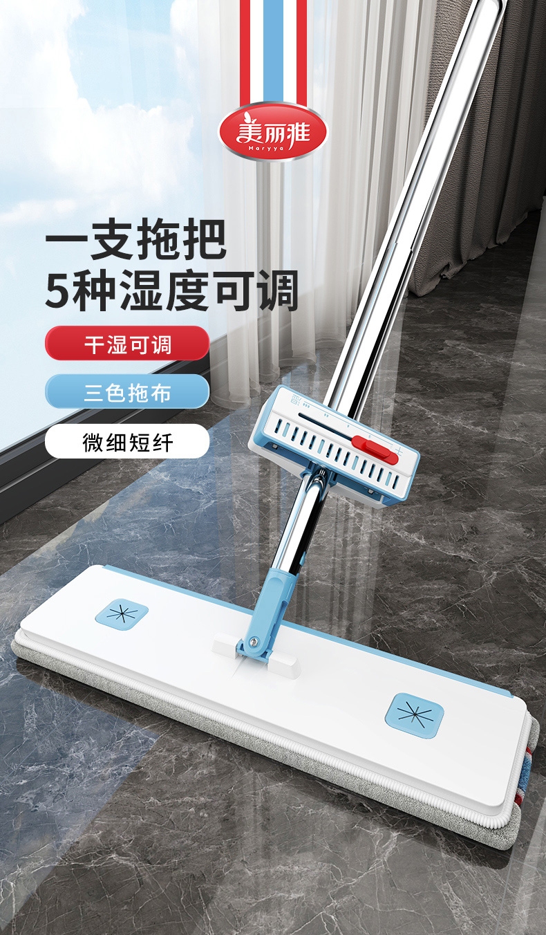 【25年升级款】美丽雅 干湿可调推水拖把懒人免手洗平板拖
