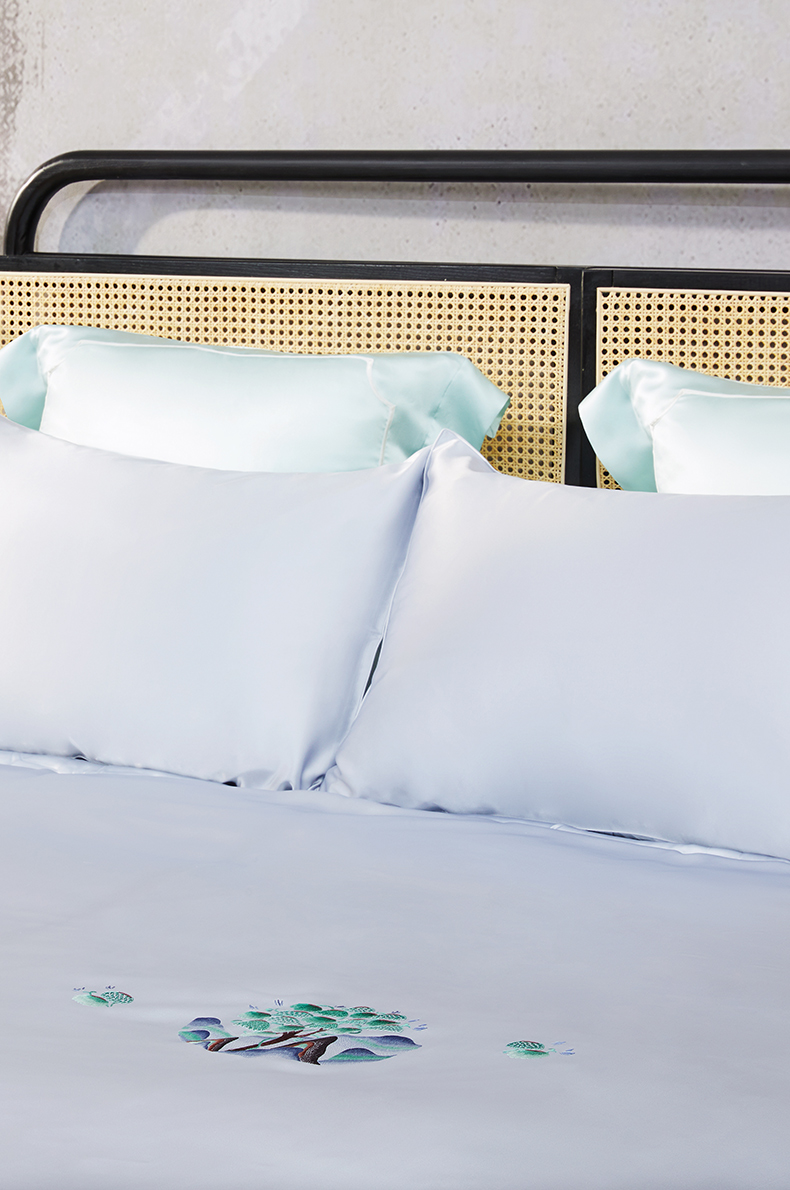 被子、枕头四周采用粗细不同的滚边工艺,既能增加细节美感,又能彰显产品的精良工艺。