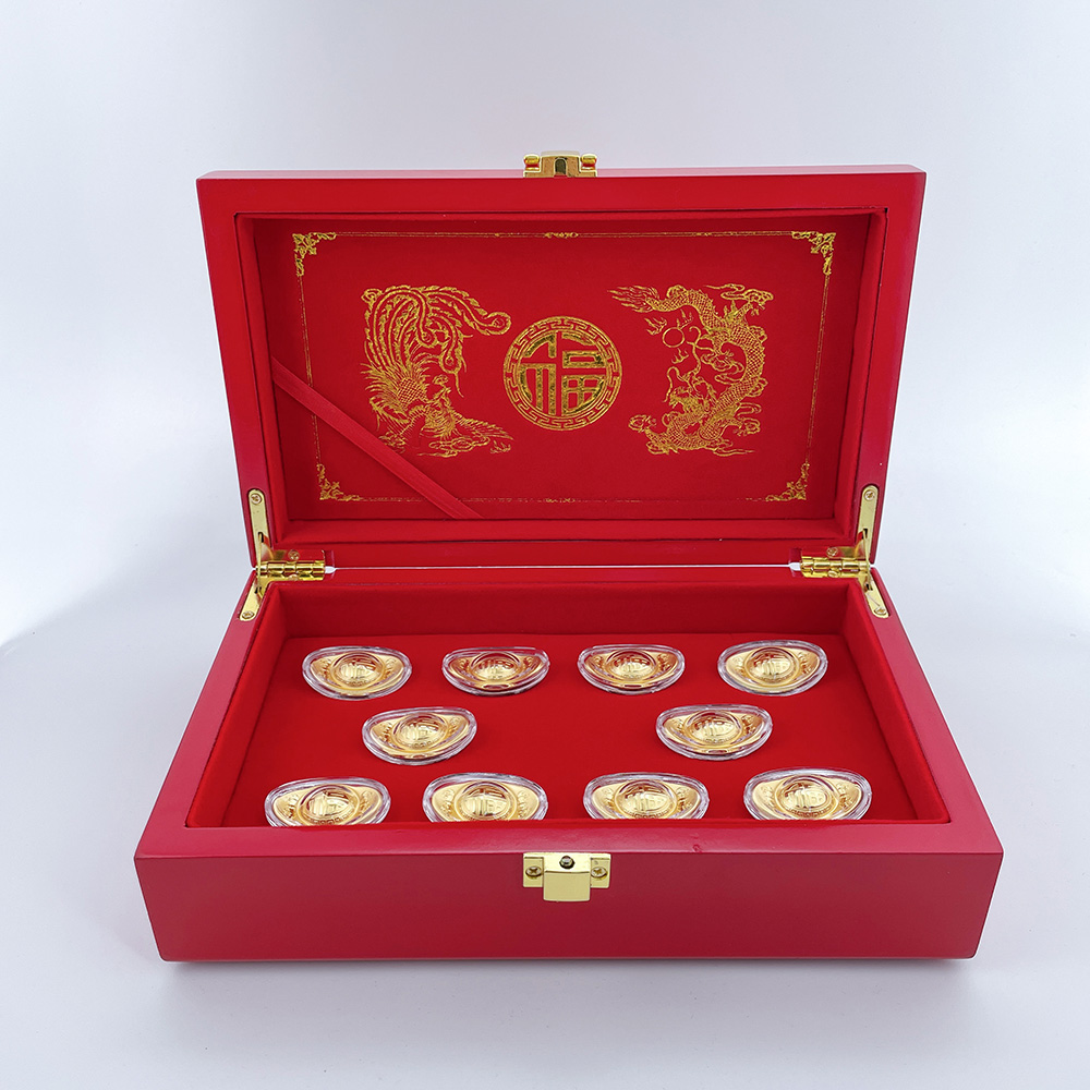 【限时克减150元】足金999 #婚庆 黄金万两金元宝十枚装摆件礼盒婚庆礼盒陪嫁嫁妆订婚聘礼摆件礼盒(ATBJ00029)(预售产品下单后不退款不退货不换货不补差价)