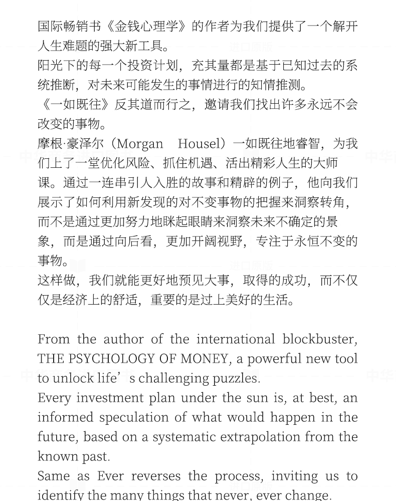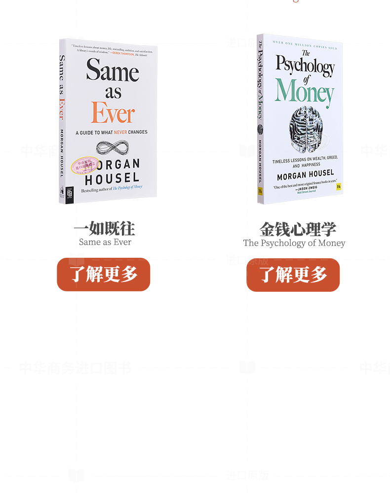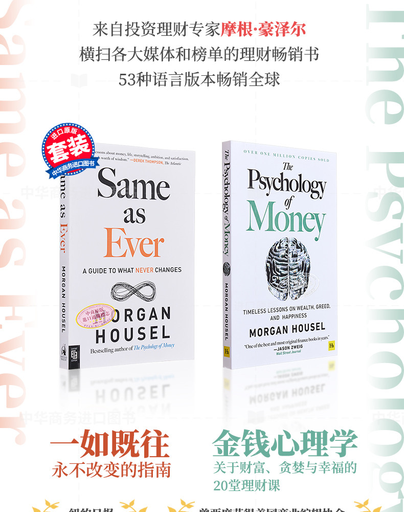 【中商原版】摩根 豪泽尔 致富心态 + 一如既往 英文原版 知名投资理财专家 Morgan Housel 自我提升 经管励志
