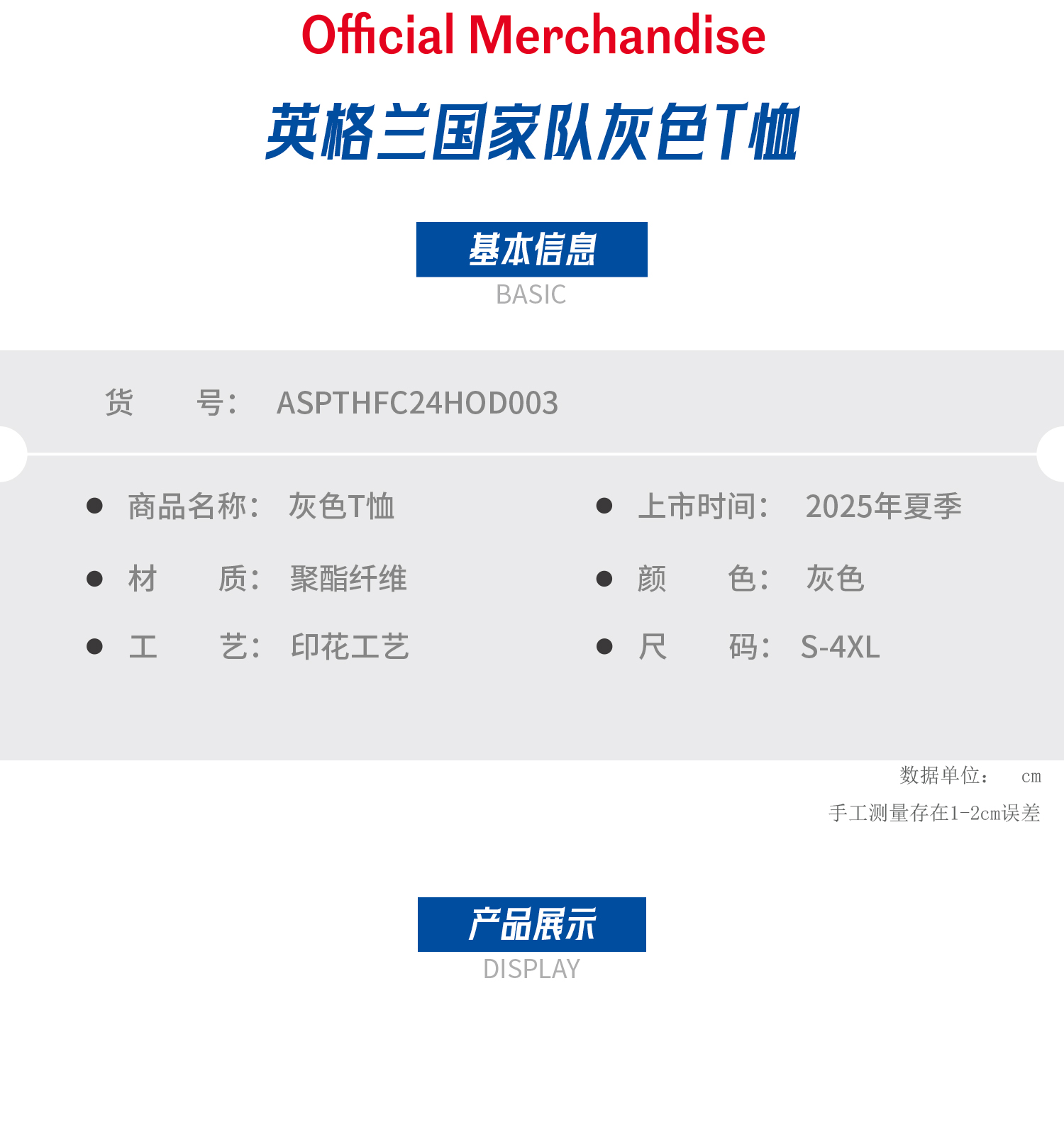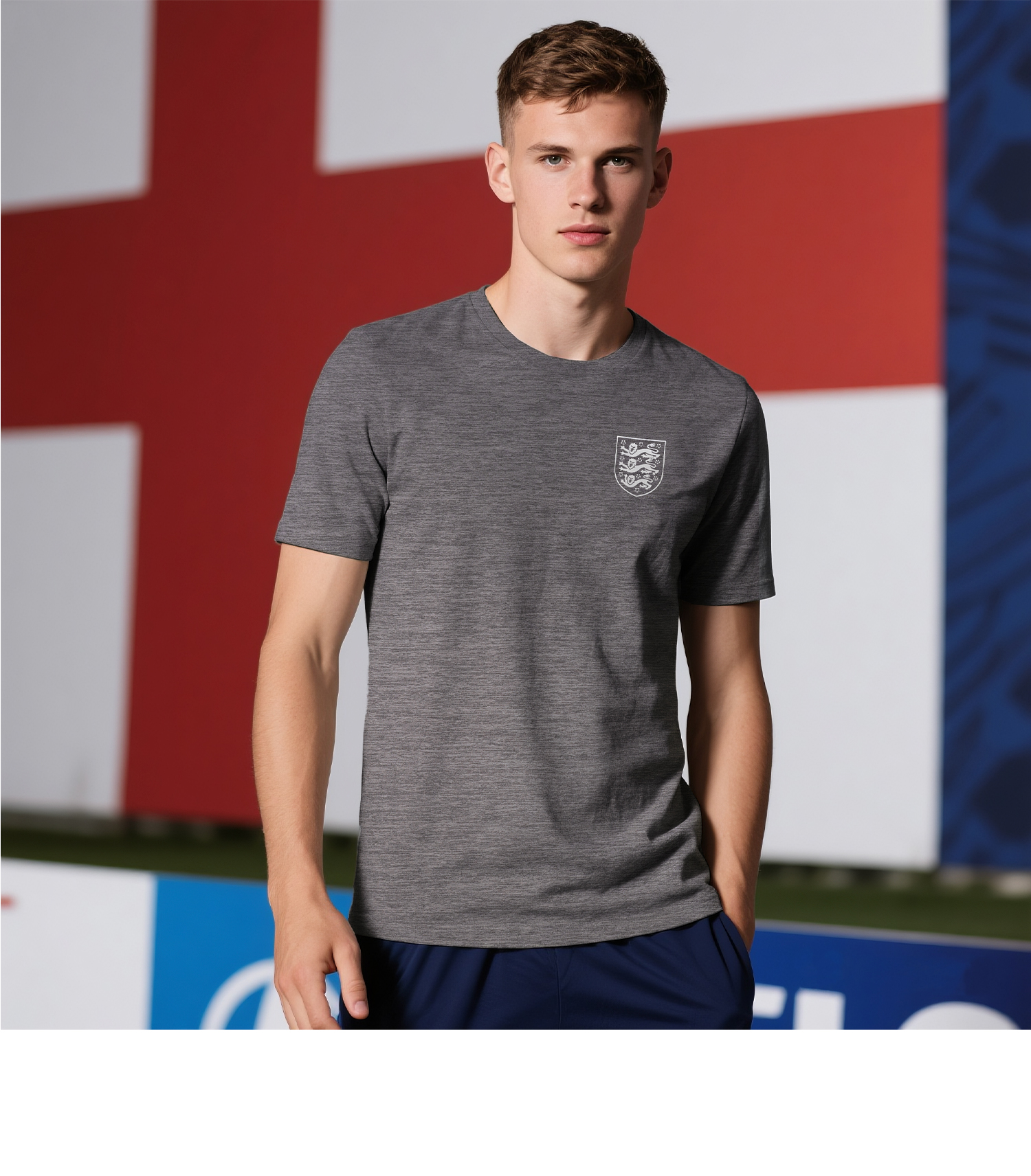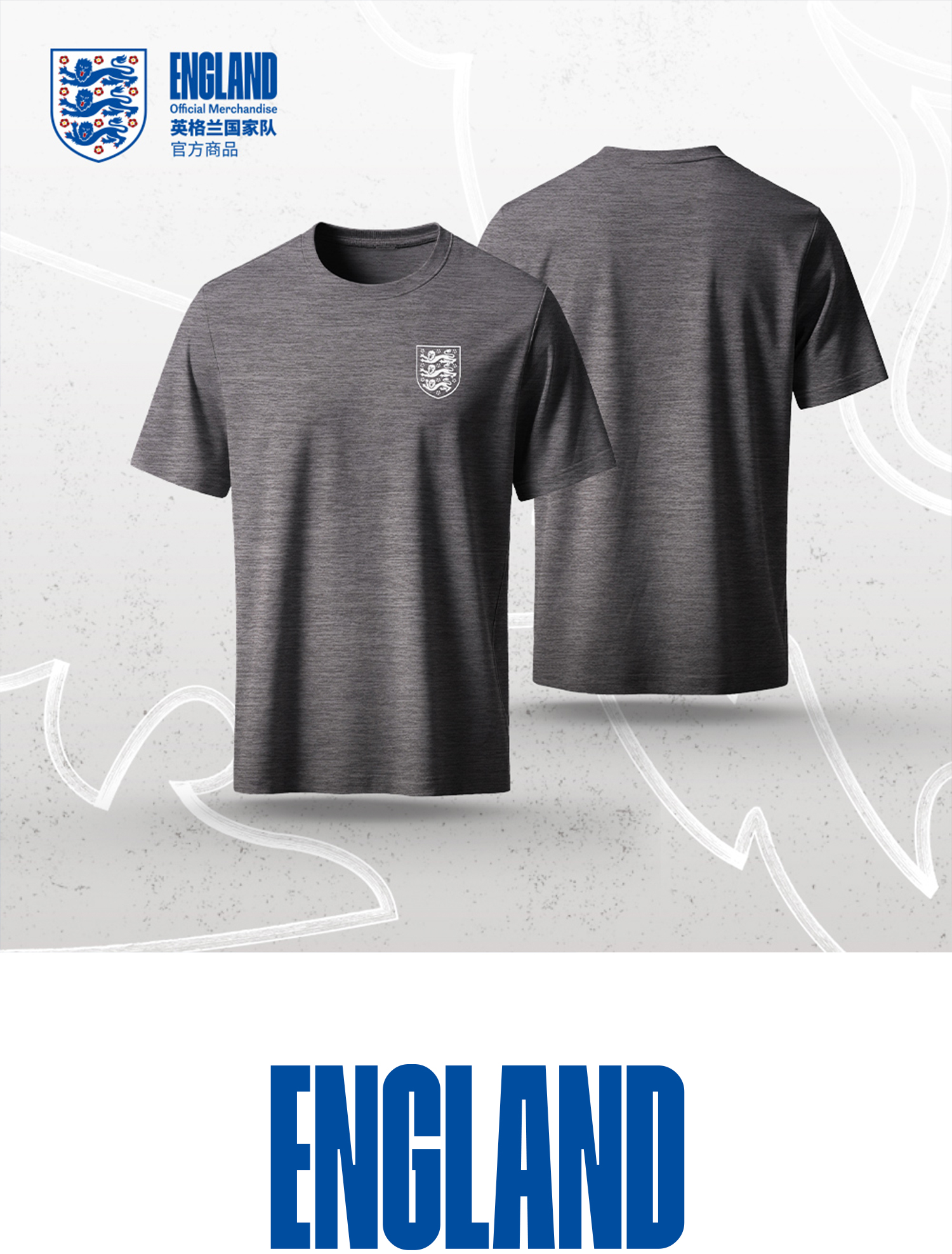 【官方正版】英格兰国家队 | 夏季灰色运动T恤透气舒适基础版短袖