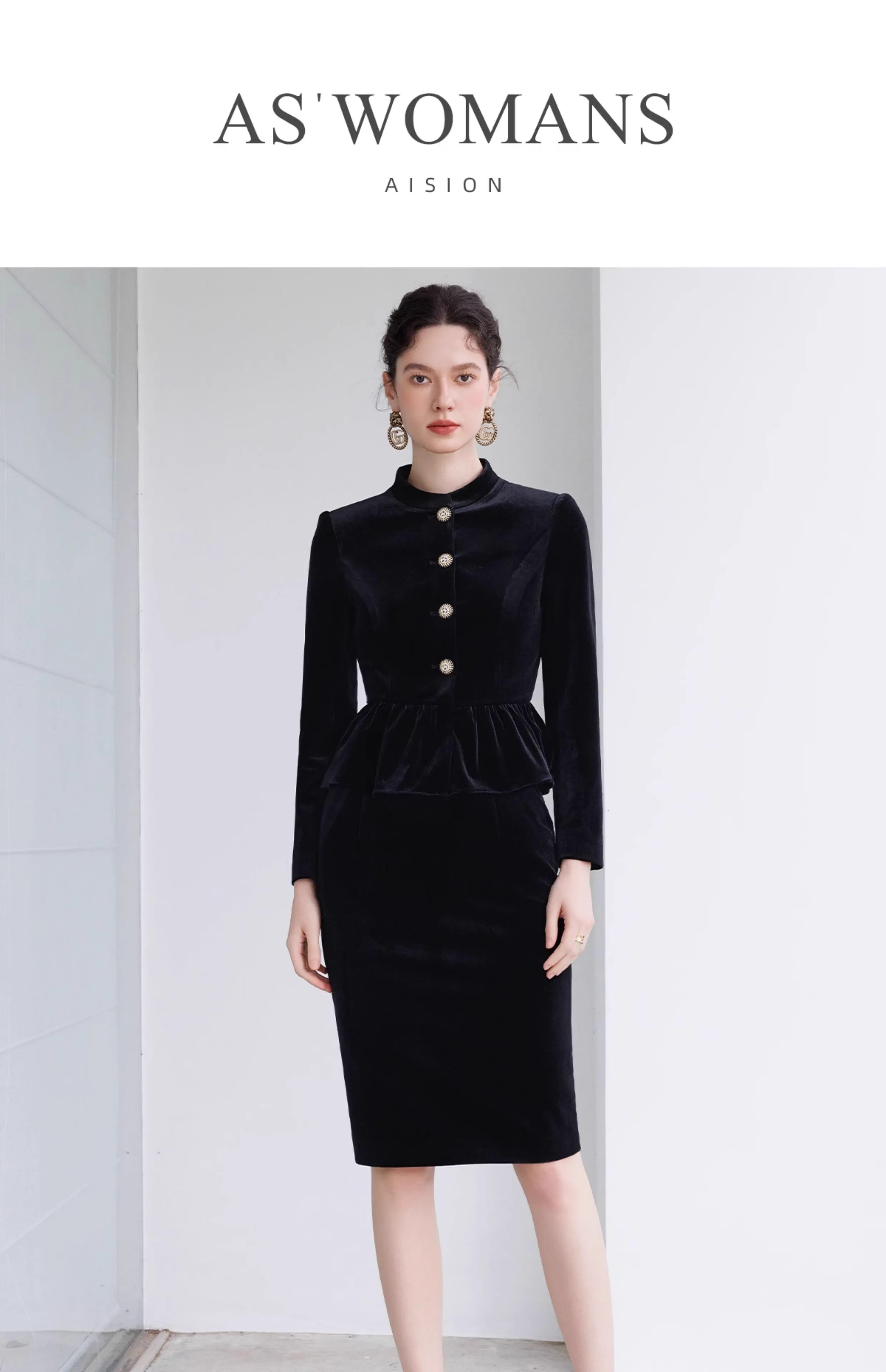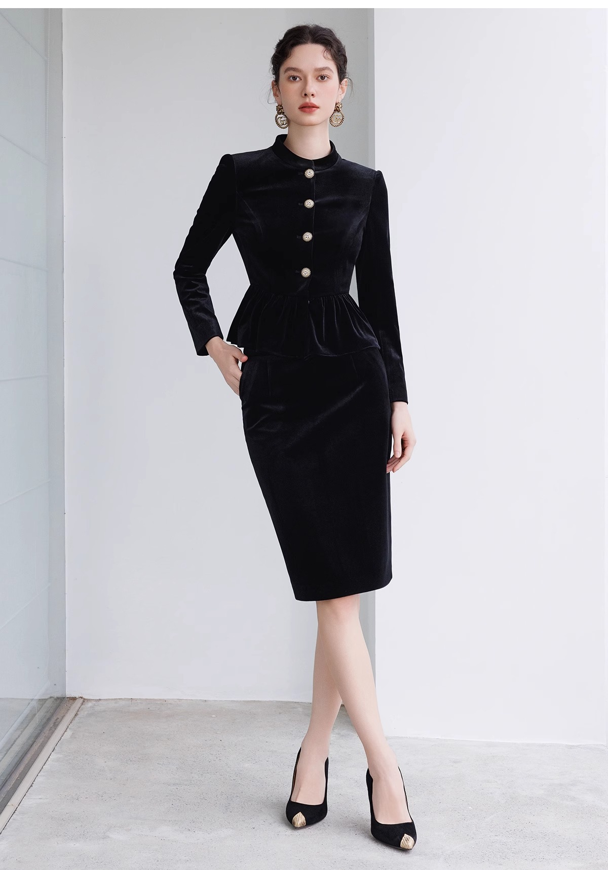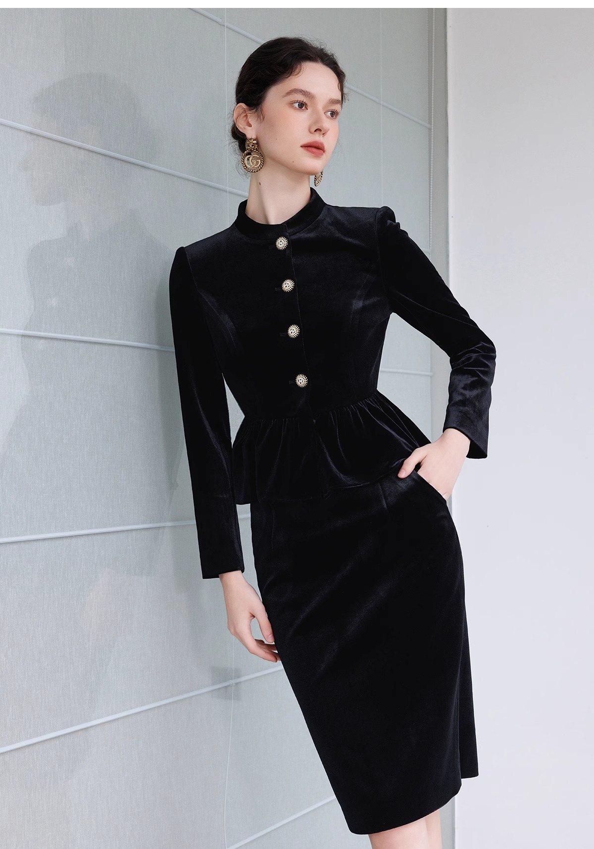 IWY/职场通勤黑色半裙职业套装春季高端时尚轻奢优雅两件套 24CS675