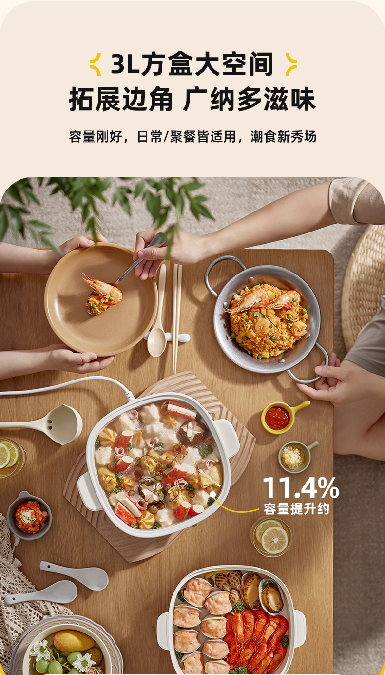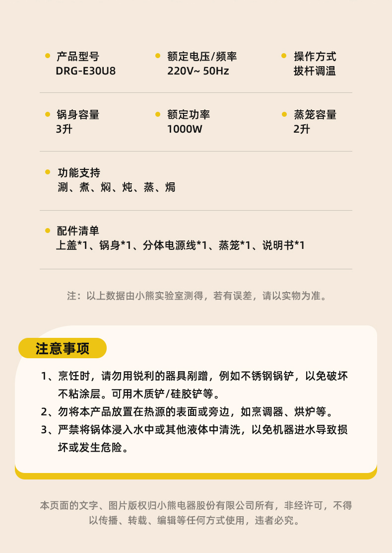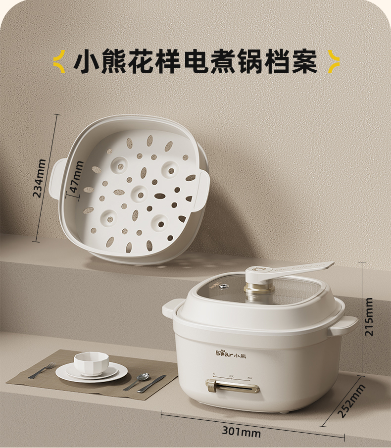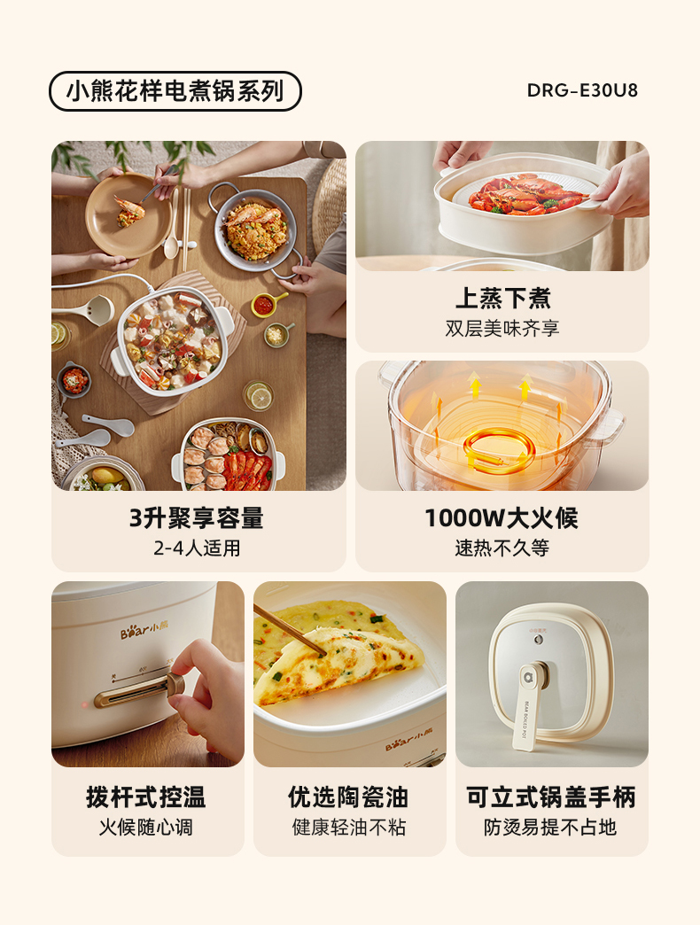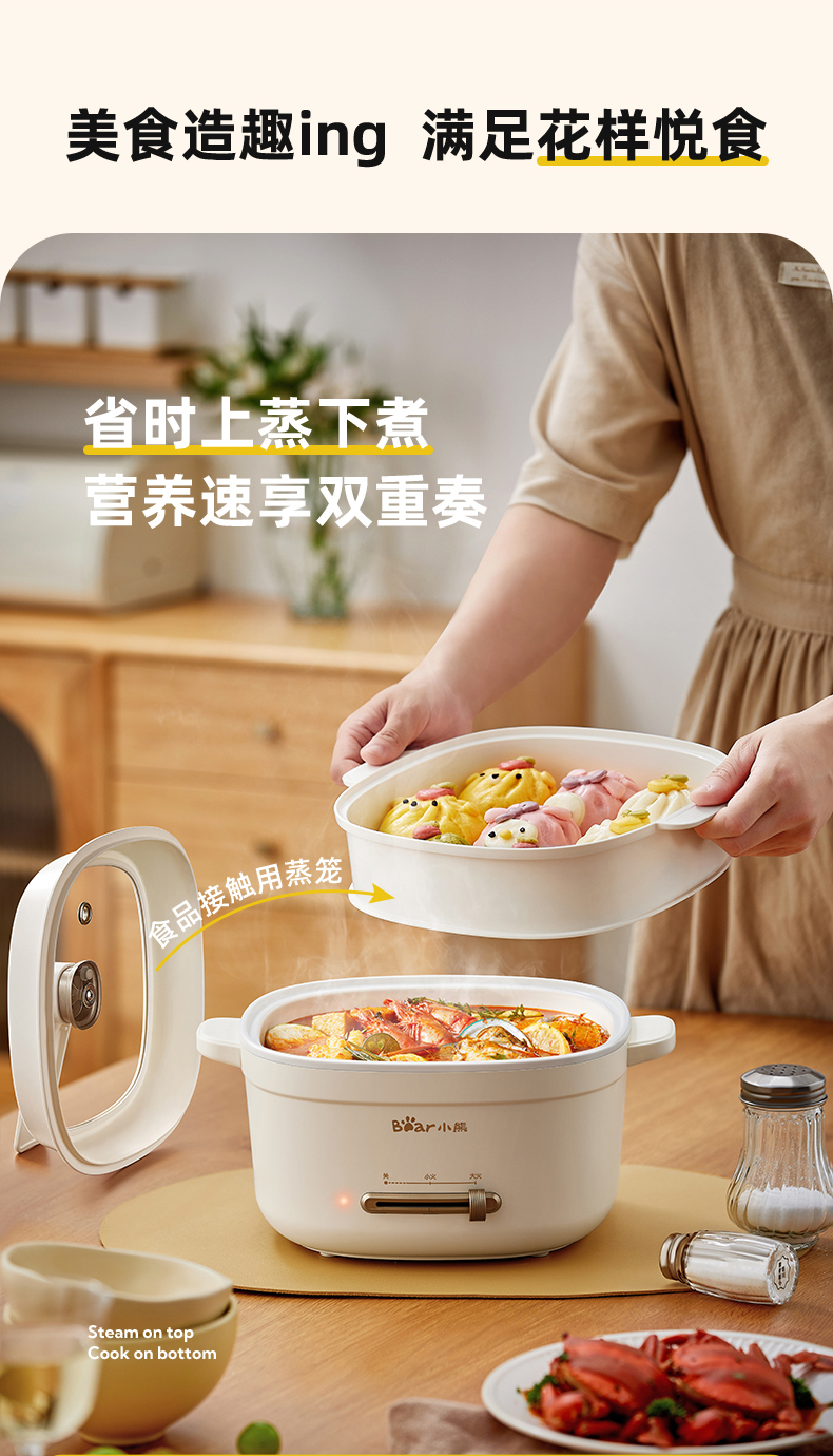 【小程序】小熊(Bear)电煮锅 泡面火锅宿舍小电锅 多功能多用途电热锅 3L蒸煮一体蒸屉蒸笼电蒸锅 DRG-E30U8