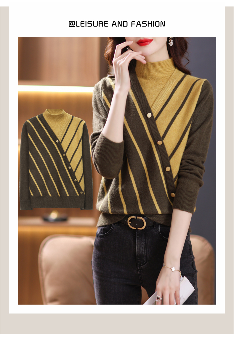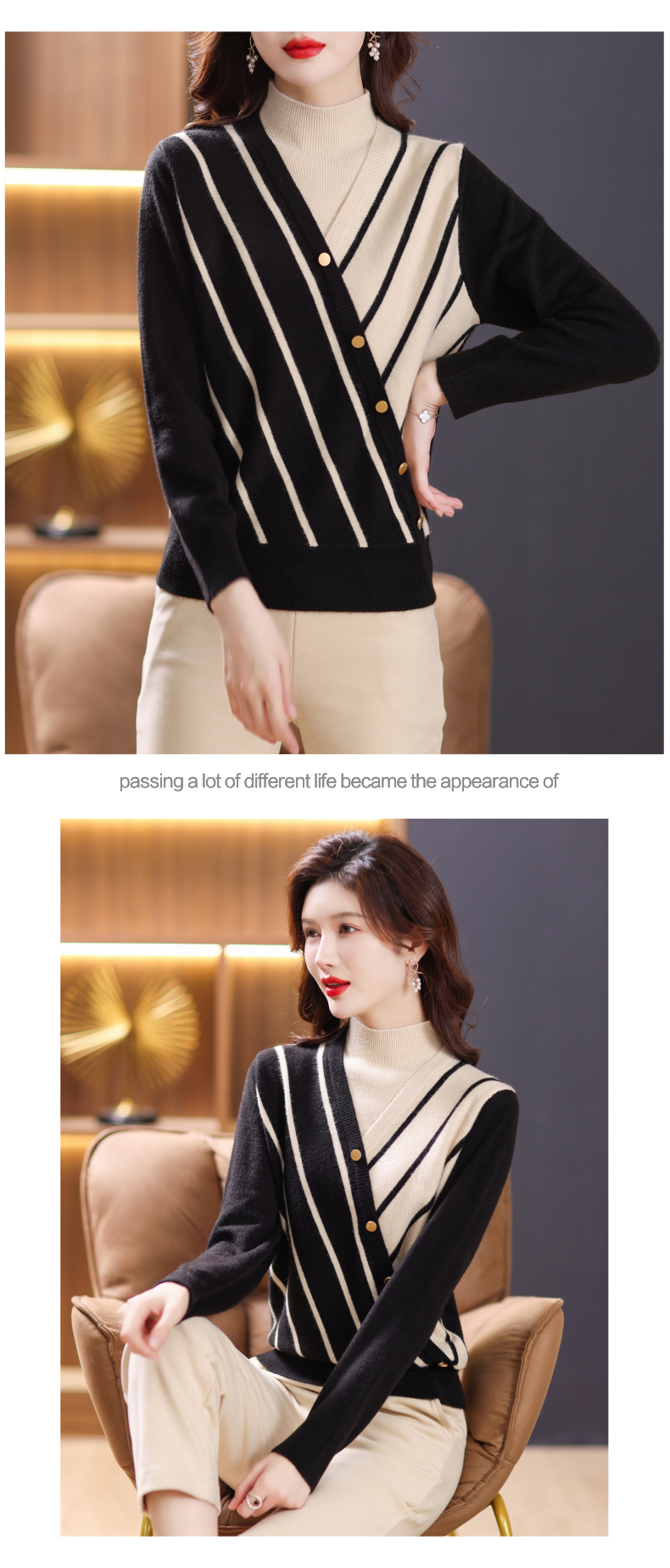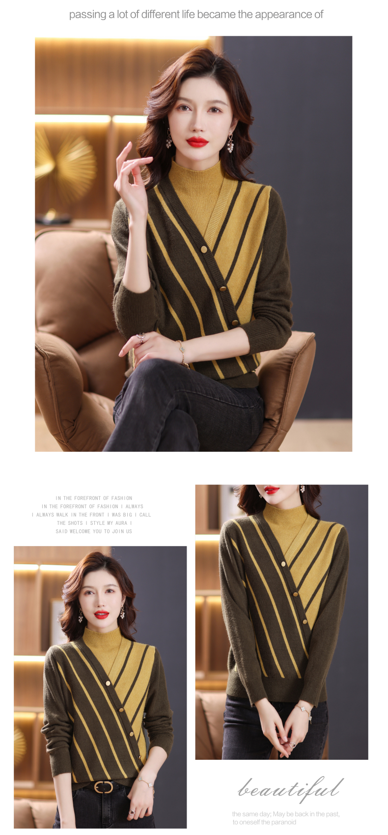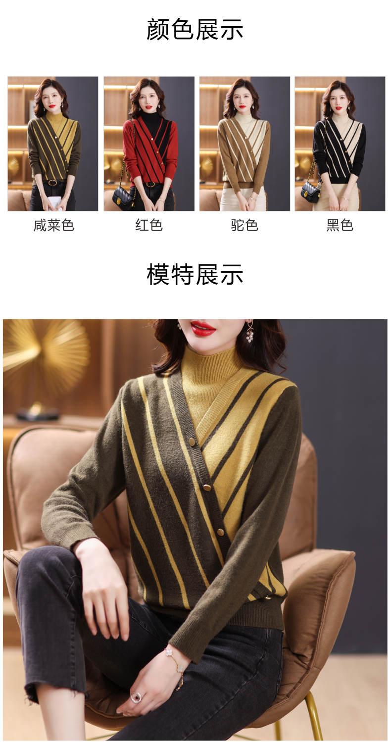 条纹假两件加绒加厚毛衣一体绒半高领洋气内搭CC-80-2820