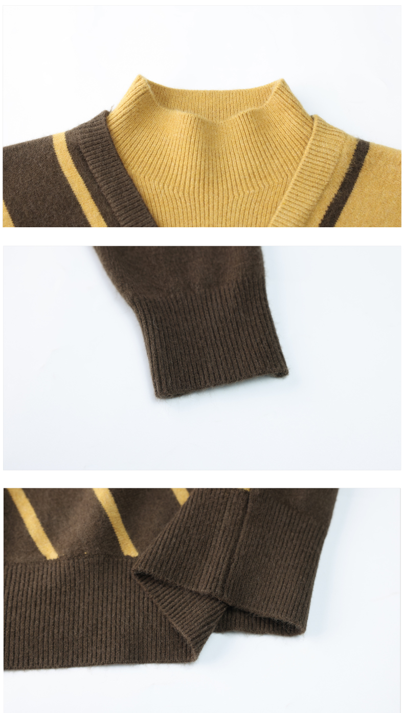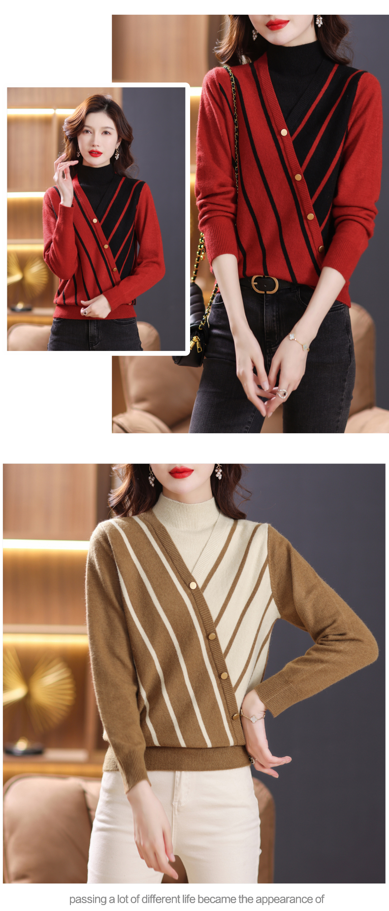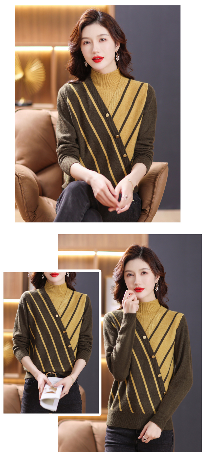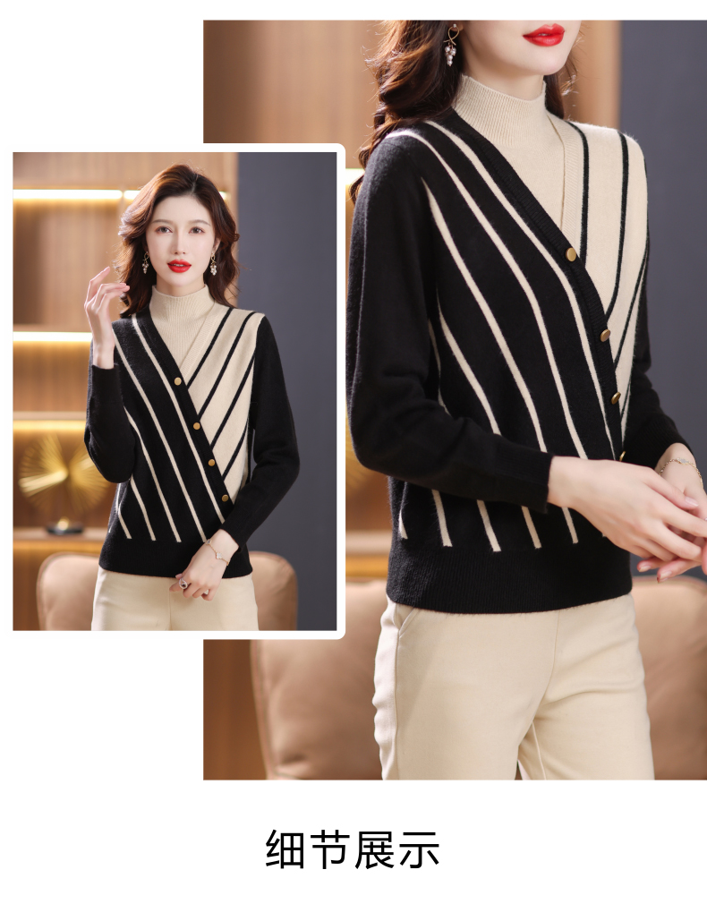 条纹假两件加绒加厚毛衣一体绒半高领洋气内搭CC-80-2820