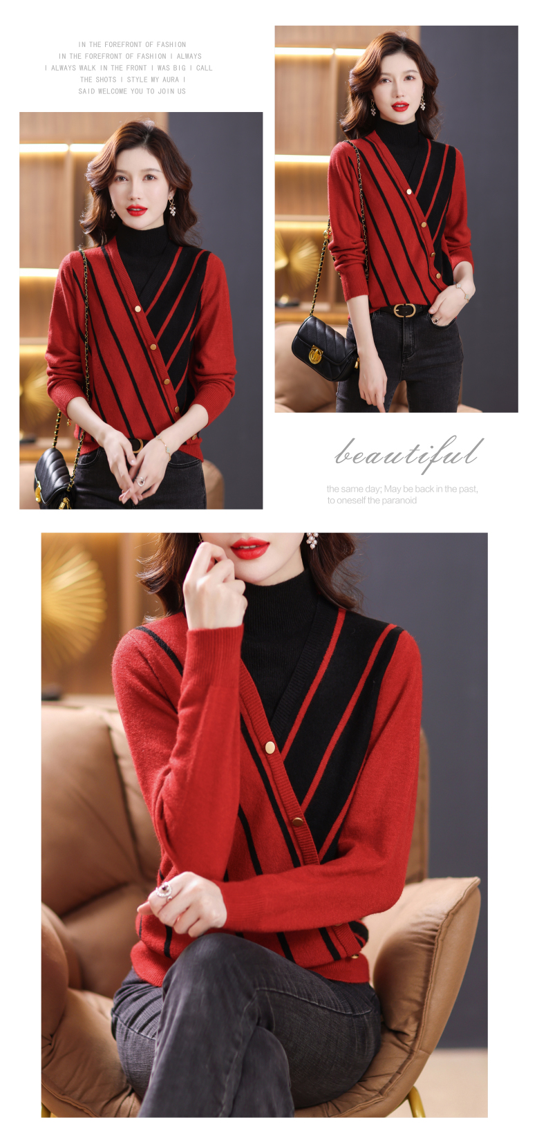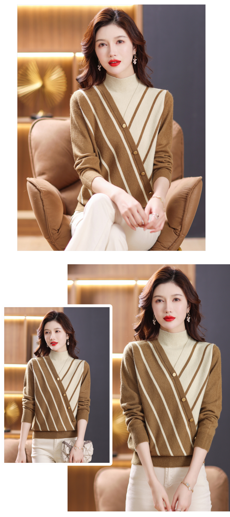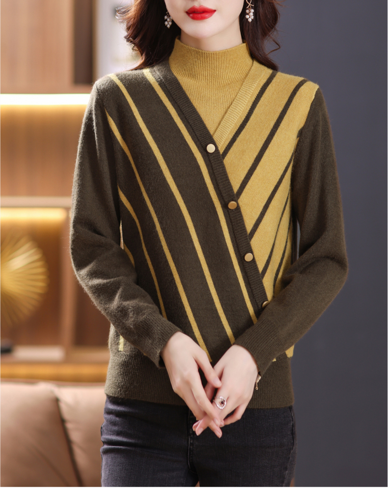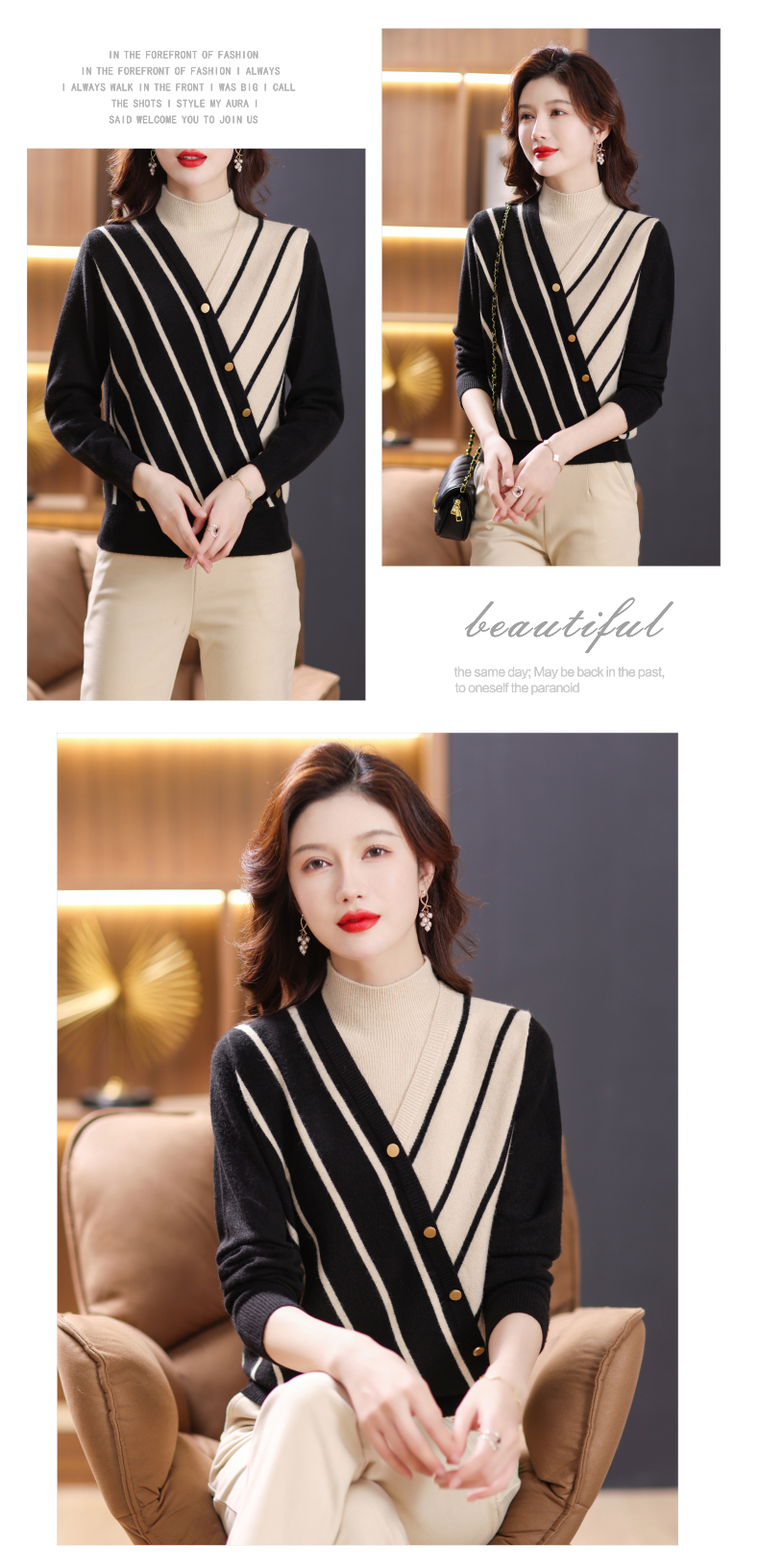 条纹假两件加绒加厚毛衣一体绒半高领洋气内搭CC-80-2820