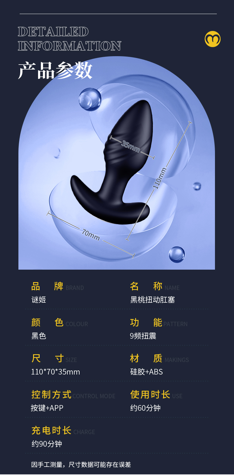 谜姬 炫彩扭动SM肛塞App控制女用后庭调情 无线遥控款sm另类玩具 高潮十频震动按摩男女用后庭自慰器 外出佩戴调教成人情趣性用品